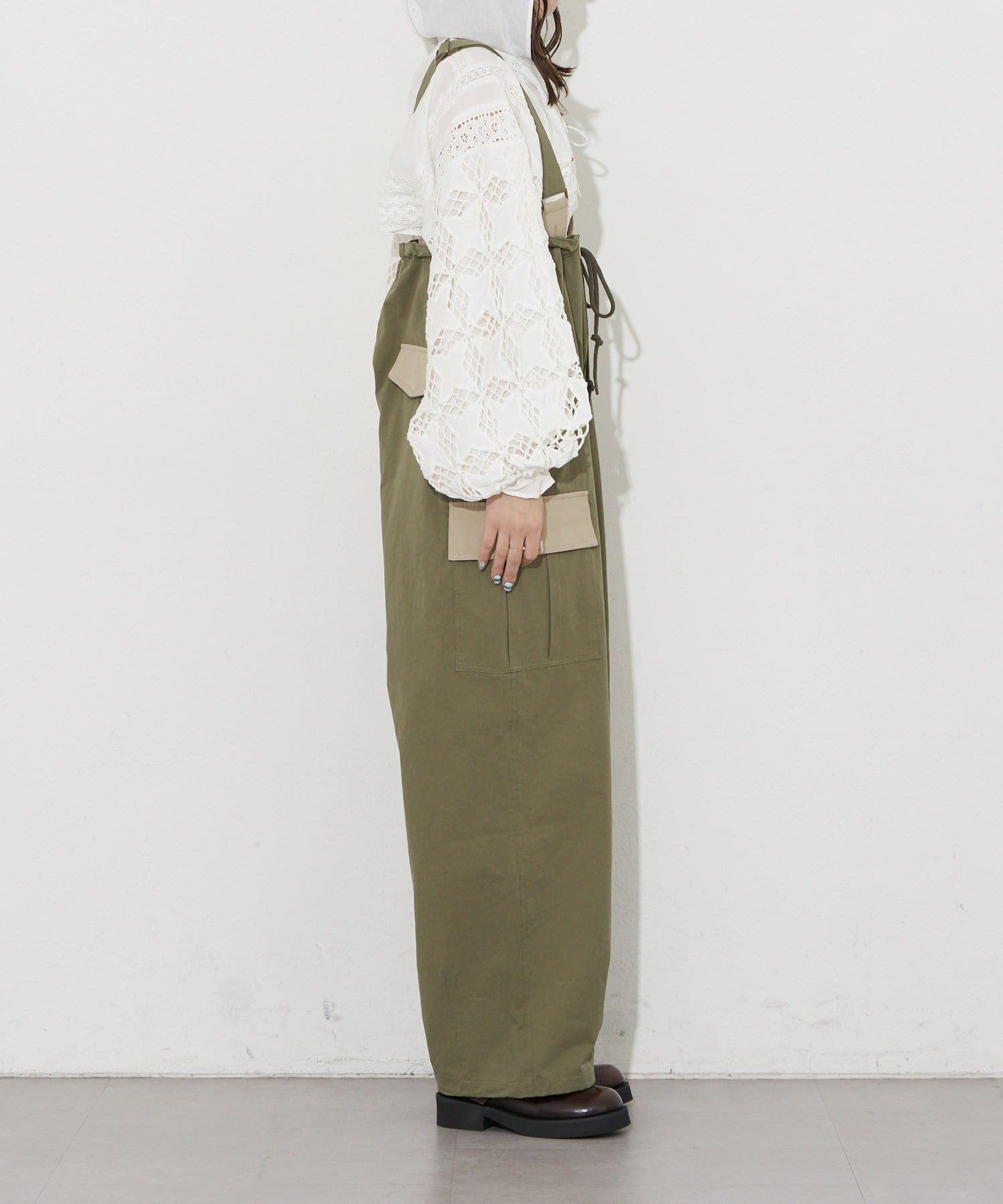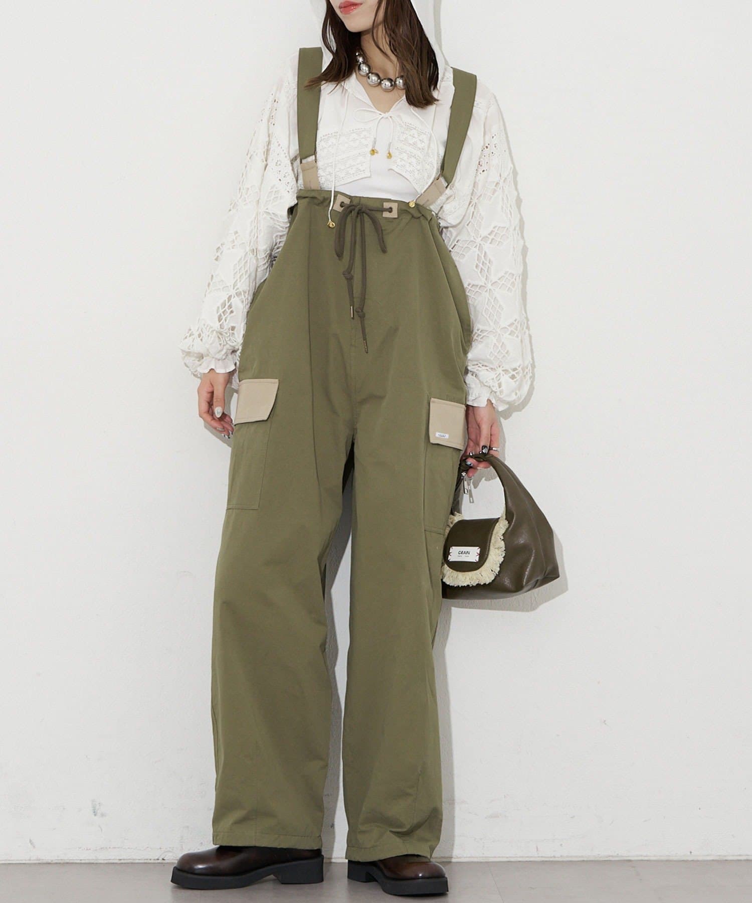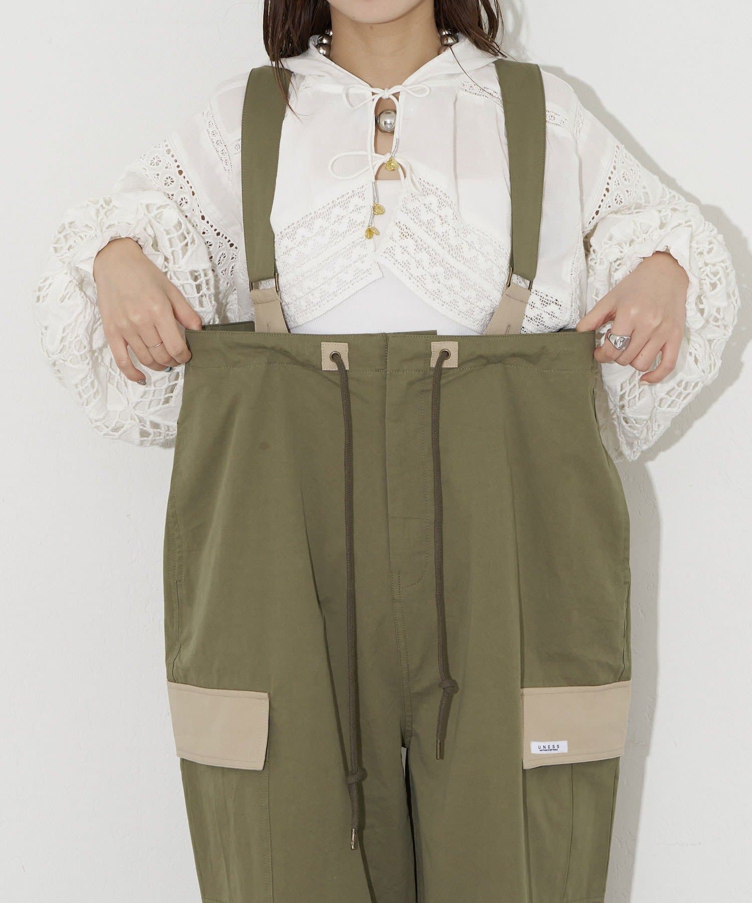 【UNESS/ユーネス】サスペンダー付ワイドカーゴパンツ/サロペット