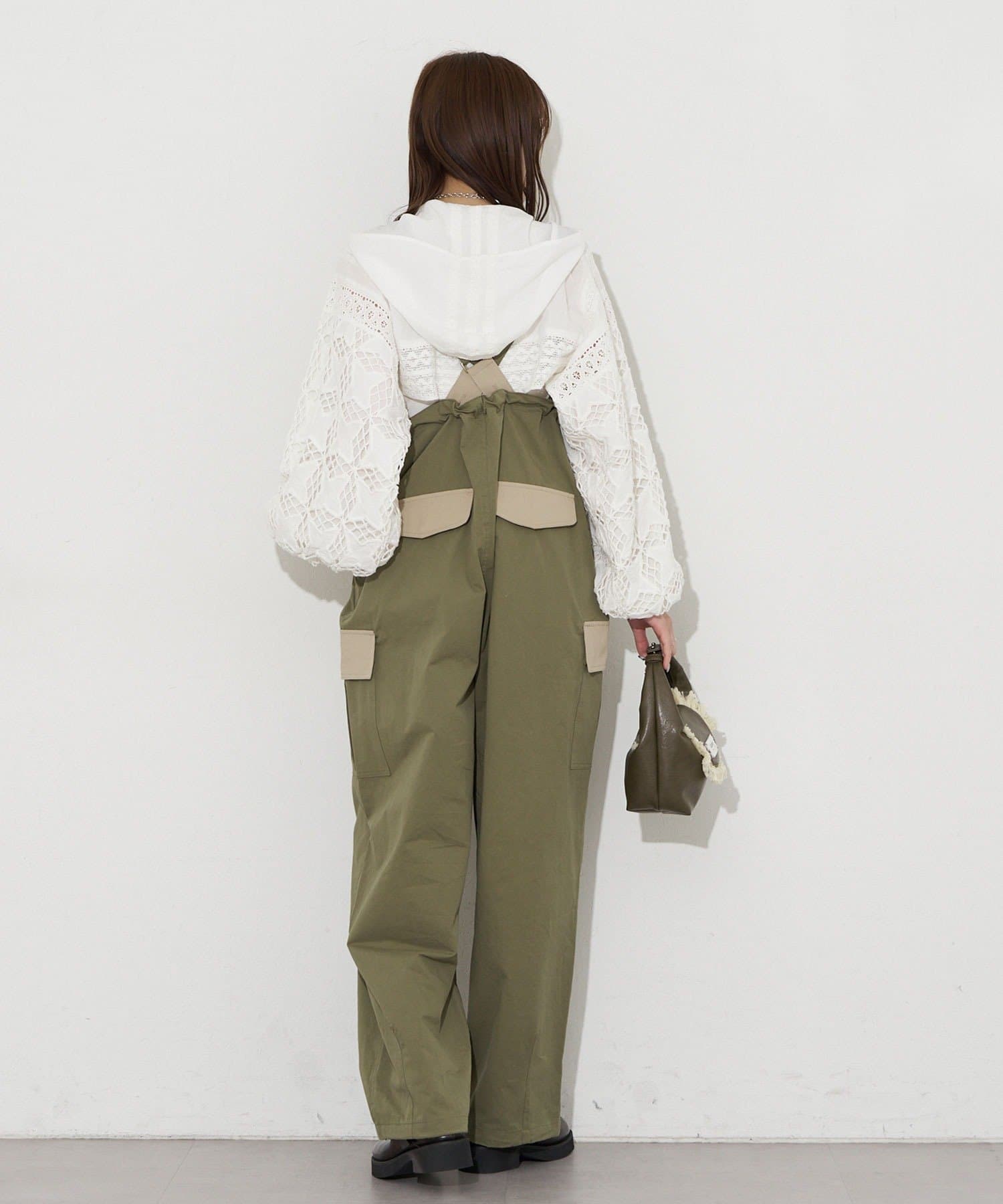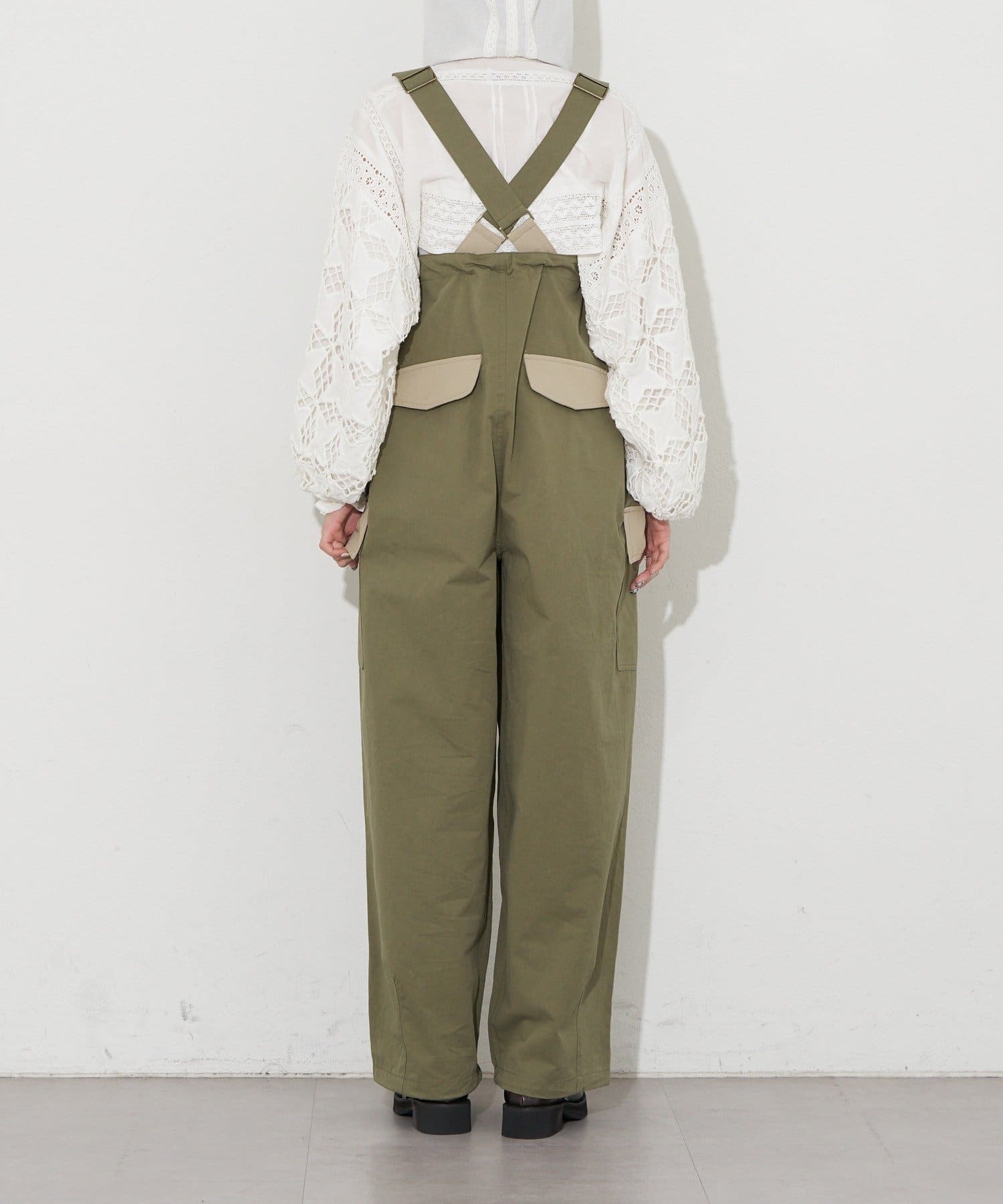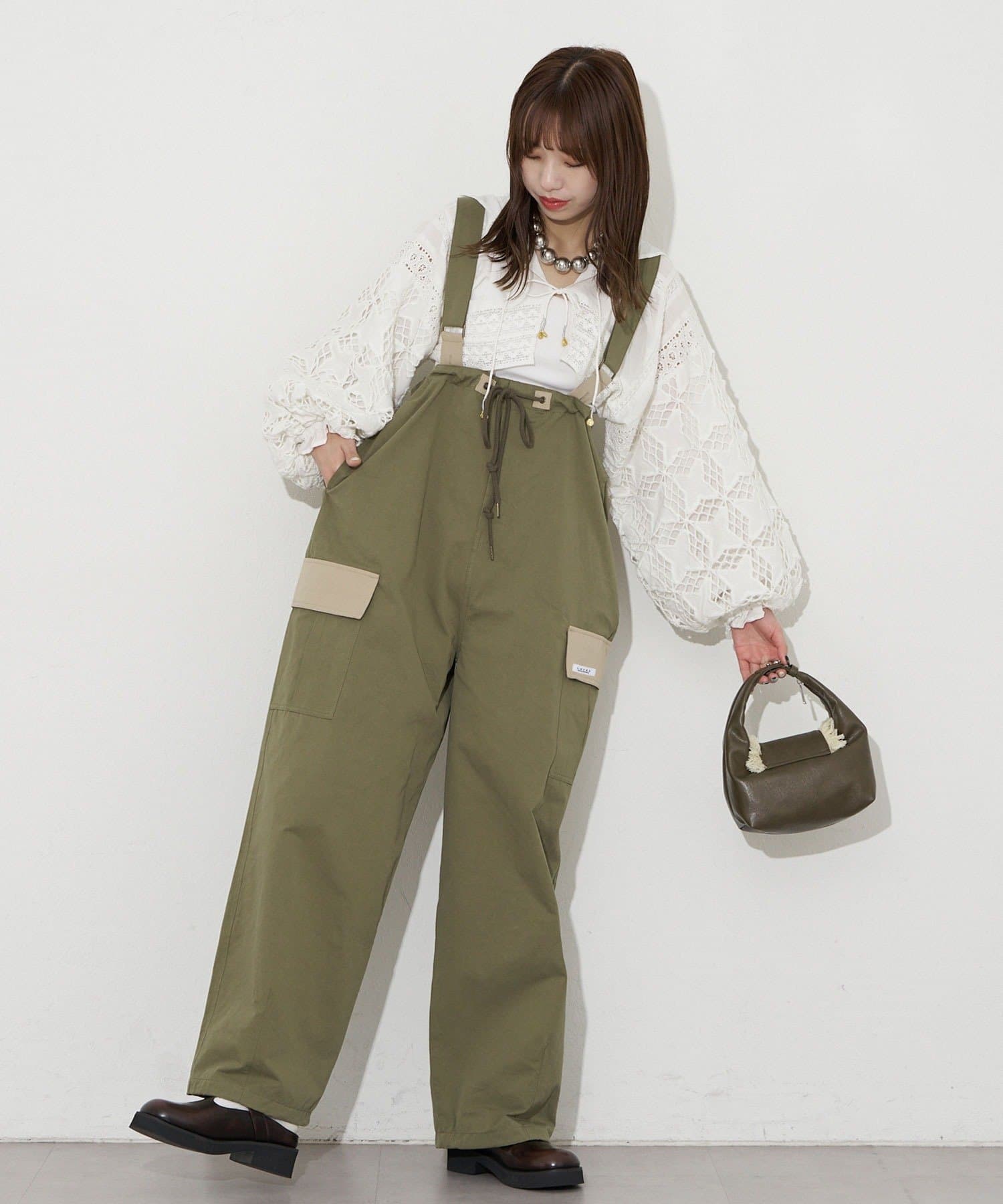 【UNESS/ユーネス】サスペンダー付ワイドカーゴパンツ/サロペット