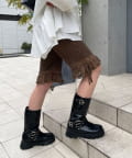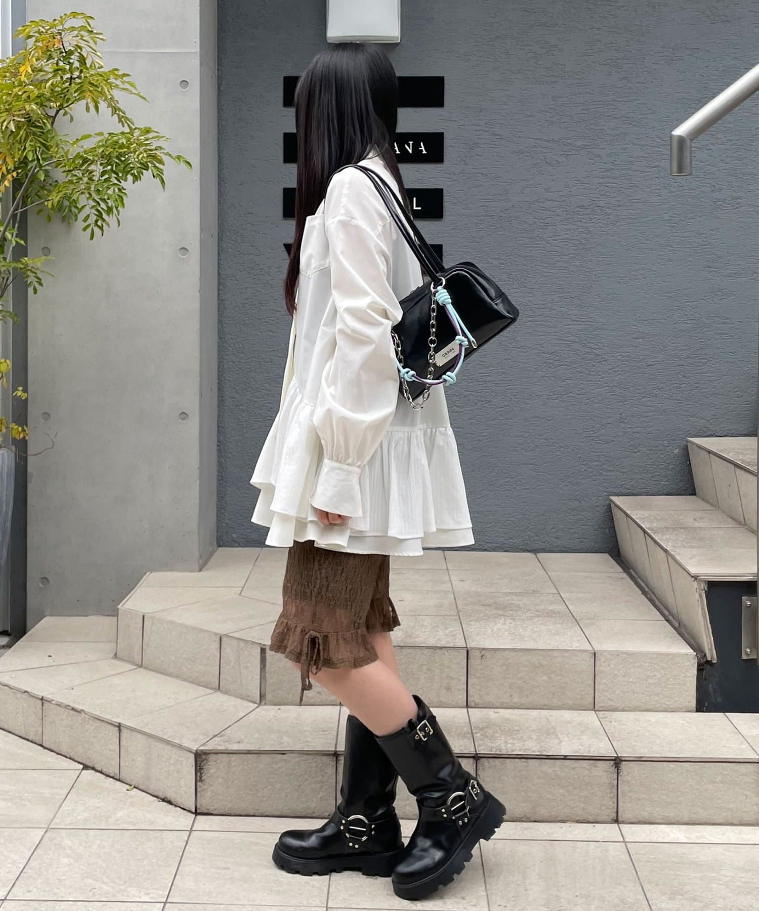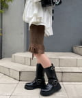 足元にはボリュームのあるブーツを合わせることで、レースの可愛さが引き立ち、全体のバランスが整います。