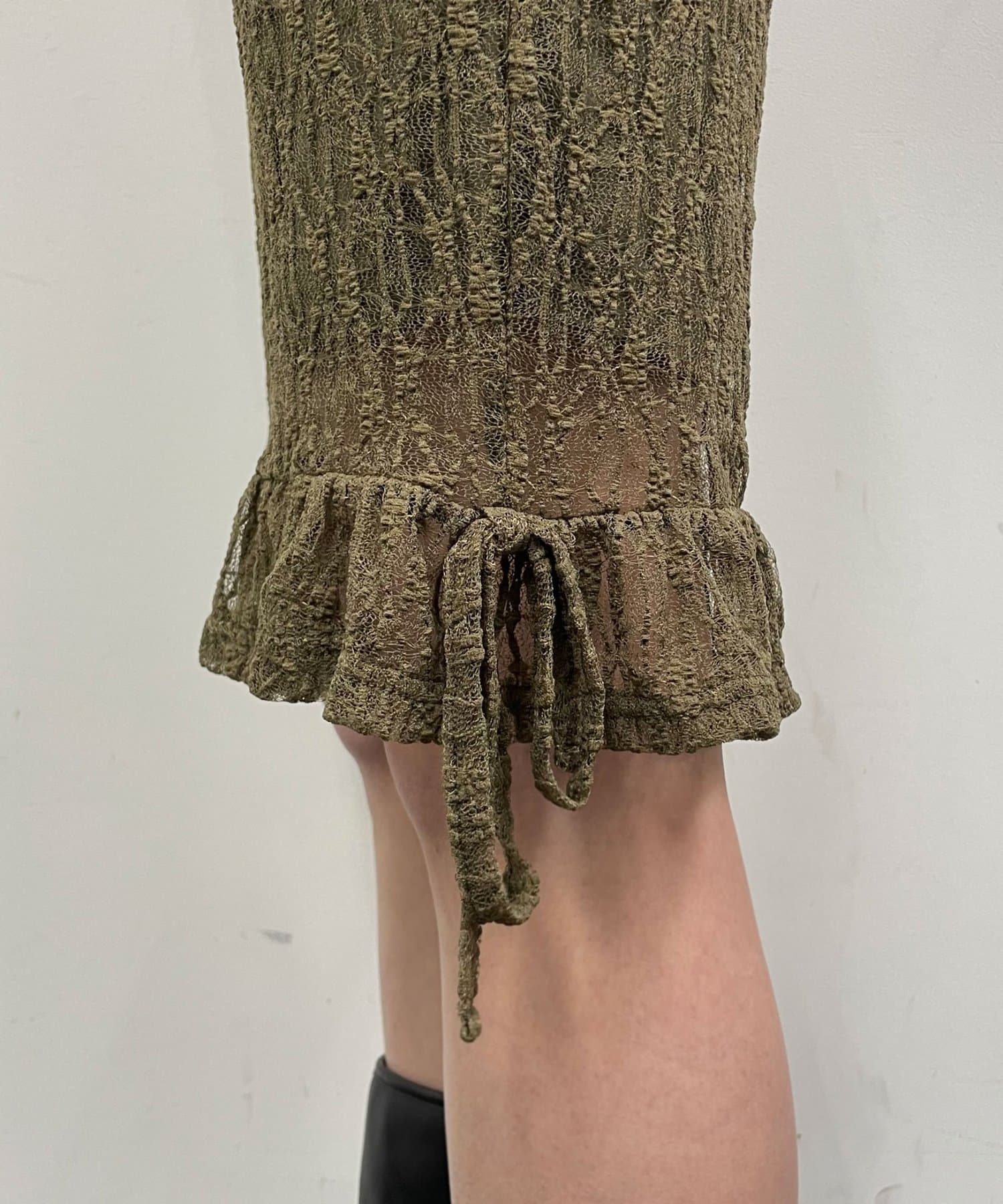 伸縮性のあるレース素材が脚に心地よくフィットし、レイヤードスタイルの鮮度を上げてくれる一着です。