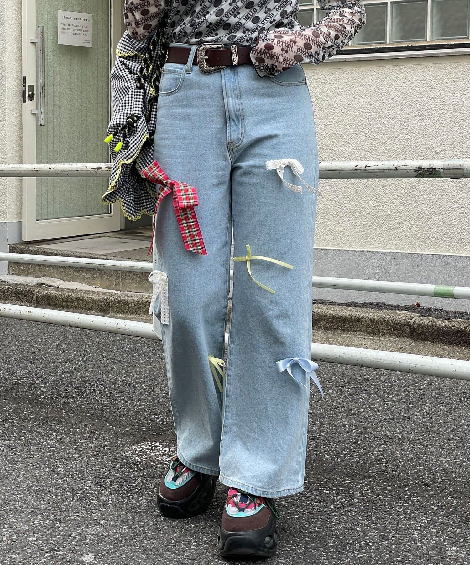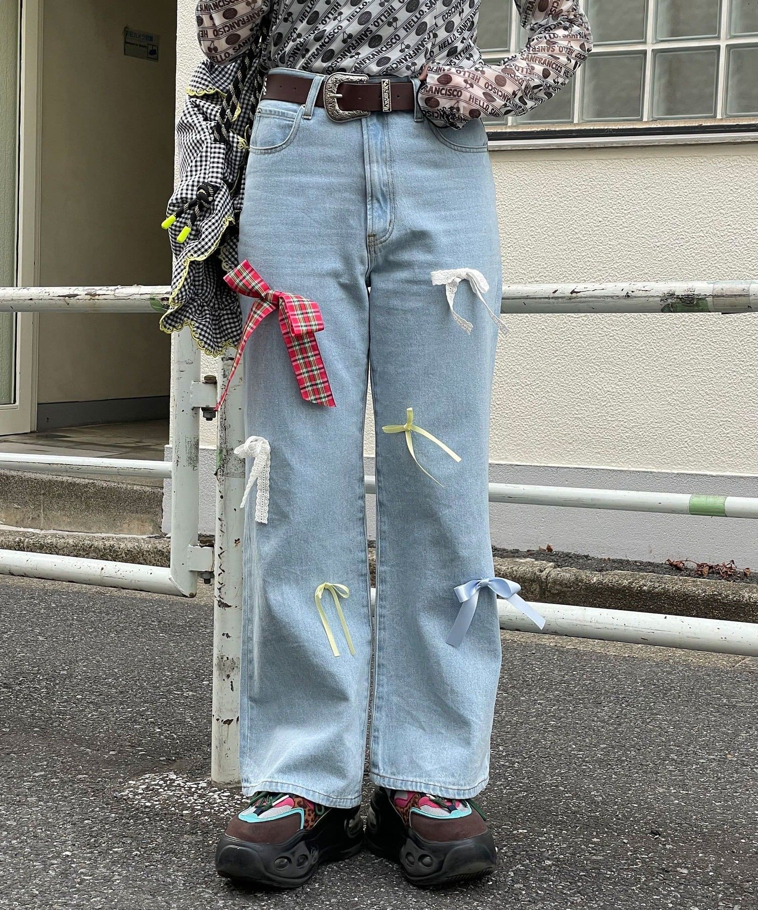 【HELLO.SANFRANCISCO/ハローサンフランシスコ】カラフルリボンフレアデニム