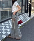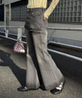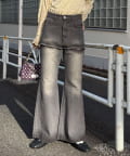 脚のラインを拾わないフレアシルエットで、体型カバーを叶えつつトレンド感のあるスタイルに。