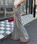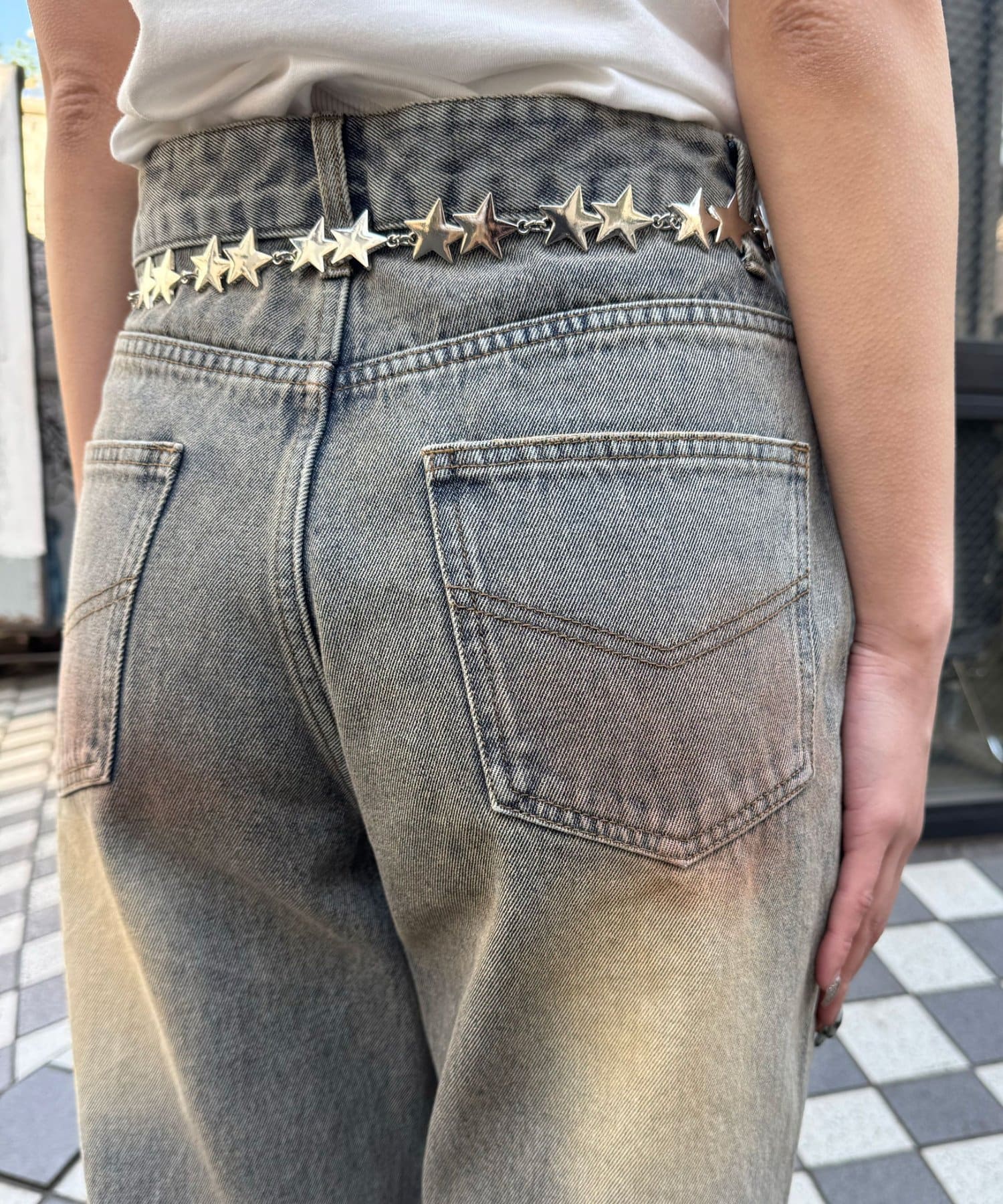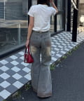 ヴィンテージライクな加工感が、シンプルなトップスを合わせるだけでこなれた雰囲気に格上げしてくれます。