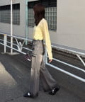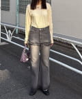 加工感の強いデニムだから、あえて甘めのブラウスと合わせて質感をミックスさせるのも。