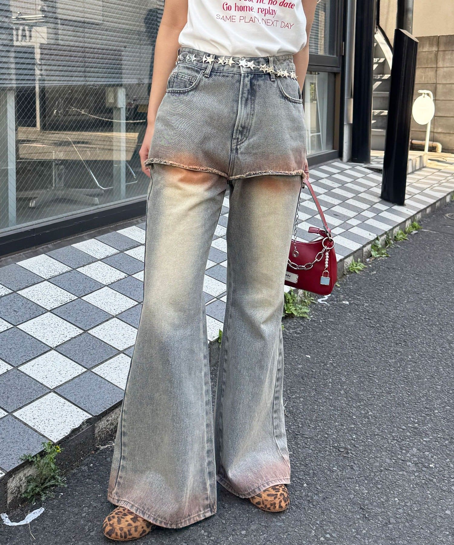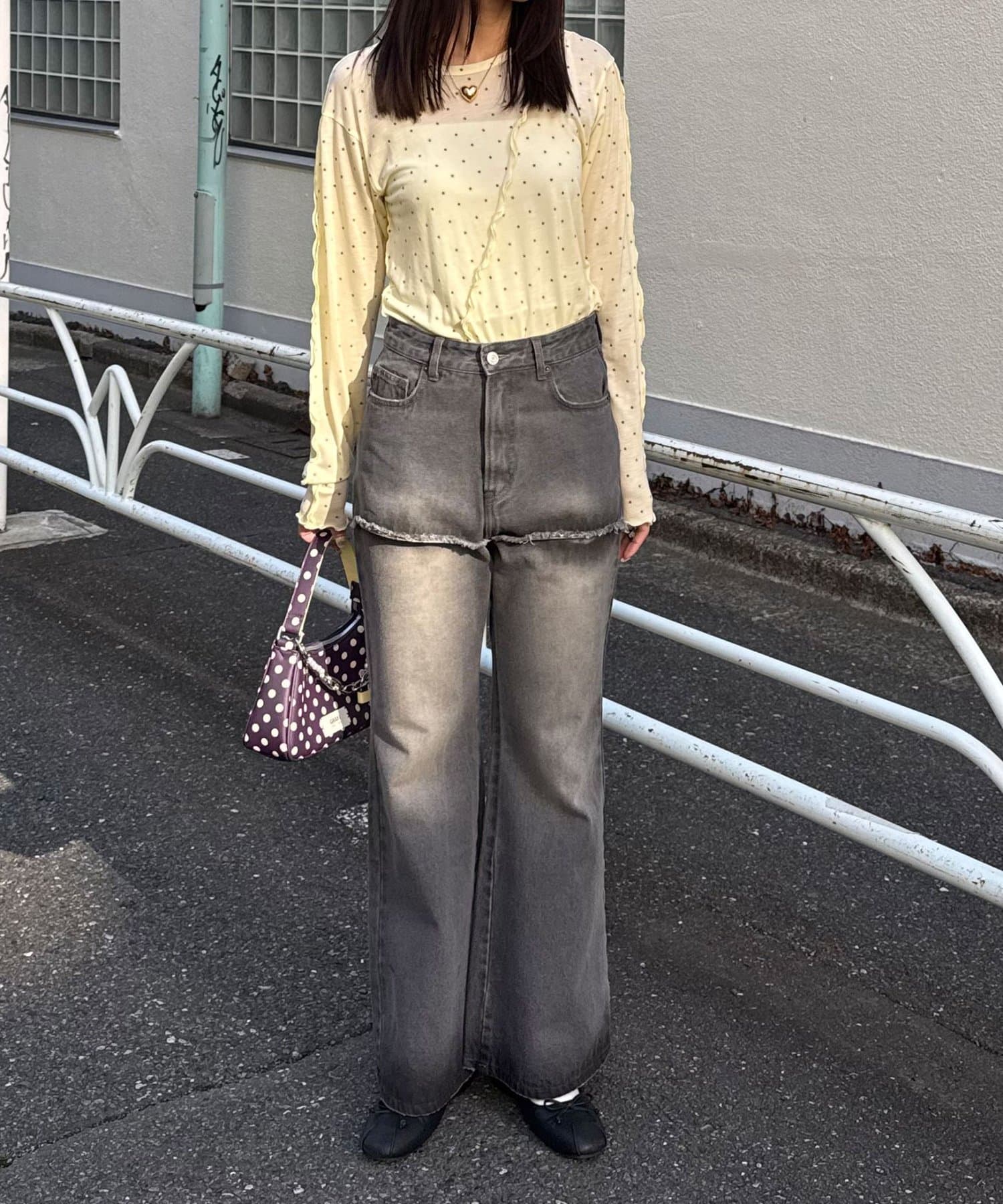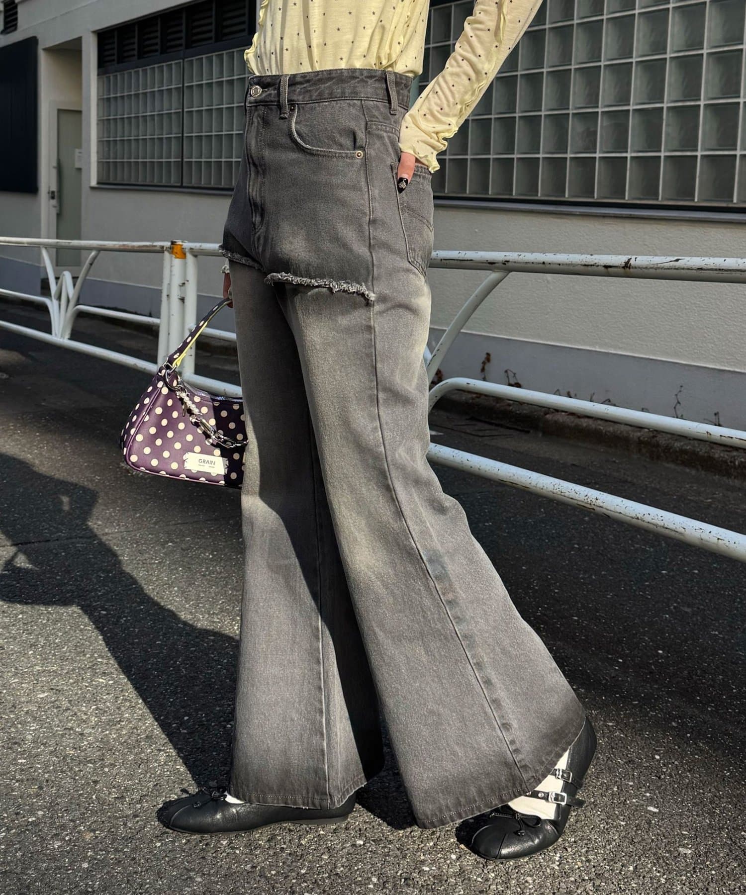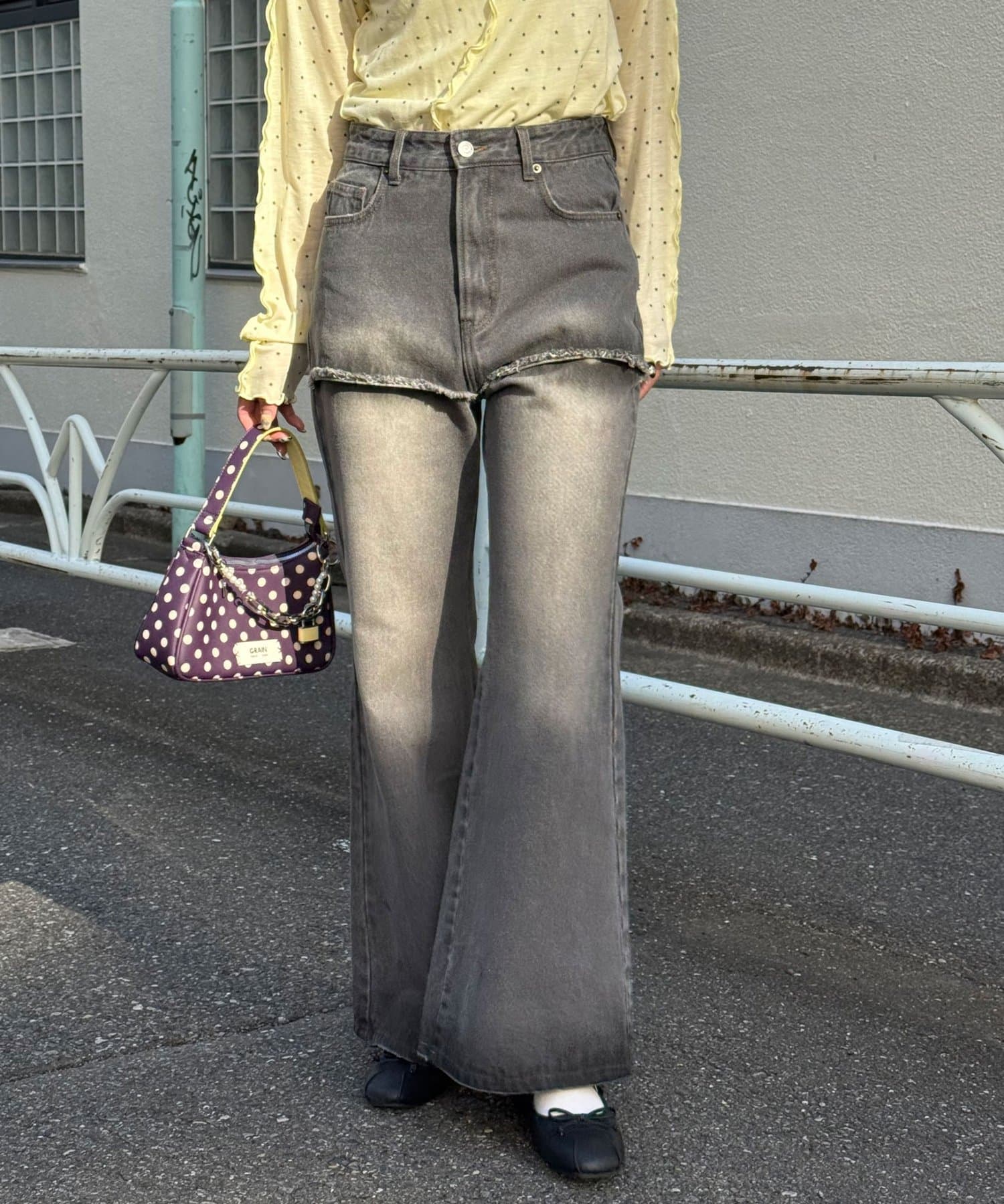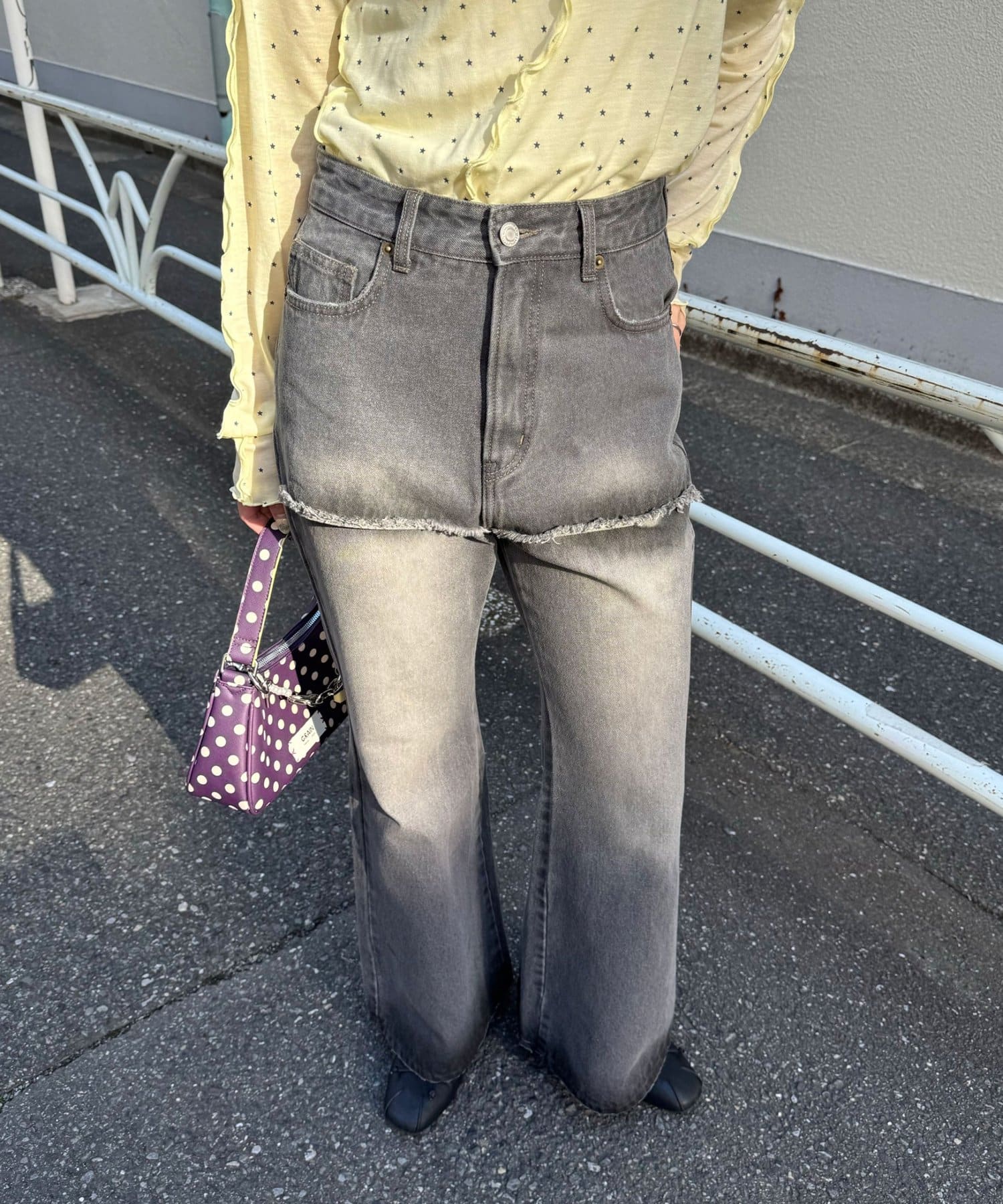 大胆なフリンジの切り替えで、レイヤードしているような奥行きを出したこだわり派デニム。