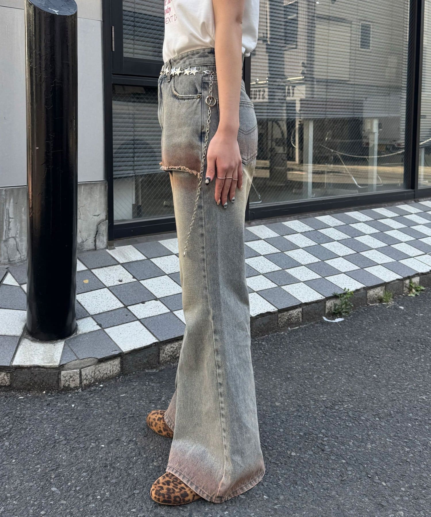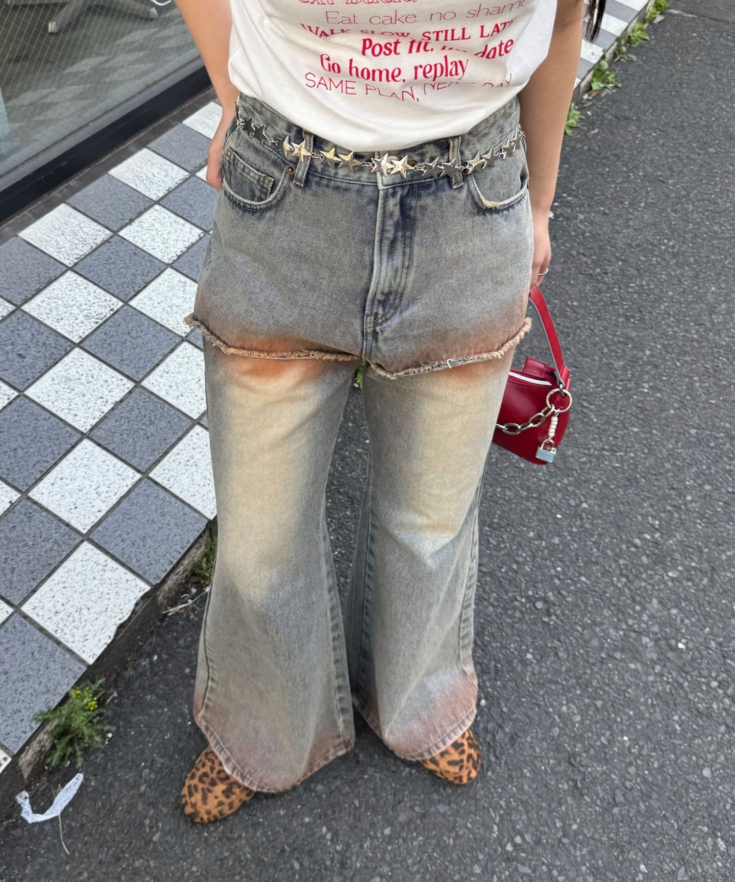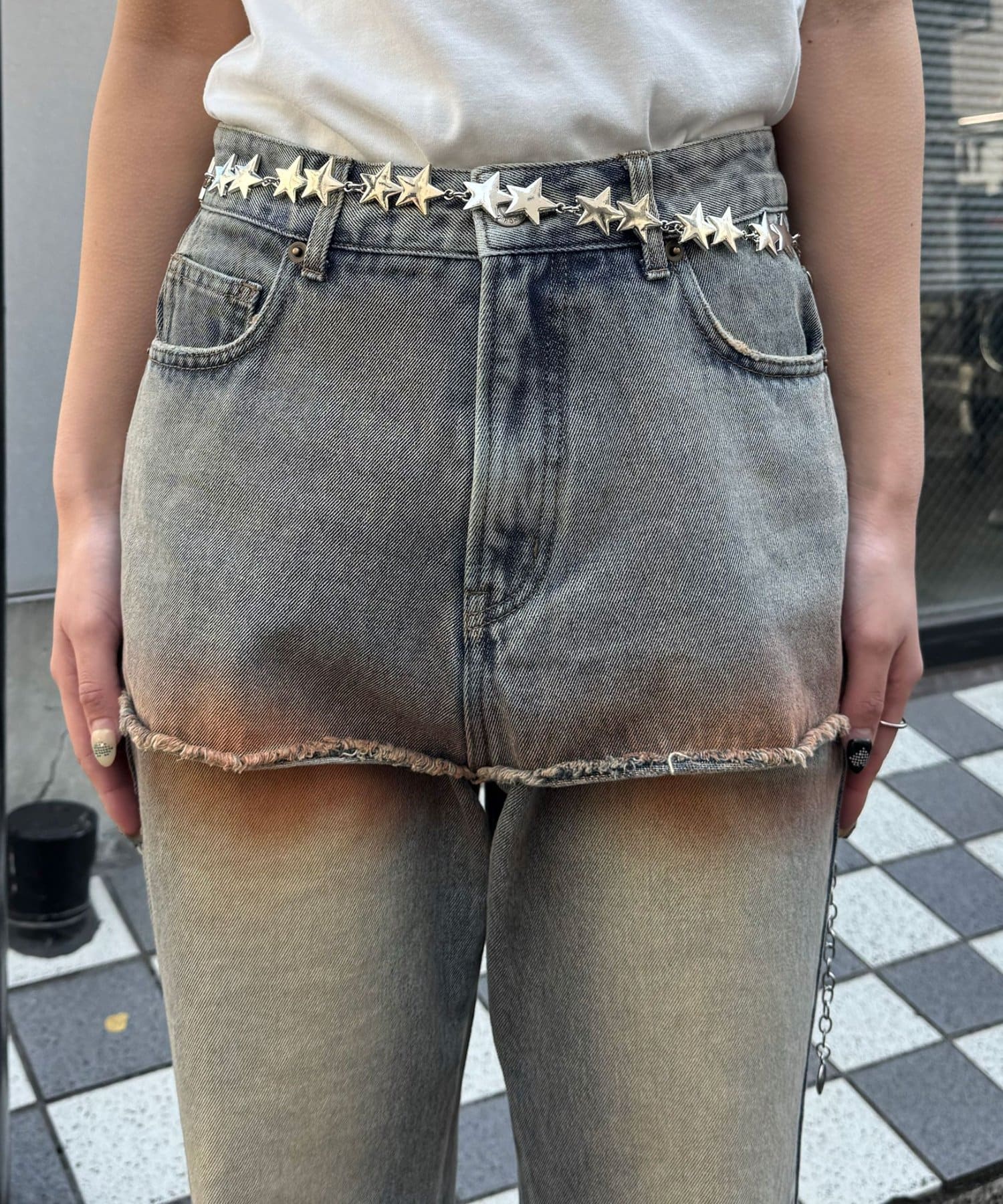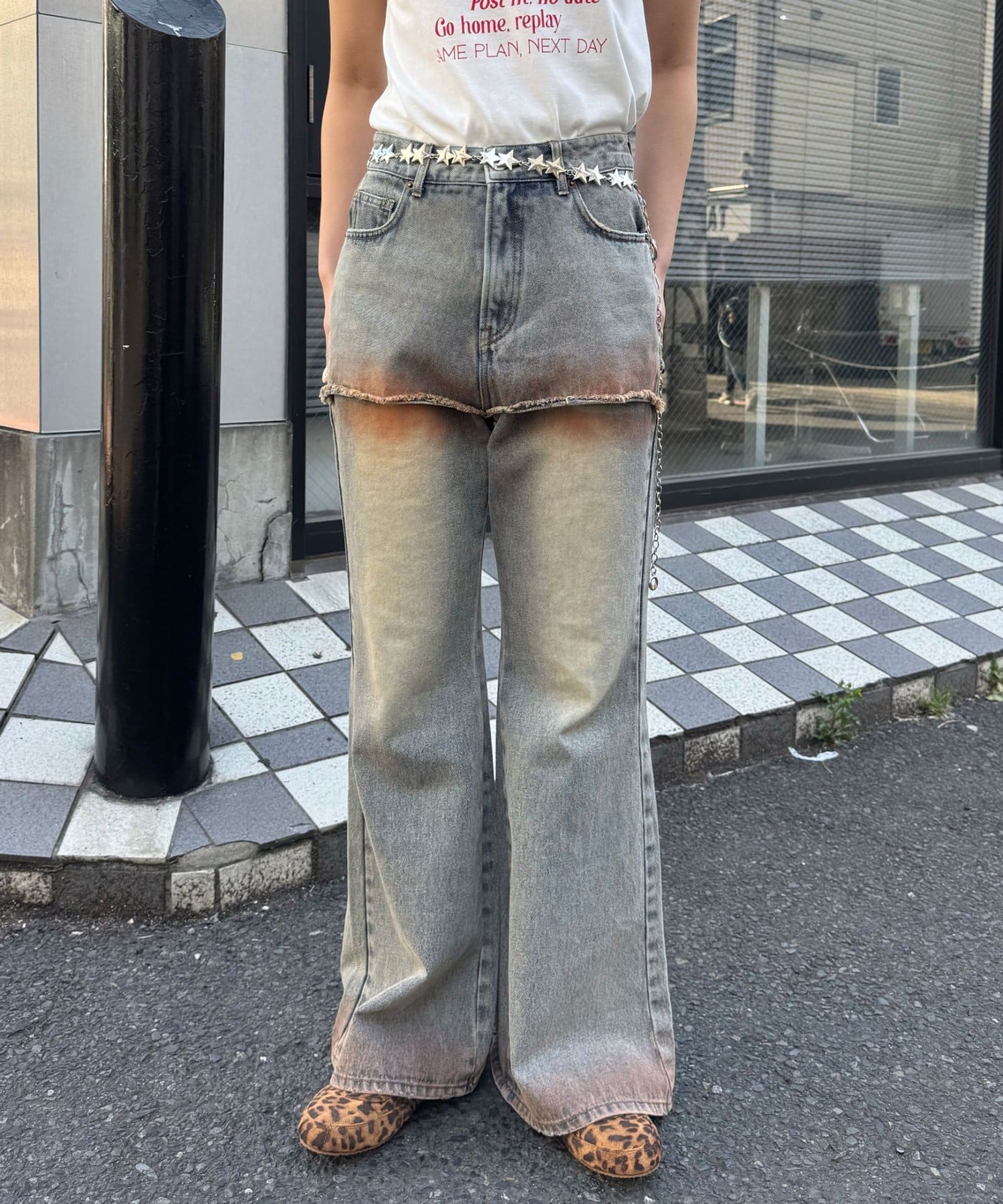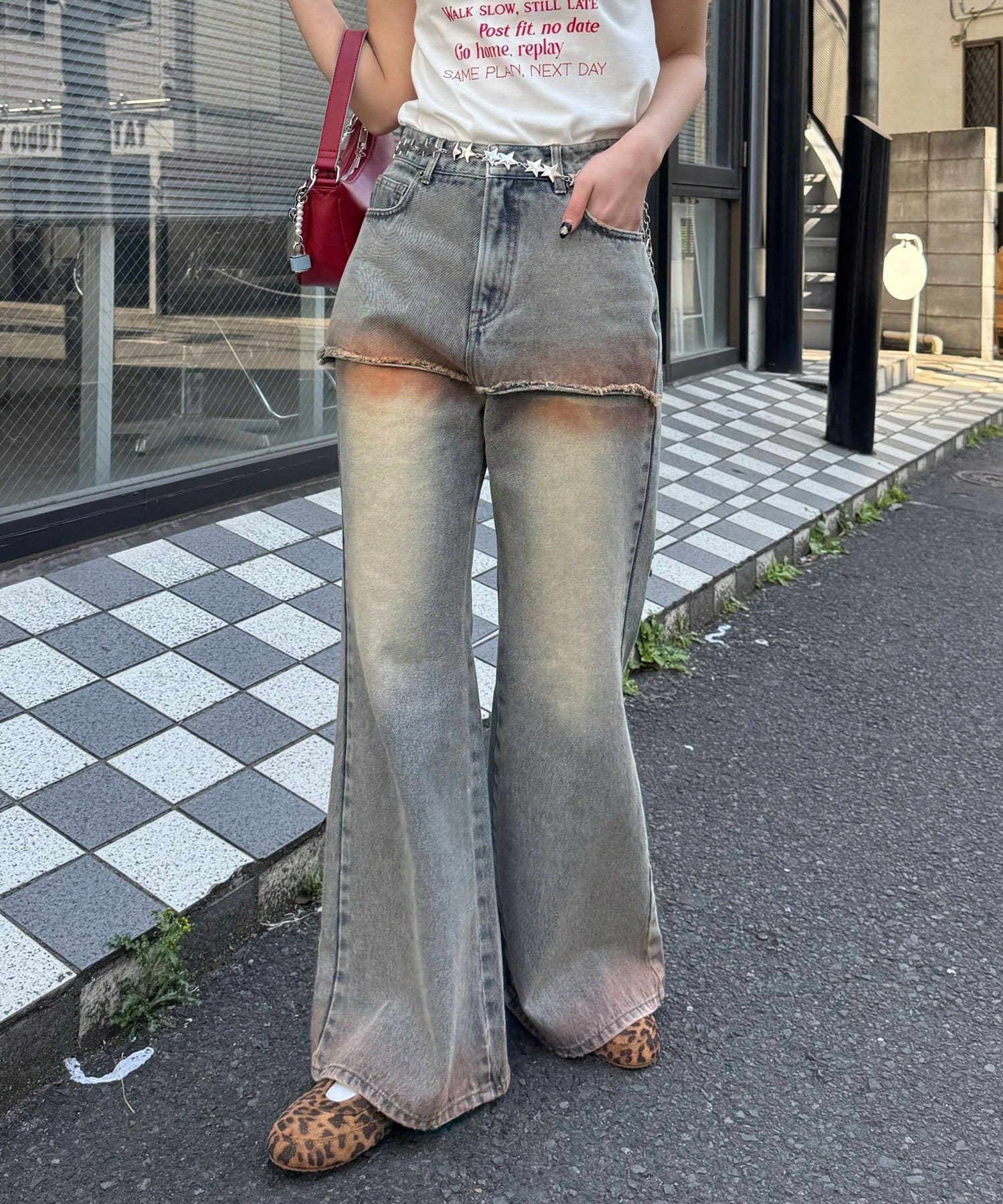 大胆なフリンジの切り替えで、レイヤードしているような奥行きを出したこだわり派デニム。