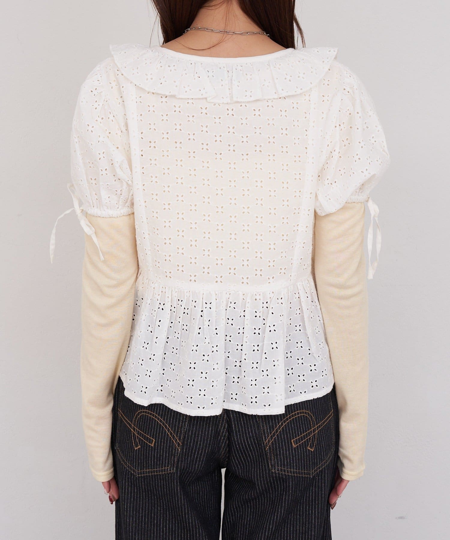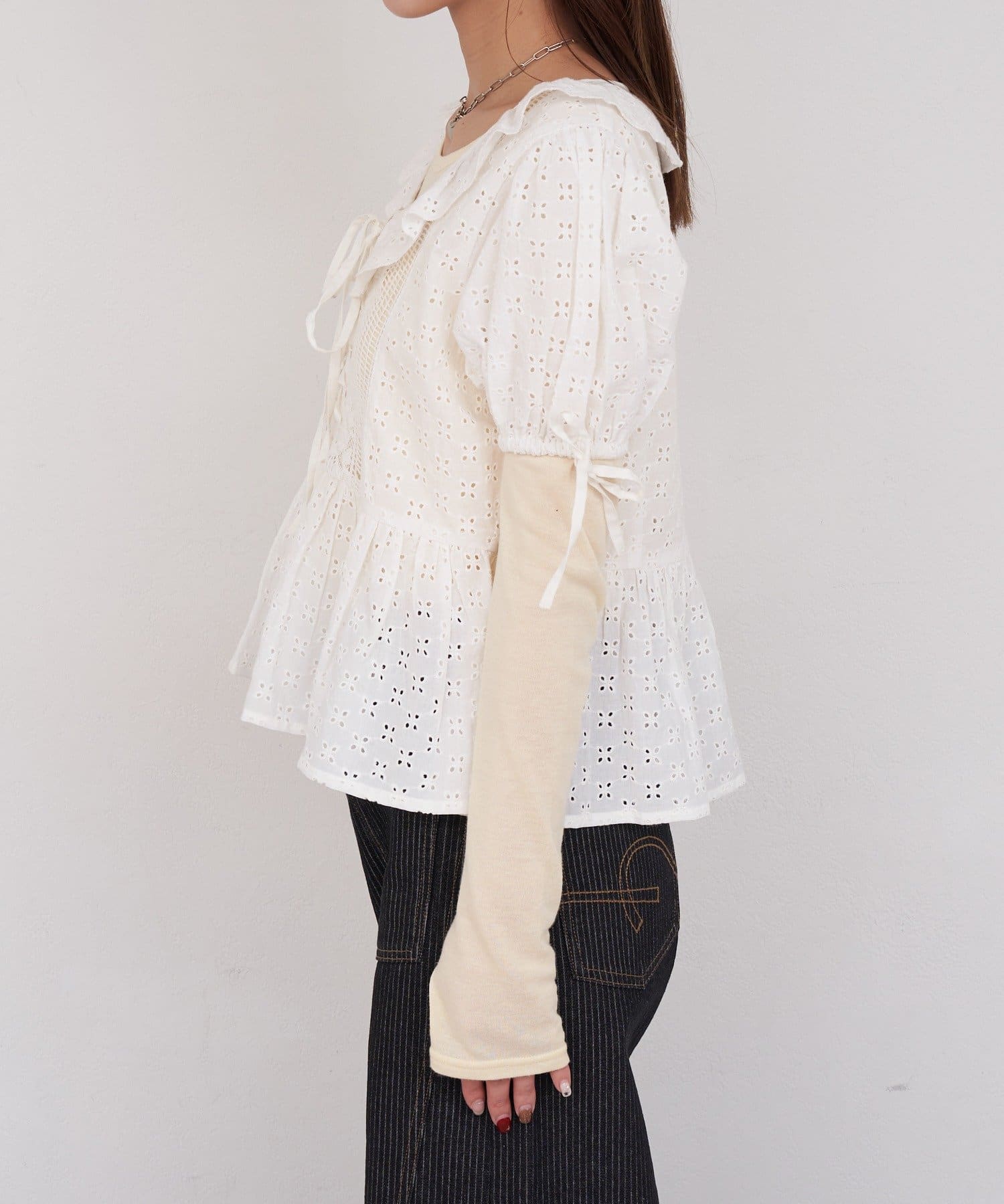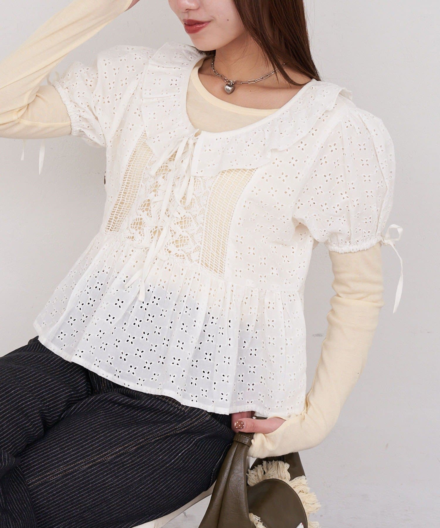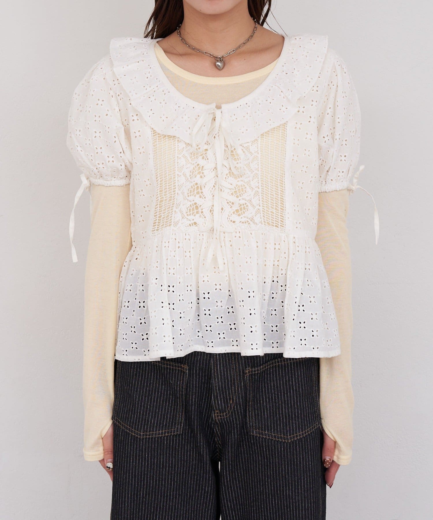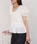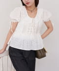 【She desires…】レースアップパフスリーブブラウス