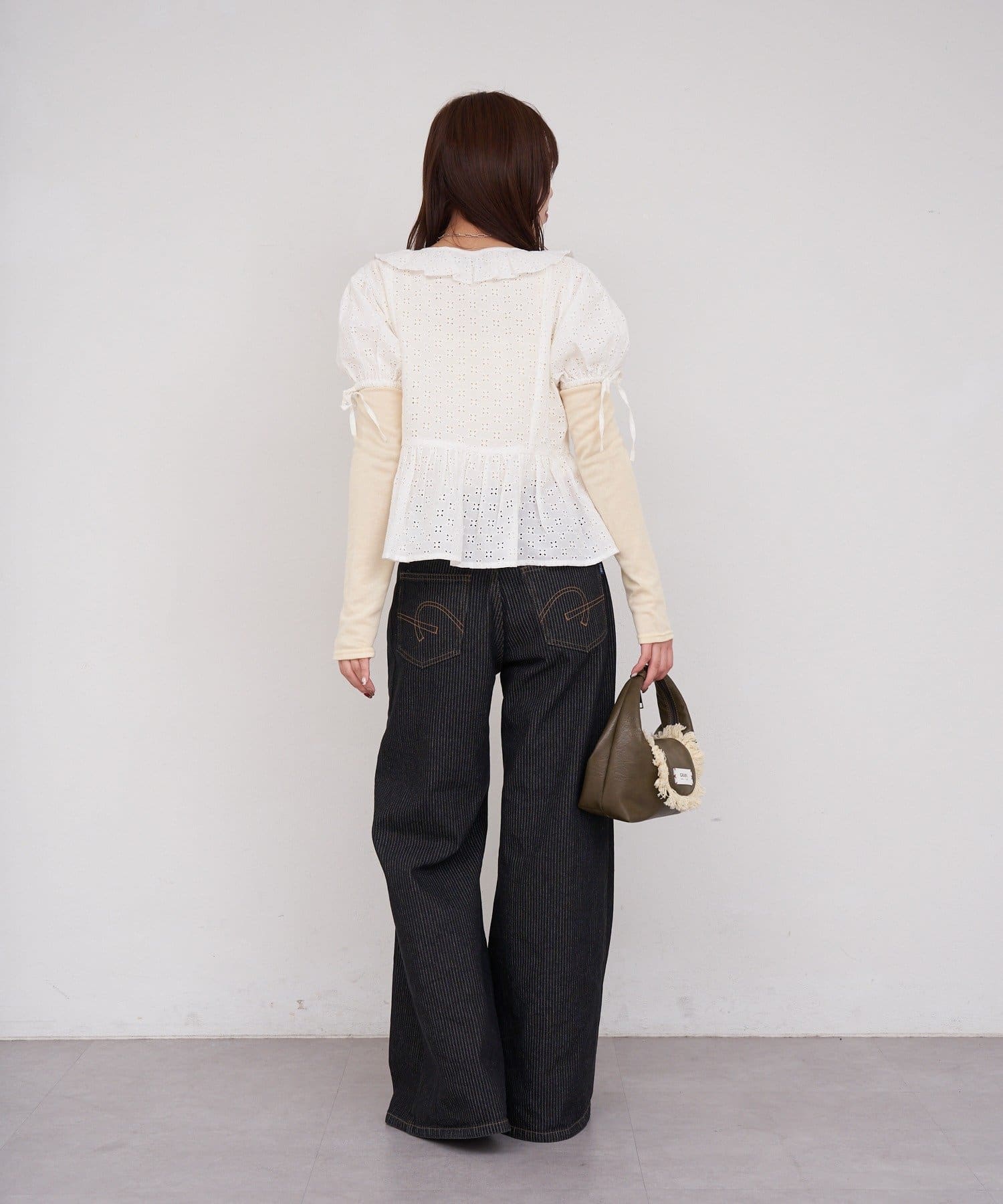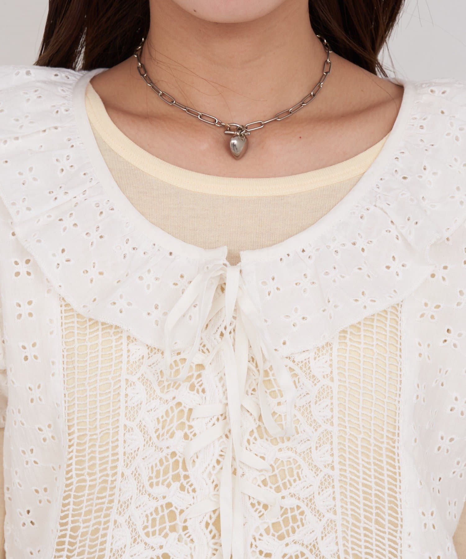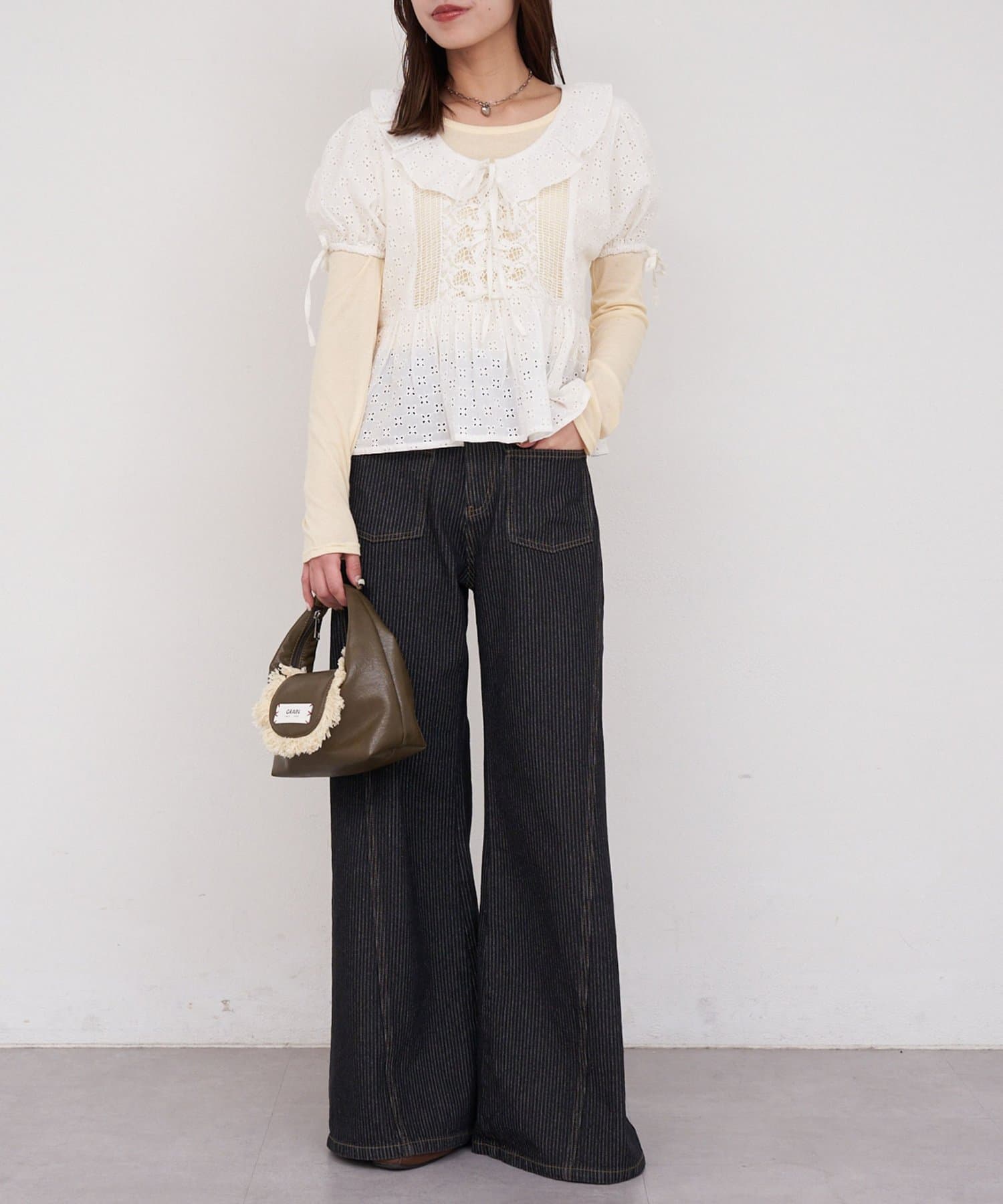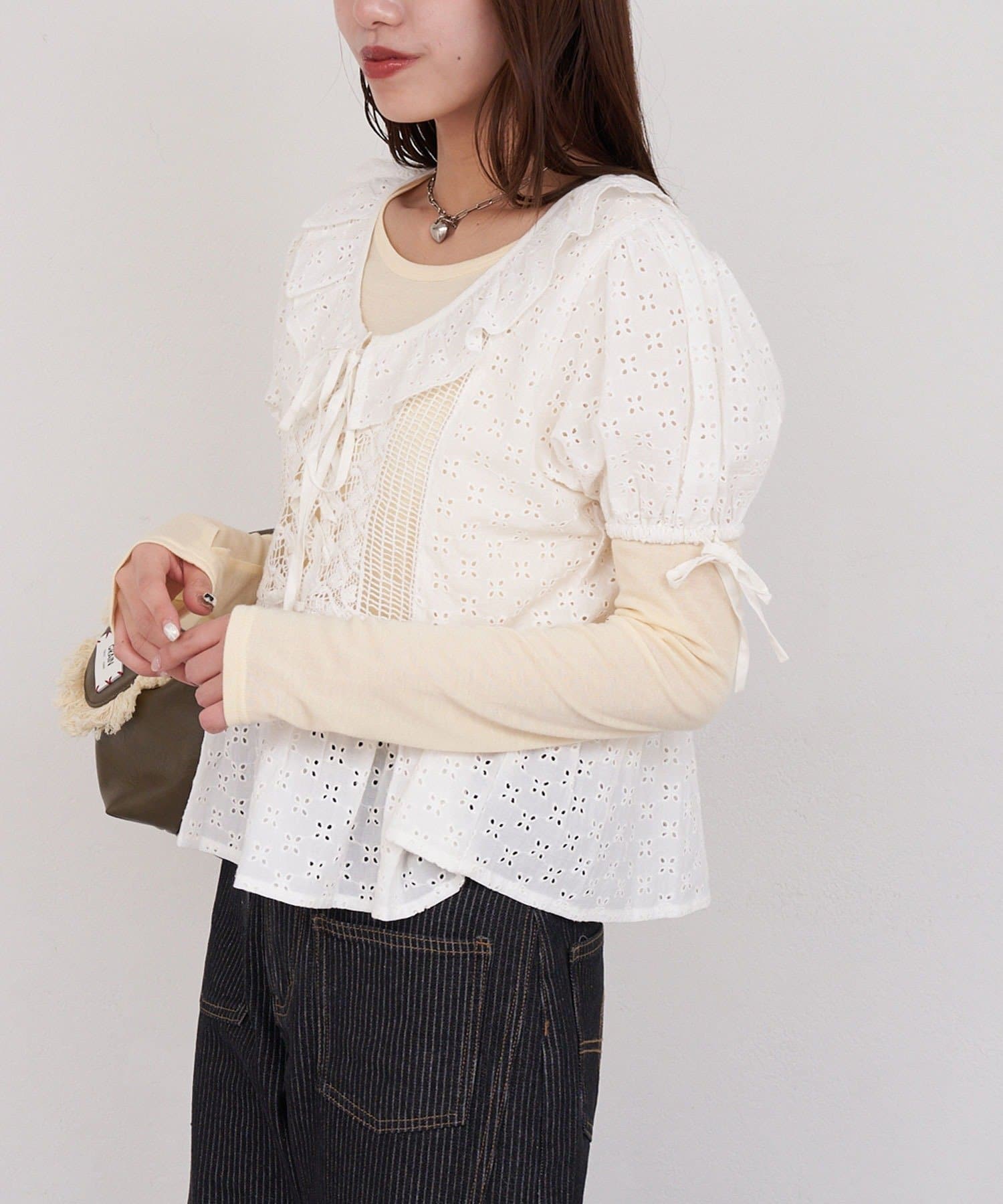 【She desires…】レースアップパフスリーブブラウス