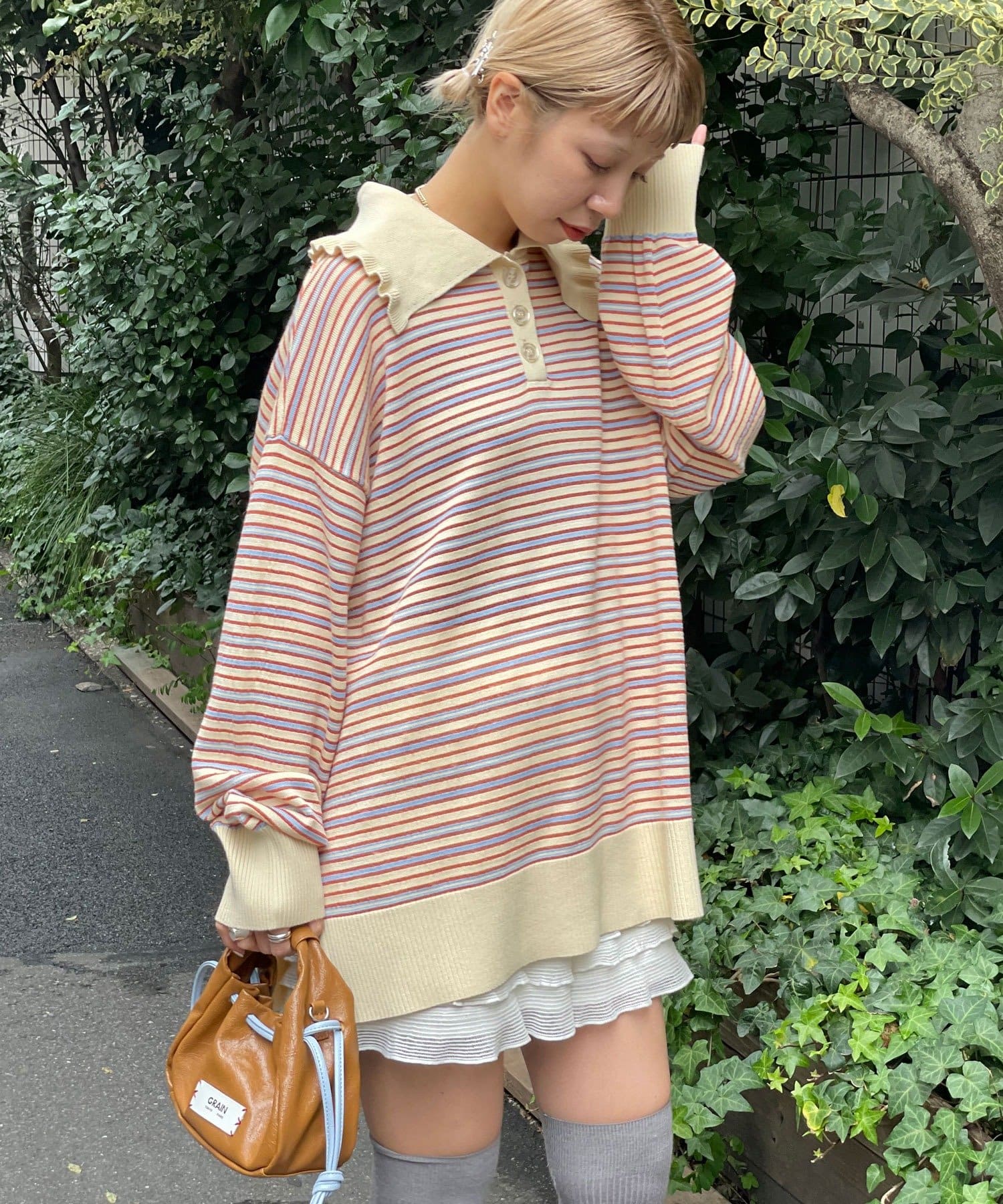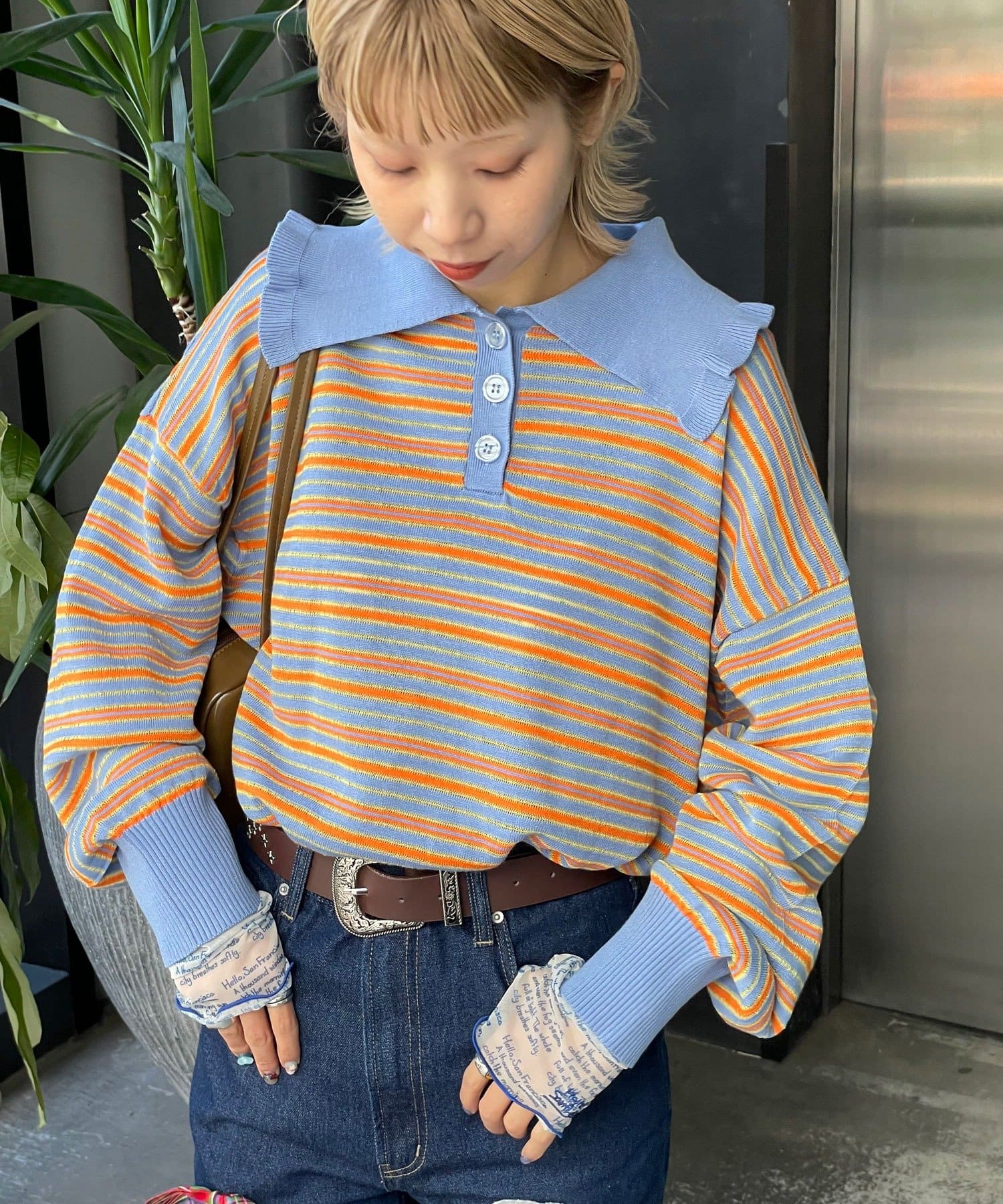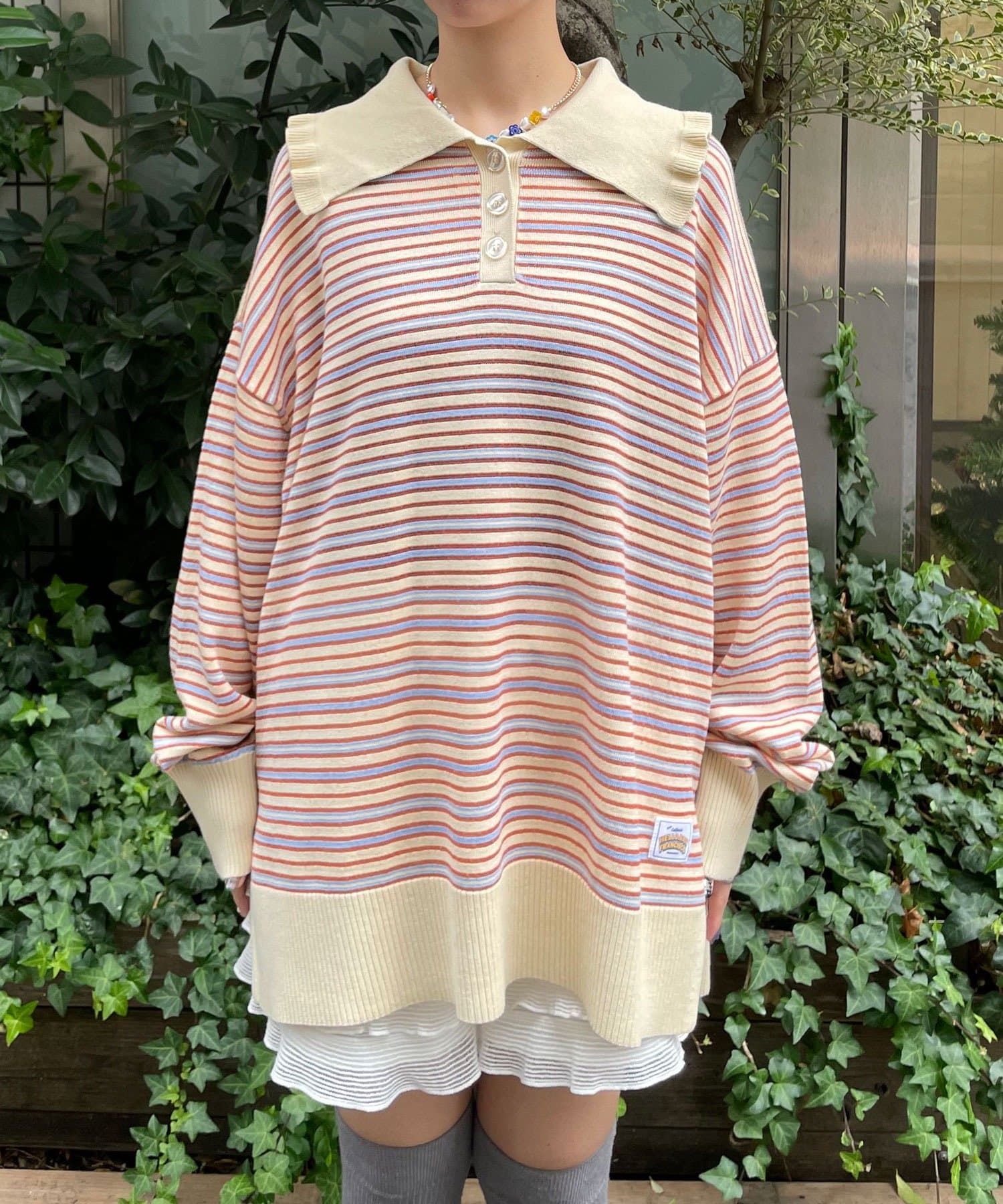 【HELLO.SANFRANCISCO/ハローサンフランシスコ】ビッグカラーボーダーポロニット