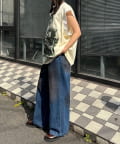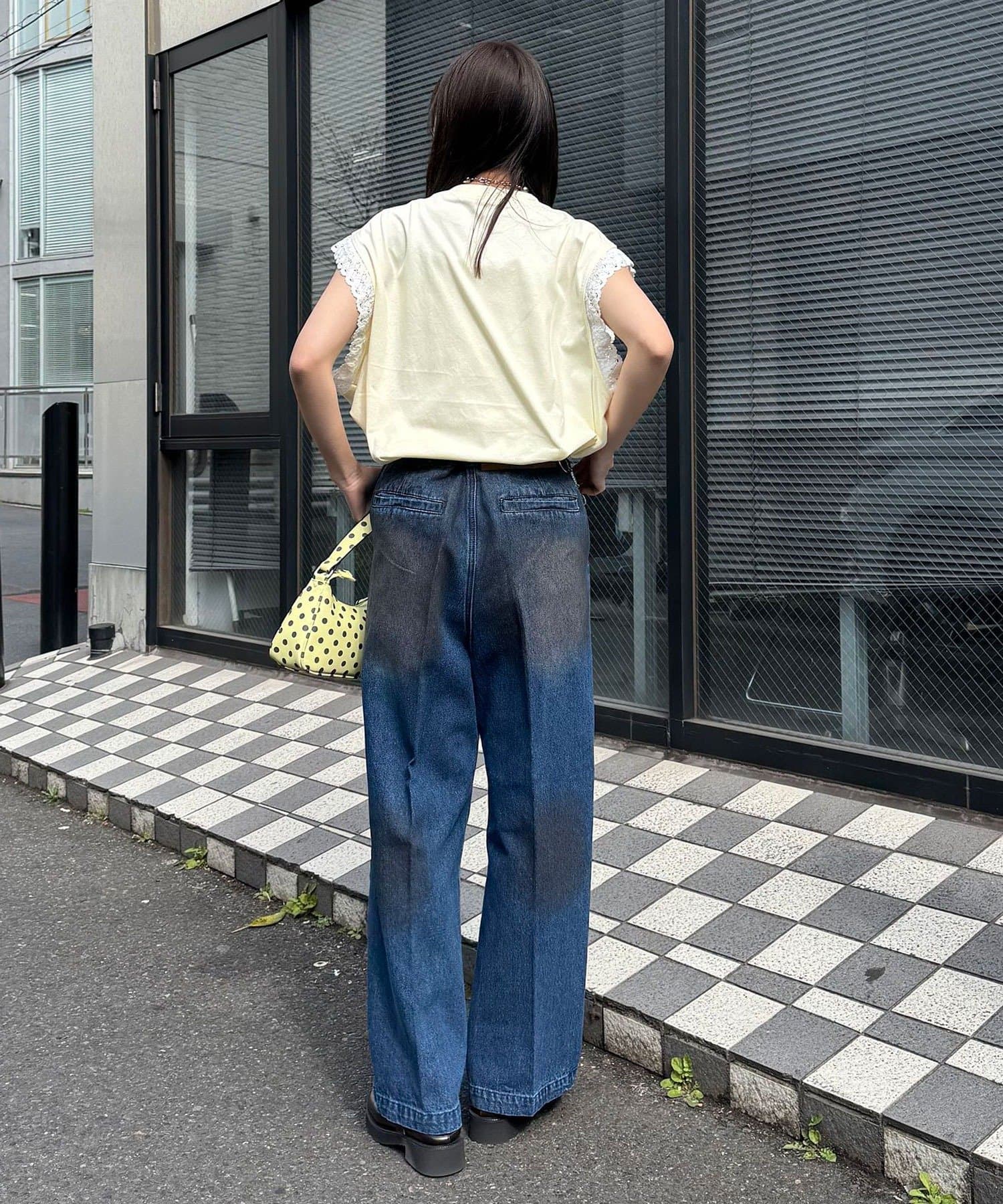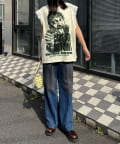 ずるっとした太めのデニムと合わせるだけで、甘さと辛さが混ざったストリートスタイルが即完成します。