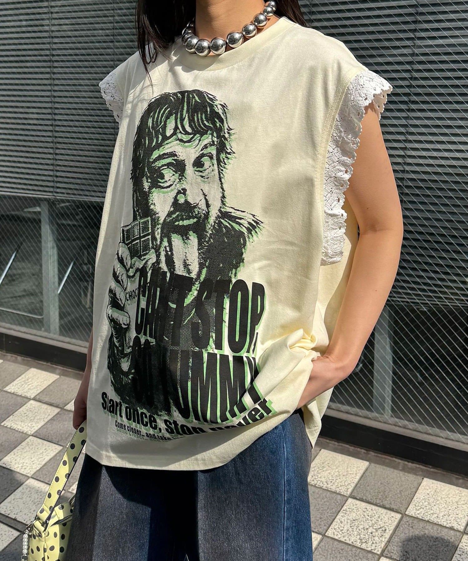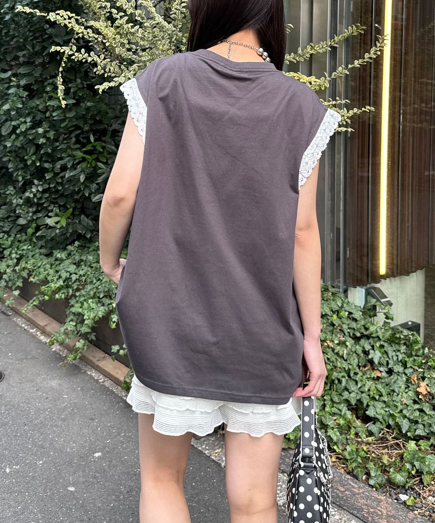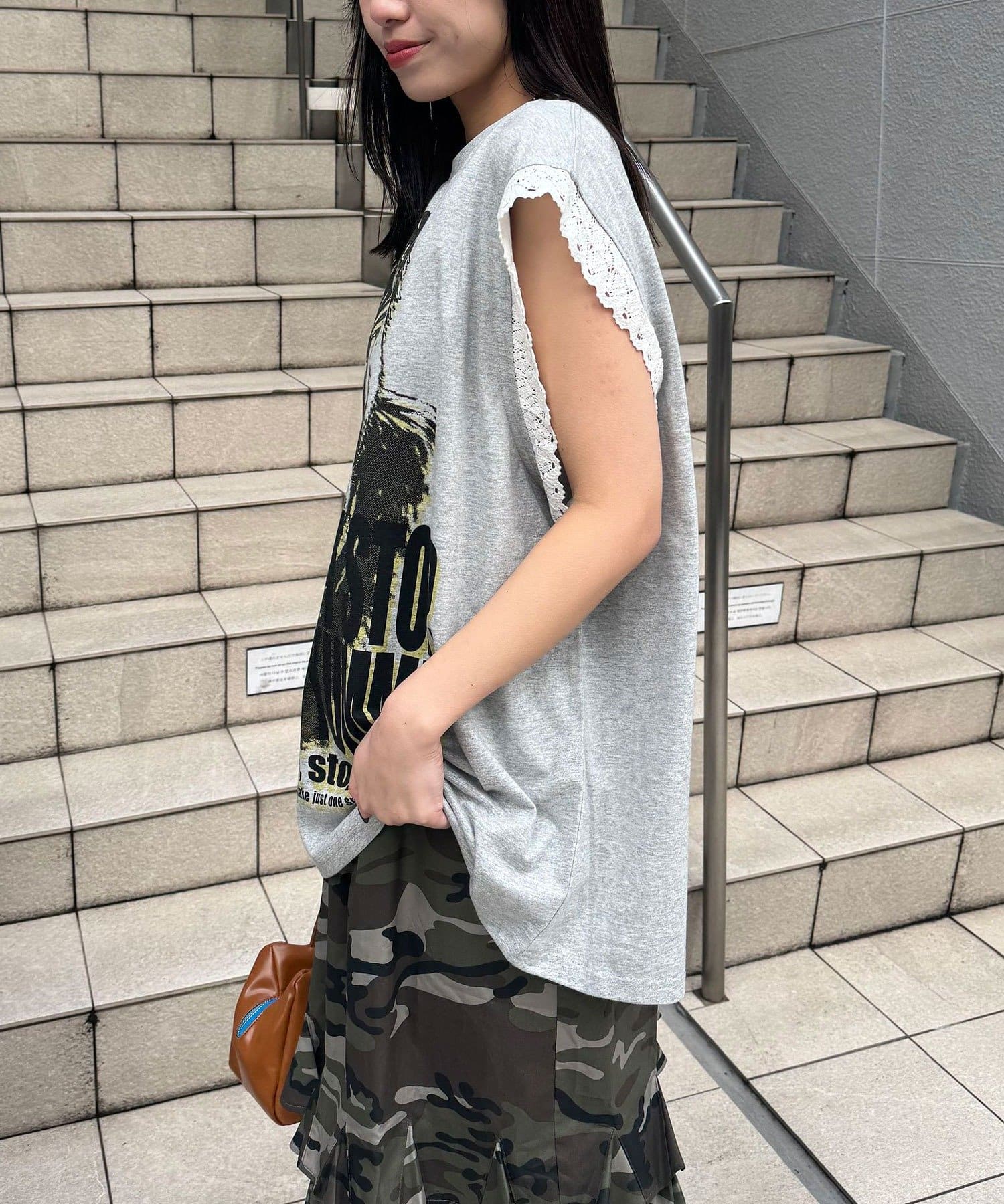 袖レースロゴノースリーブビッグTEE