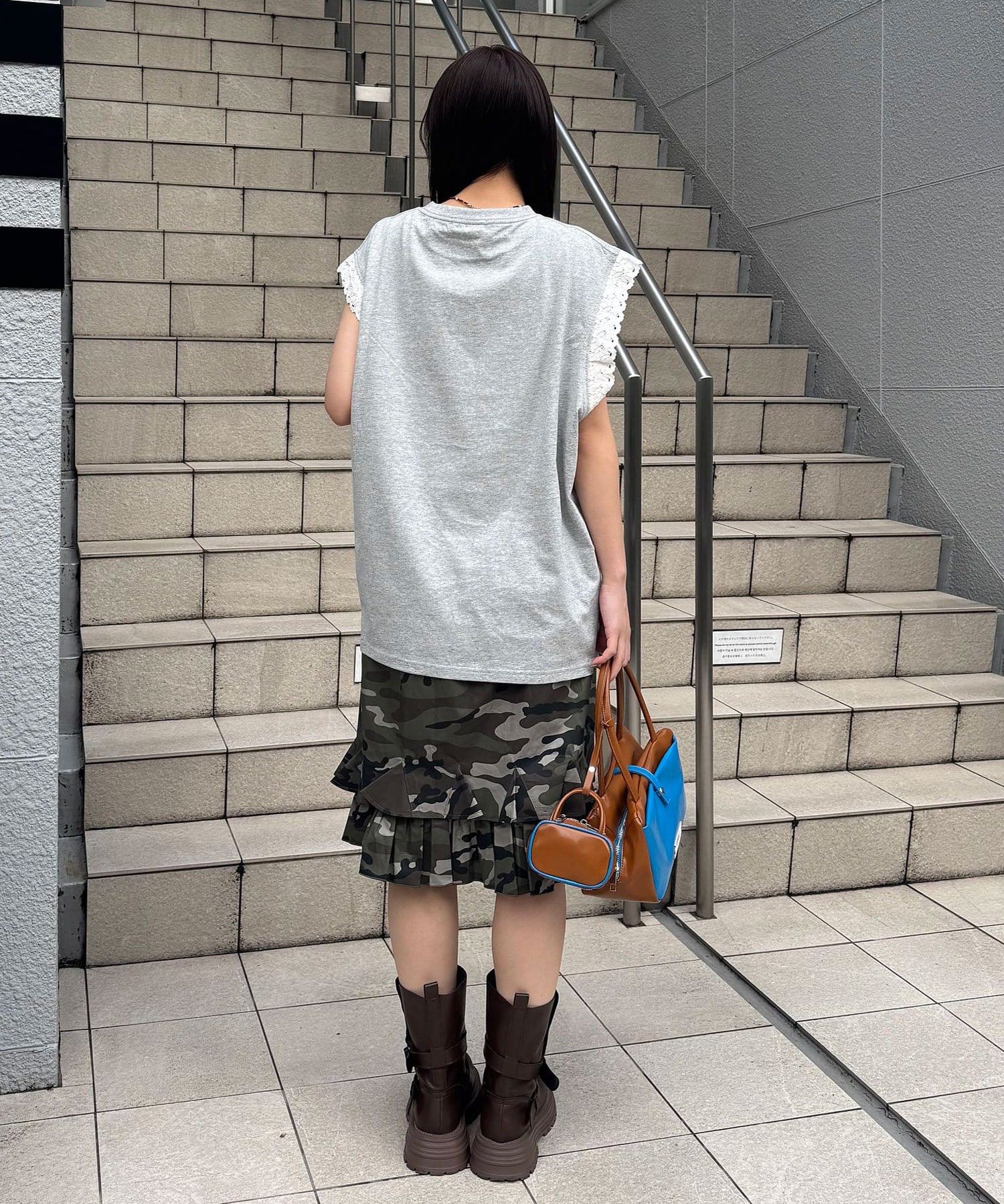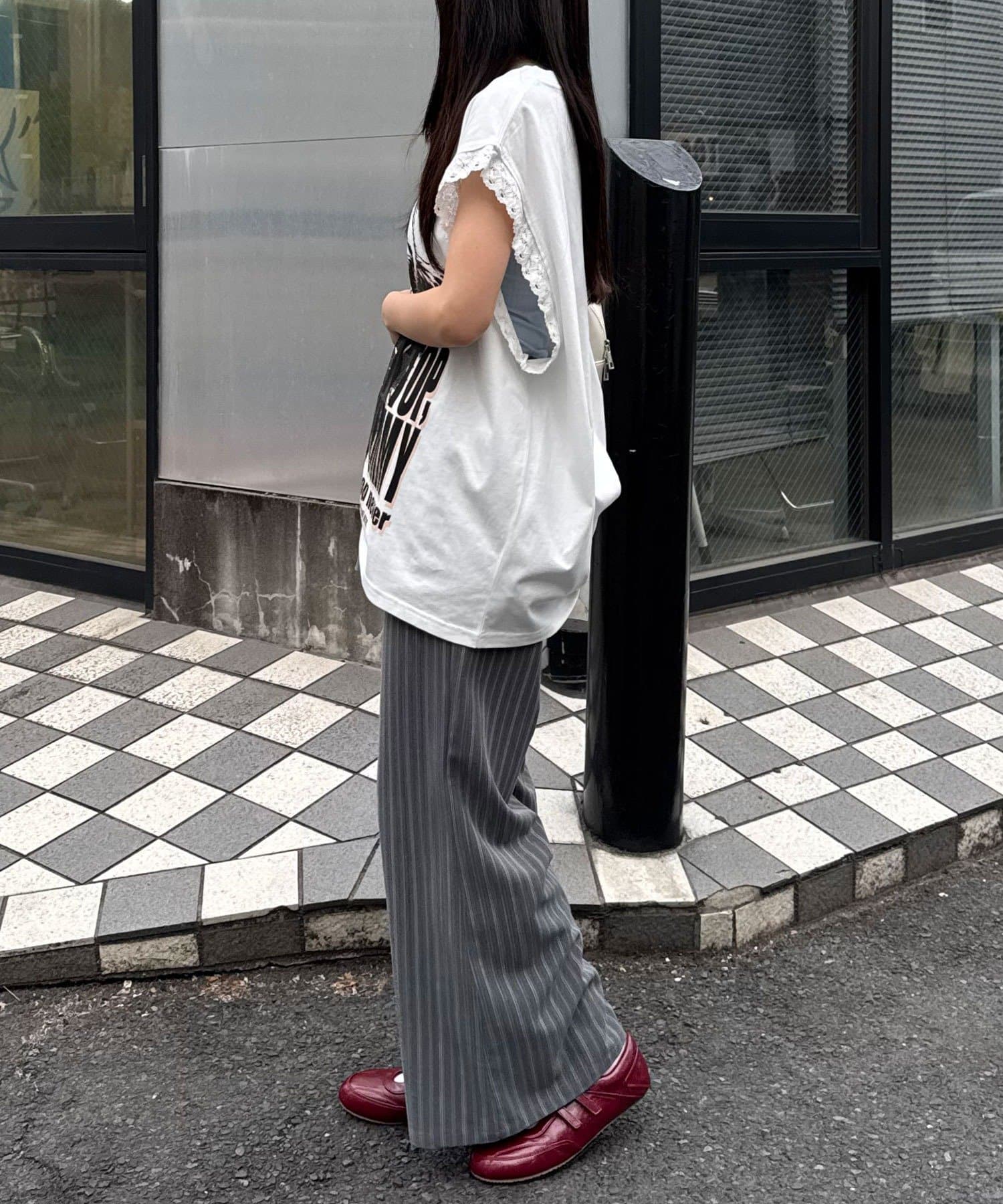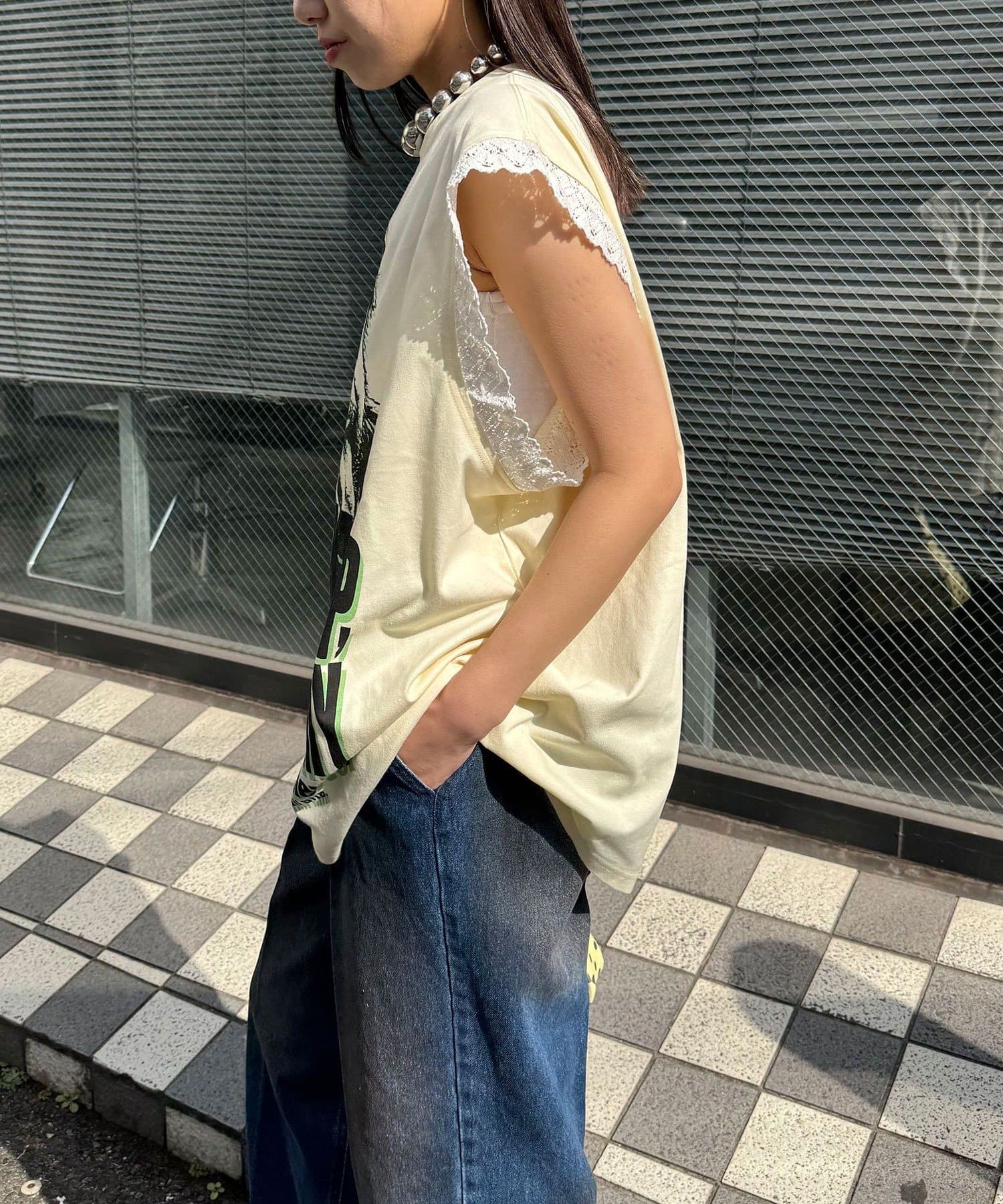 袖レースロゴノースリーブビッグTEE