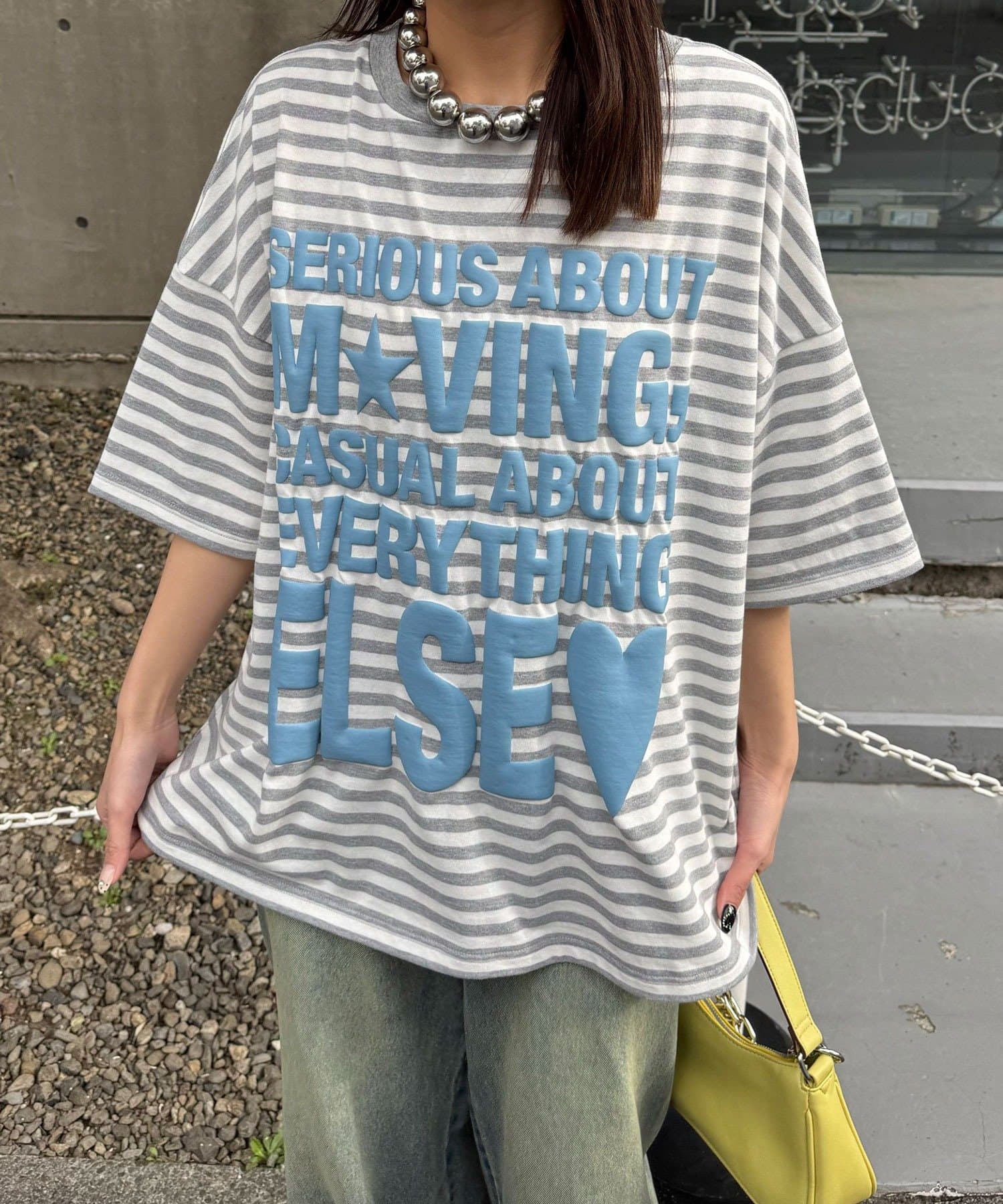 ぷっくりロゴが主役のボーダーロゴTシャツ