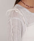 シンプルなコーデにプラスするだけで、程よい甘さと抜け感を演出します。