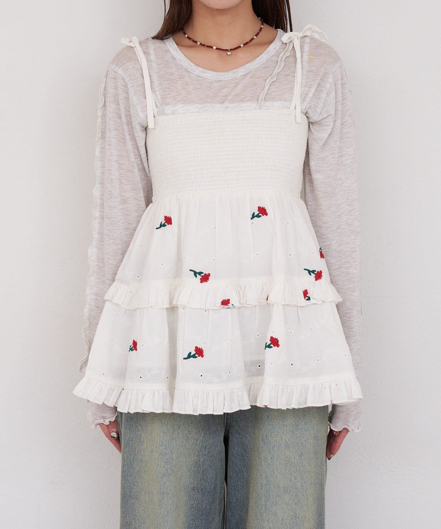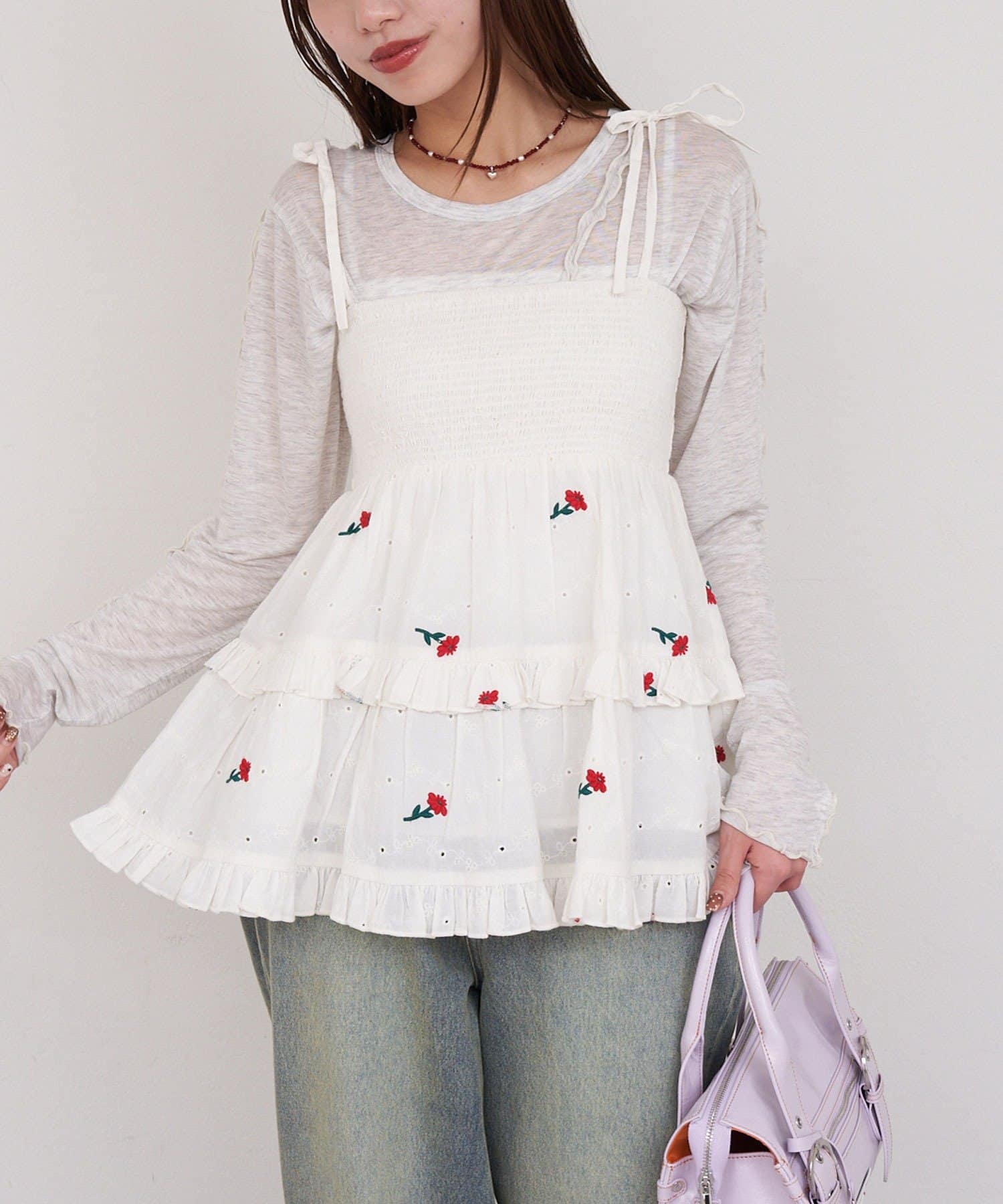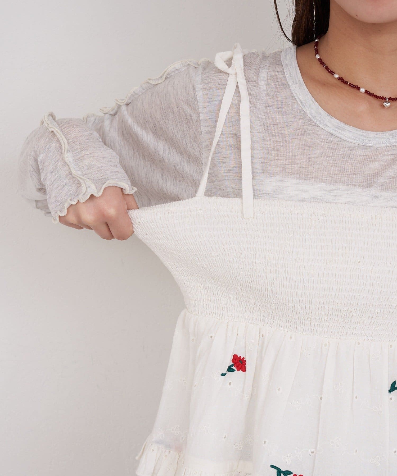 着方で遊べる2wayシャーリング刺繍ビスチェ