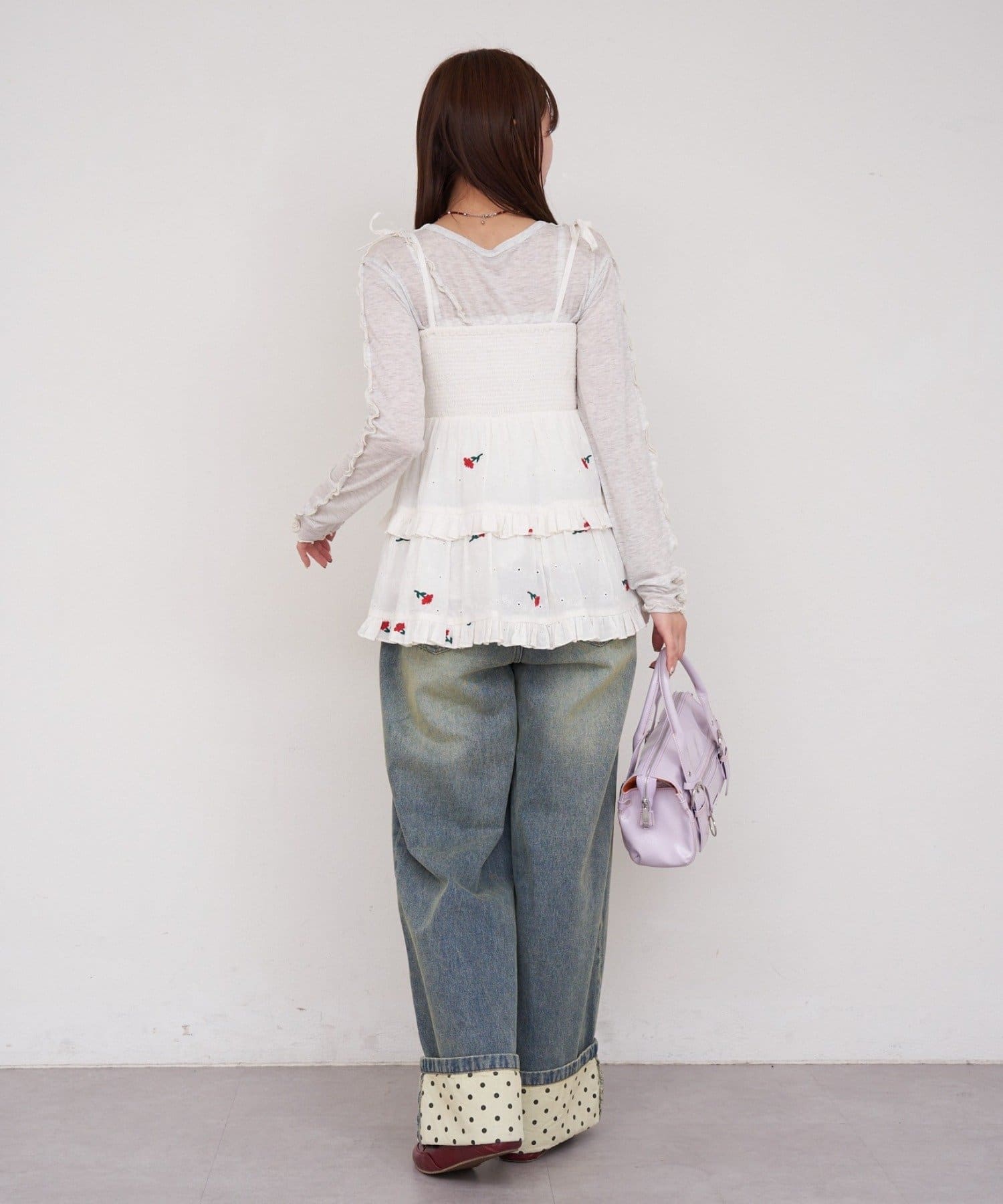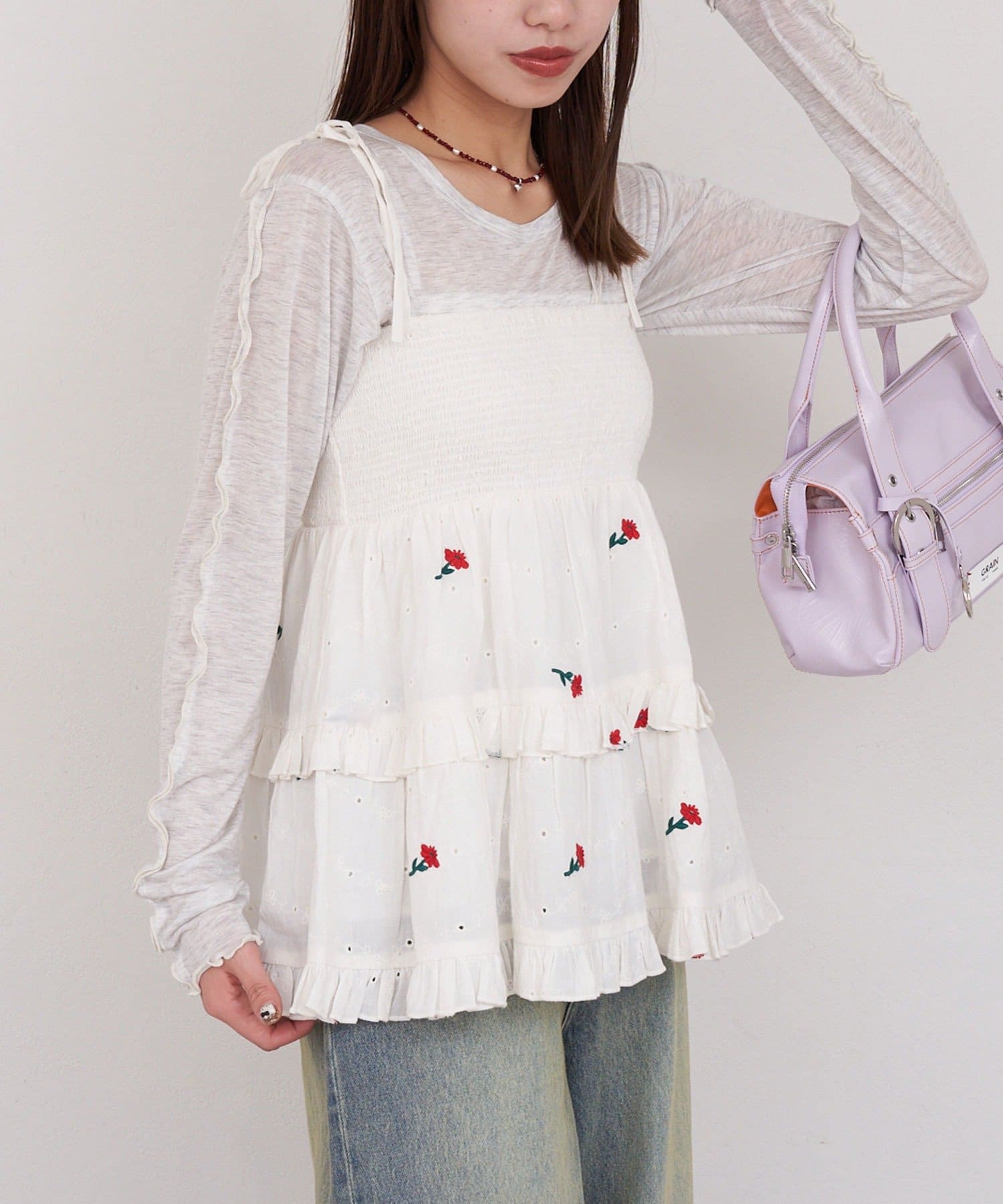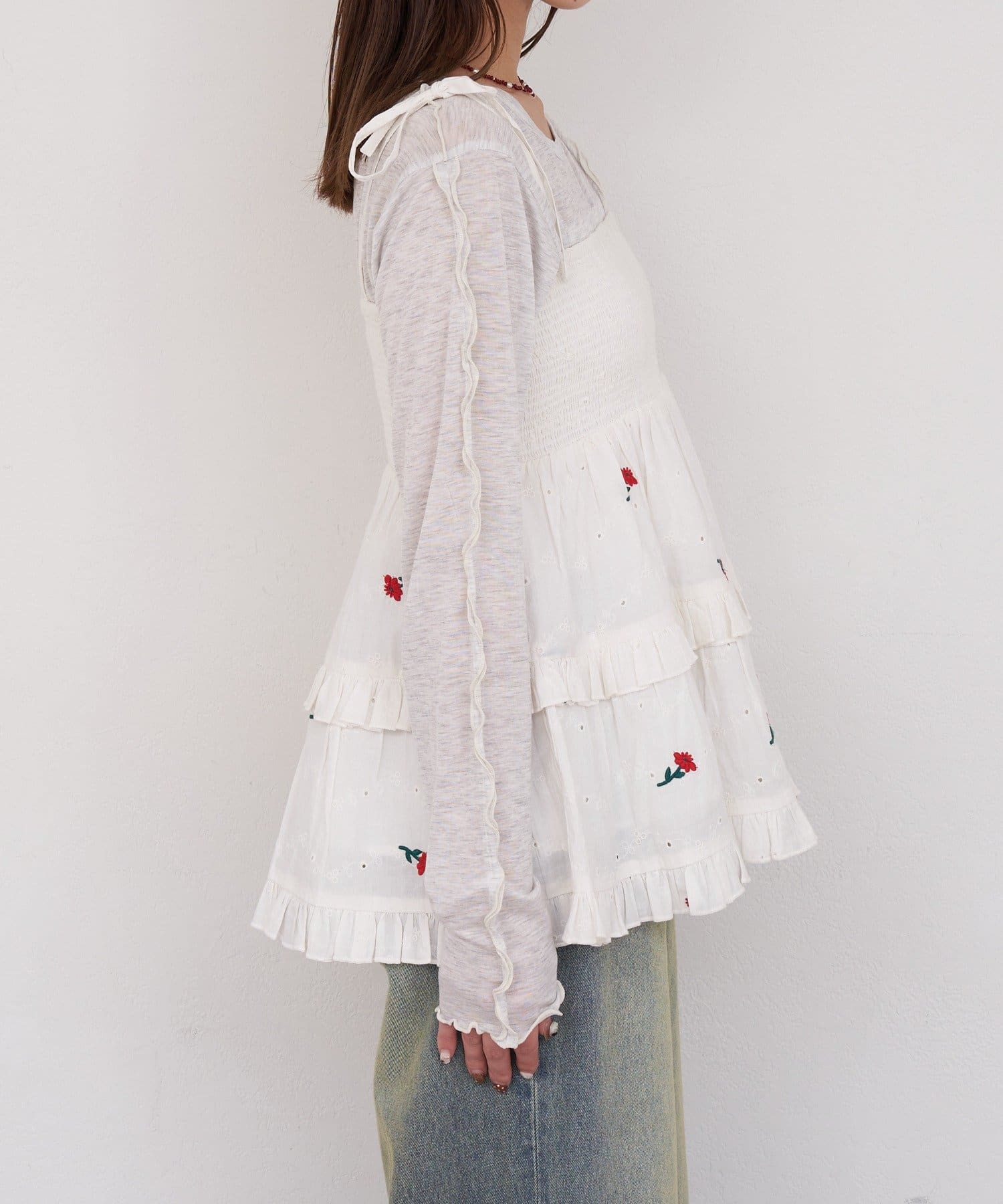 着方で遊べる2wayシャーリング刺繍ビスチェ