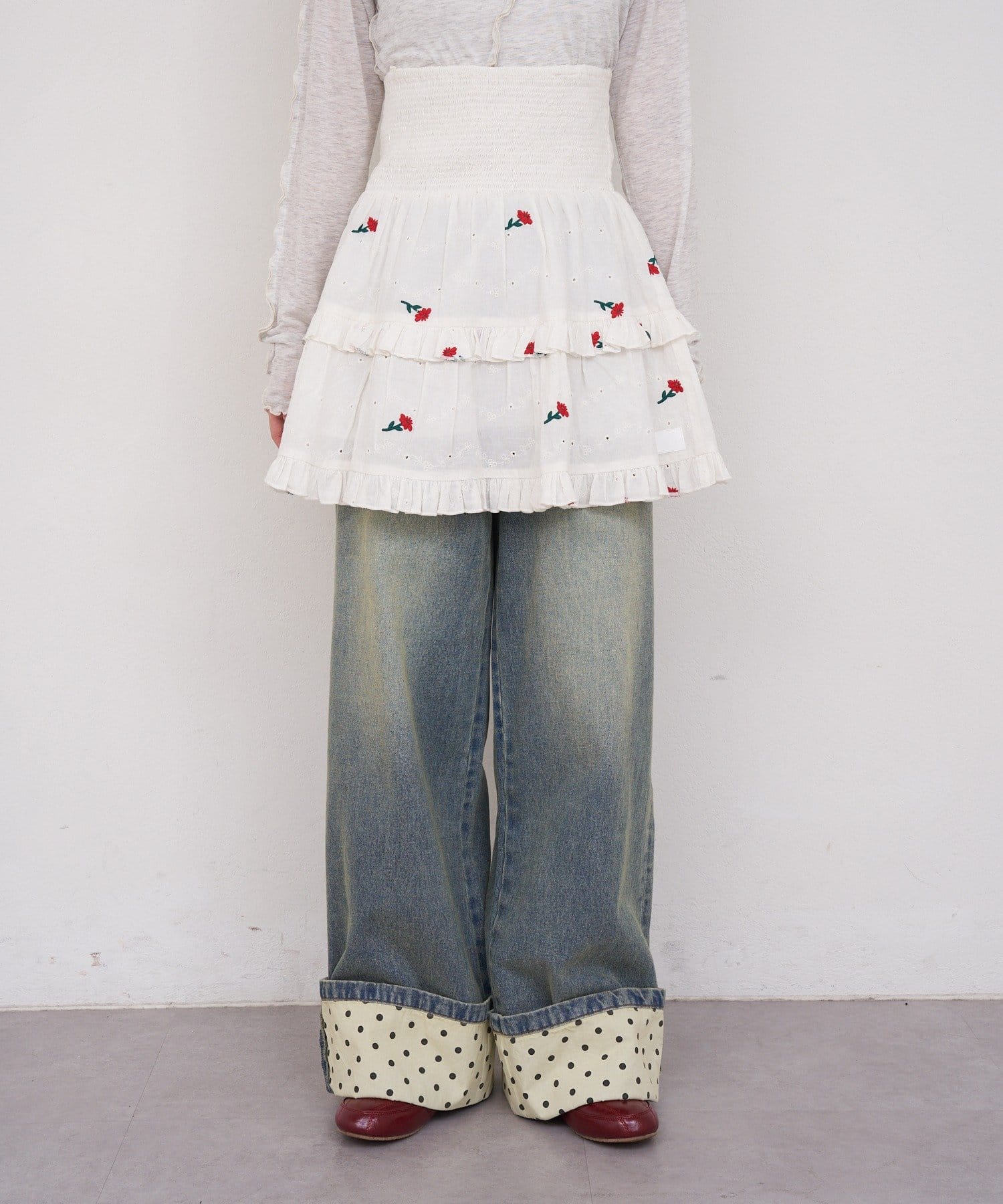 【She desires...】2WAYシャーリングティアード刺繍ビスチェ