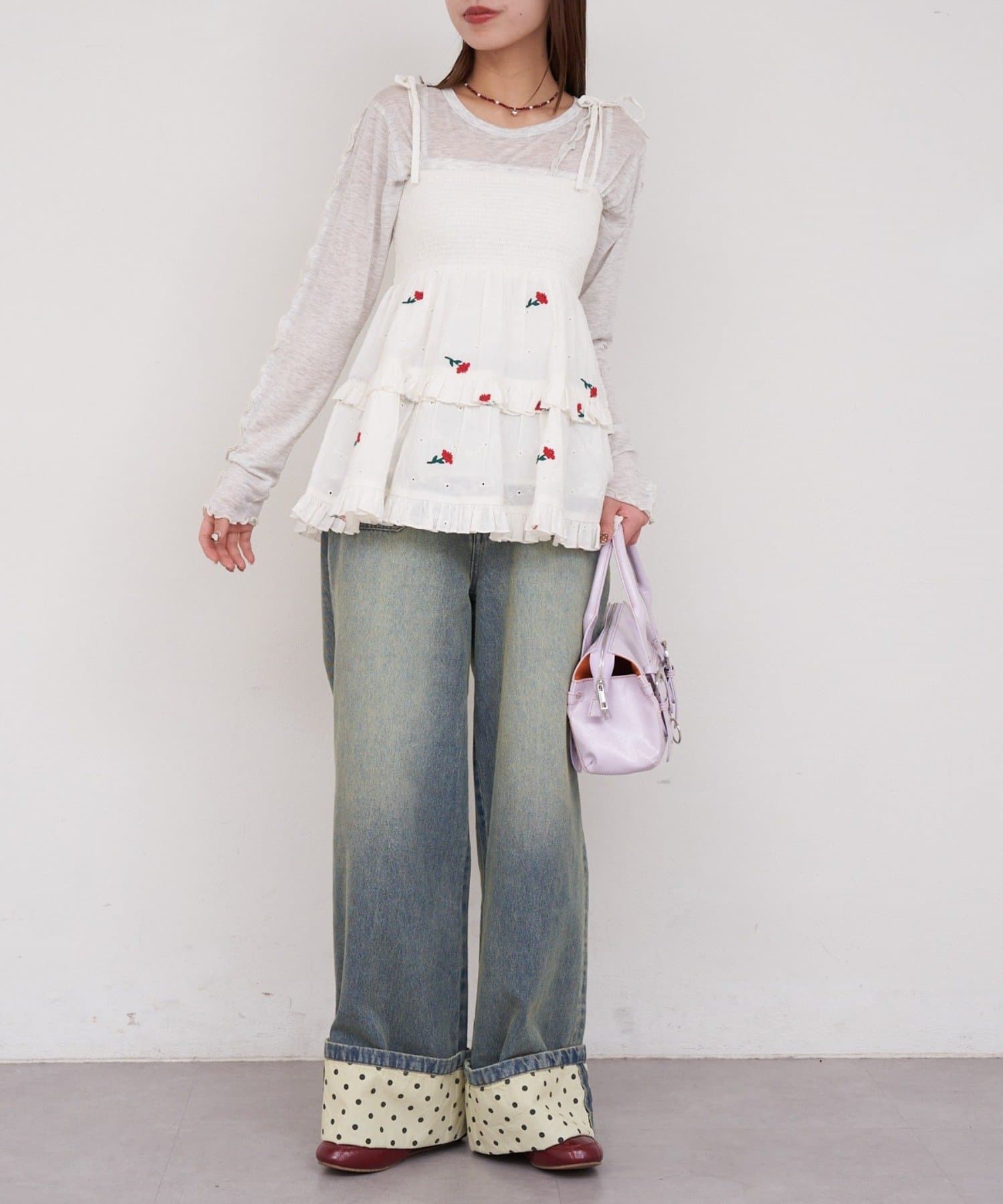 TOP > CIAOPANIC > レディース > トップス > キャミソール > 【She desires...】2WAYシャーリングティアード刺繍ビスチェ