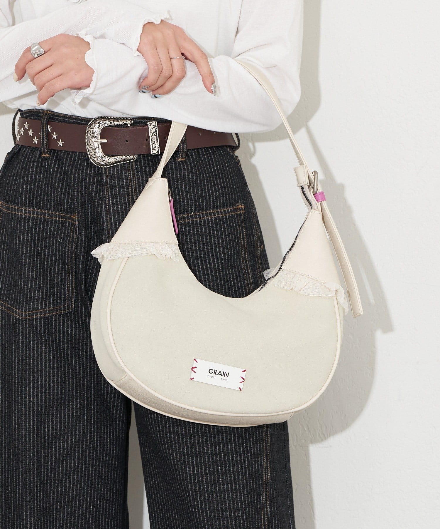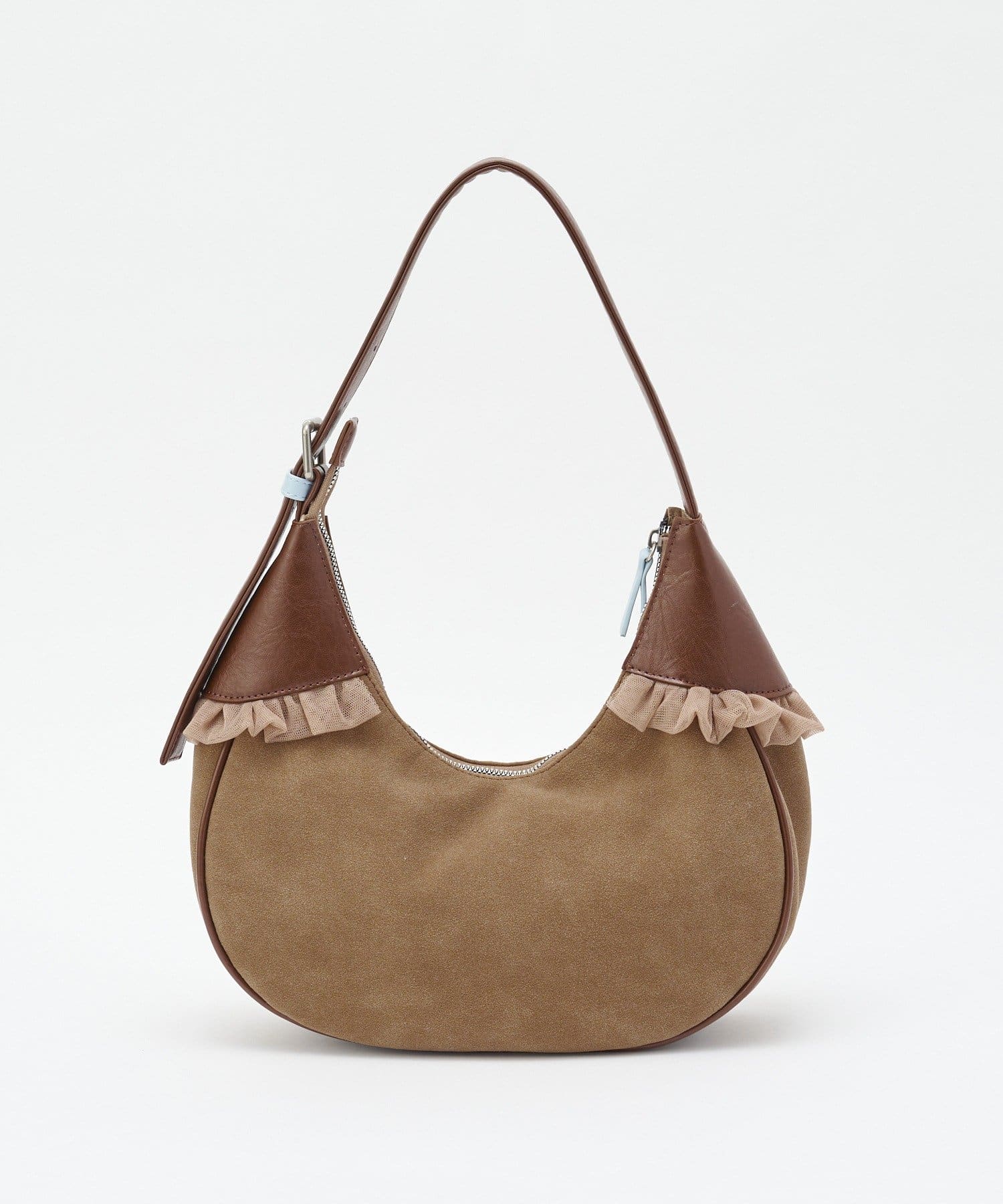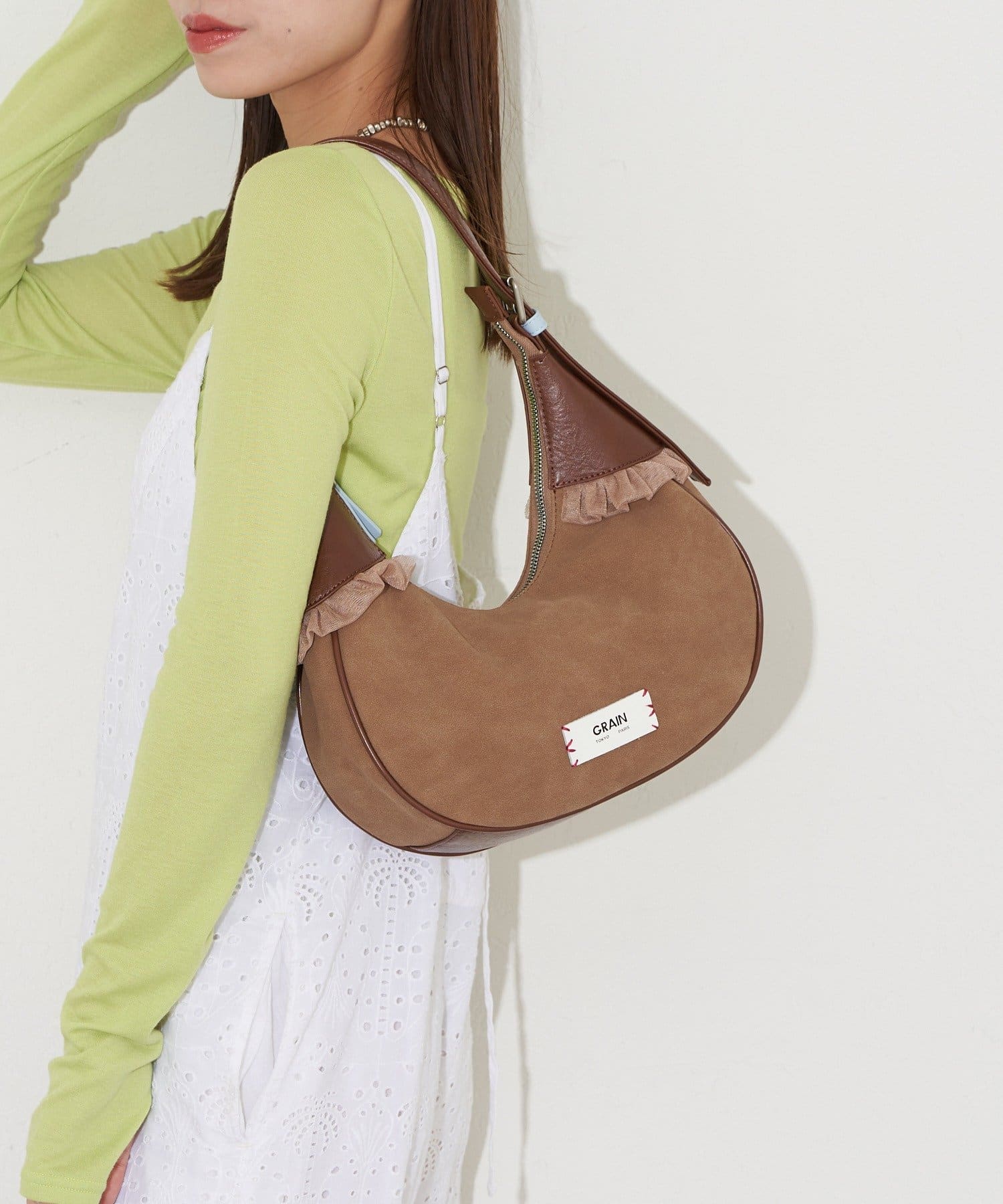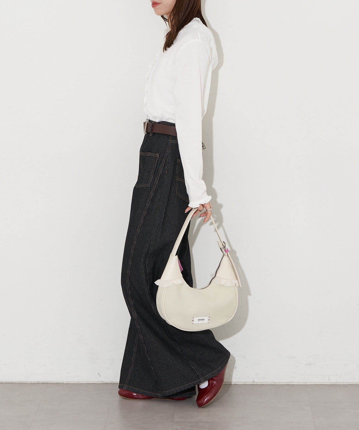 丸みのあるシルエットに、さりげないフリルディテールを効かせたバッグ。