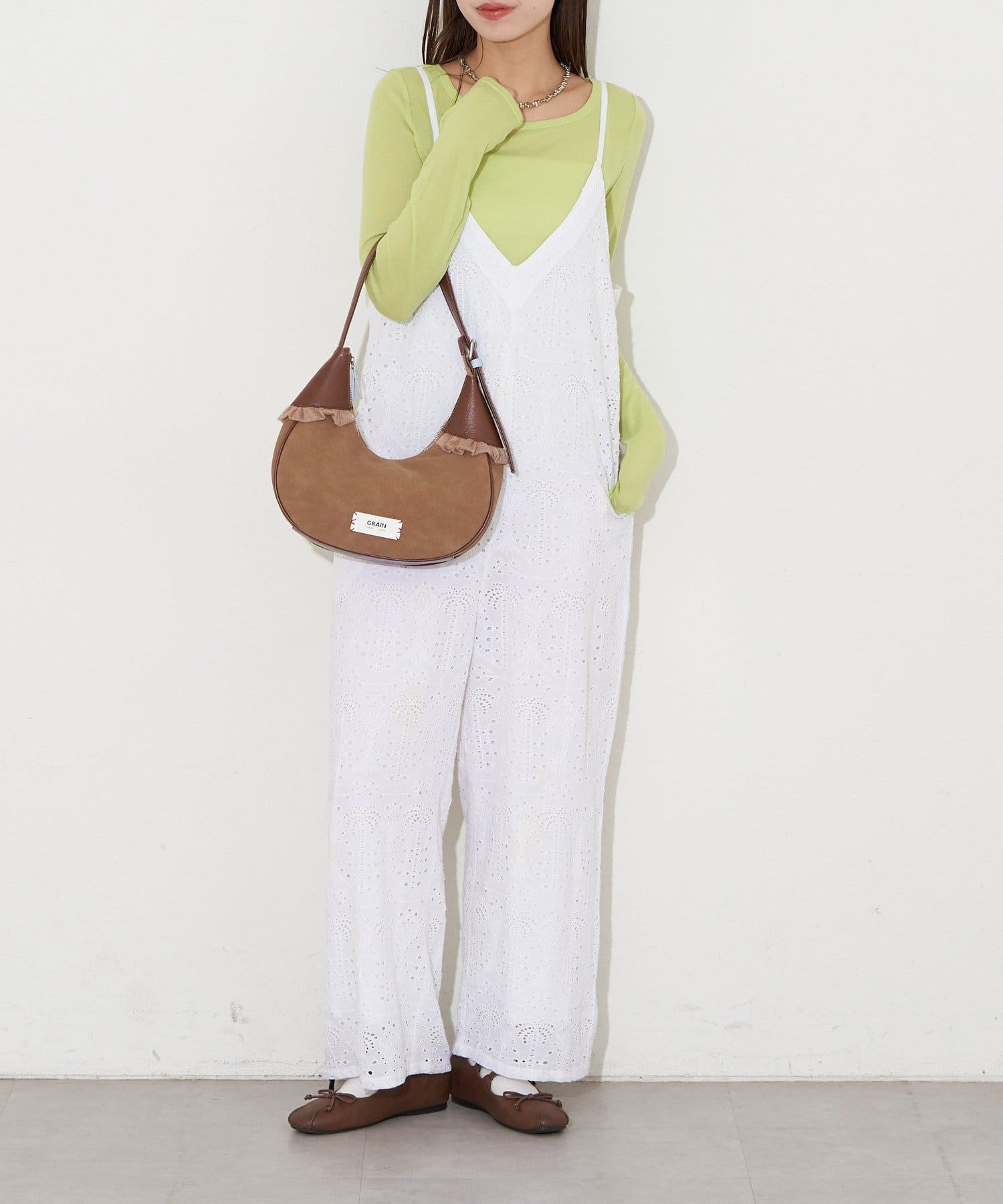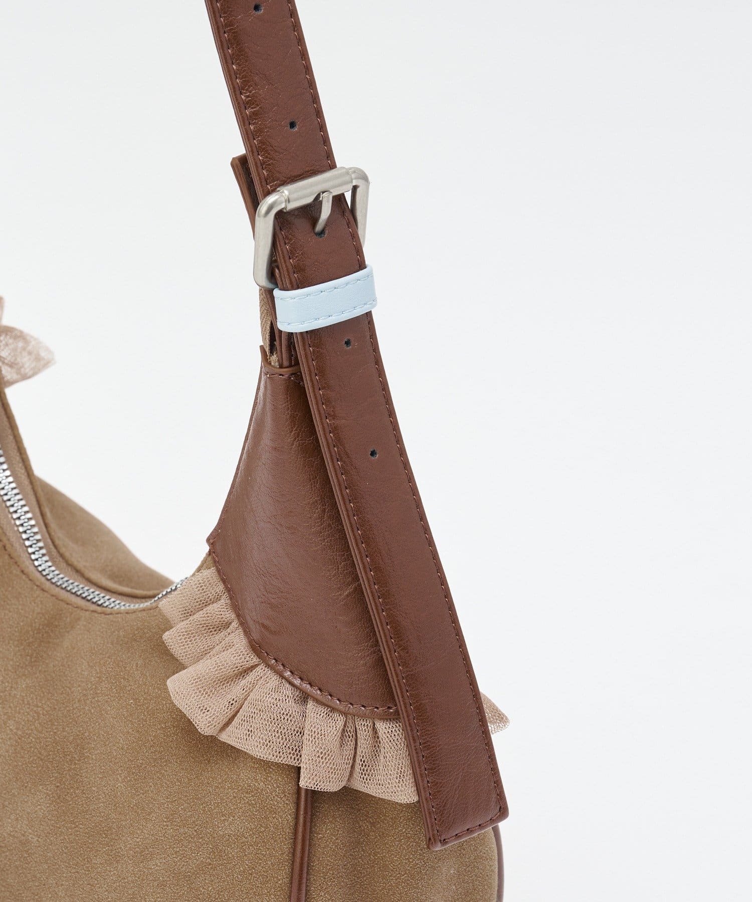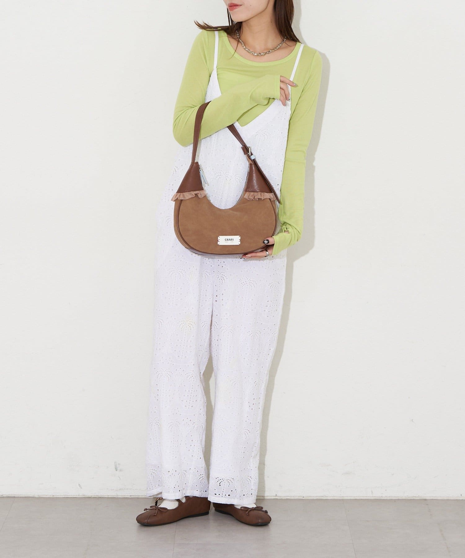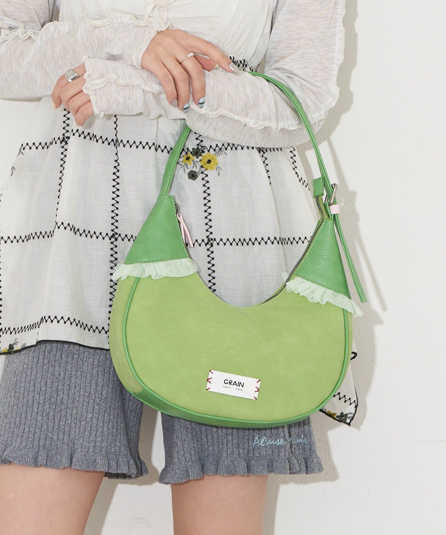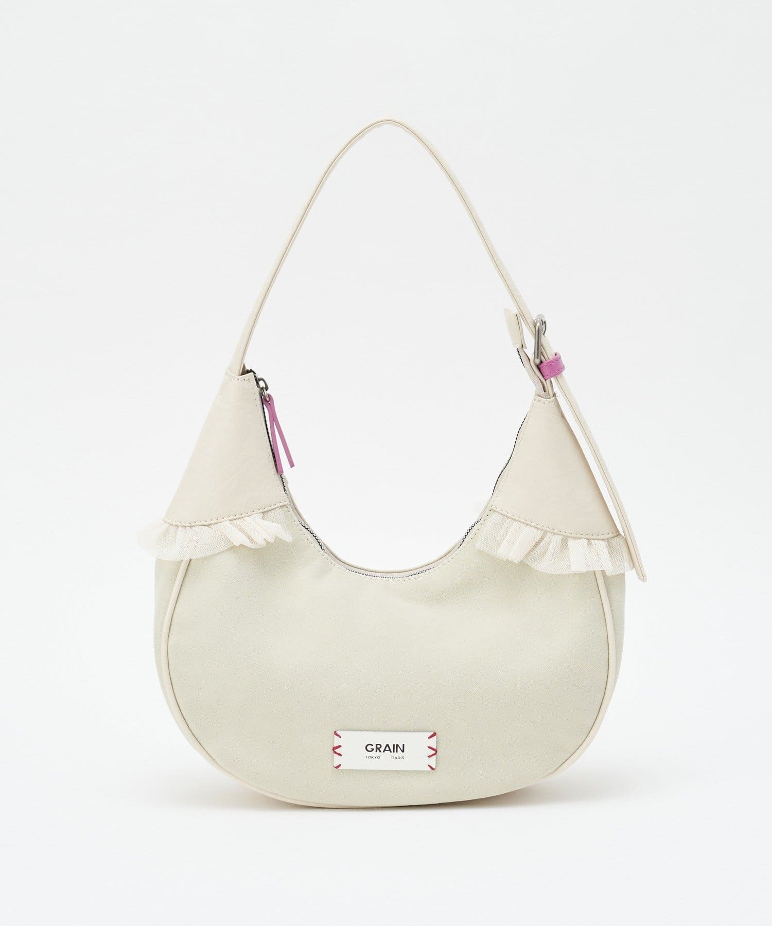 丸みのあるシルエットに、さりげないフリルディテールを効かせたバッグ。