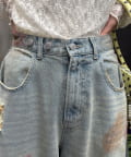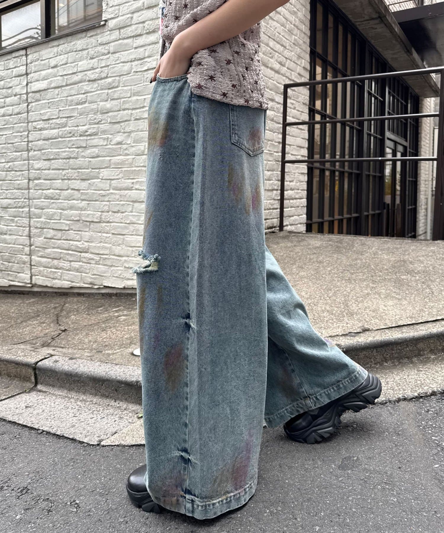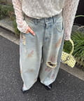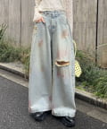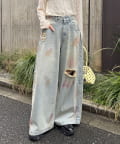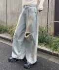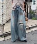 スプレー加工ダメージワイドデニムパンツ