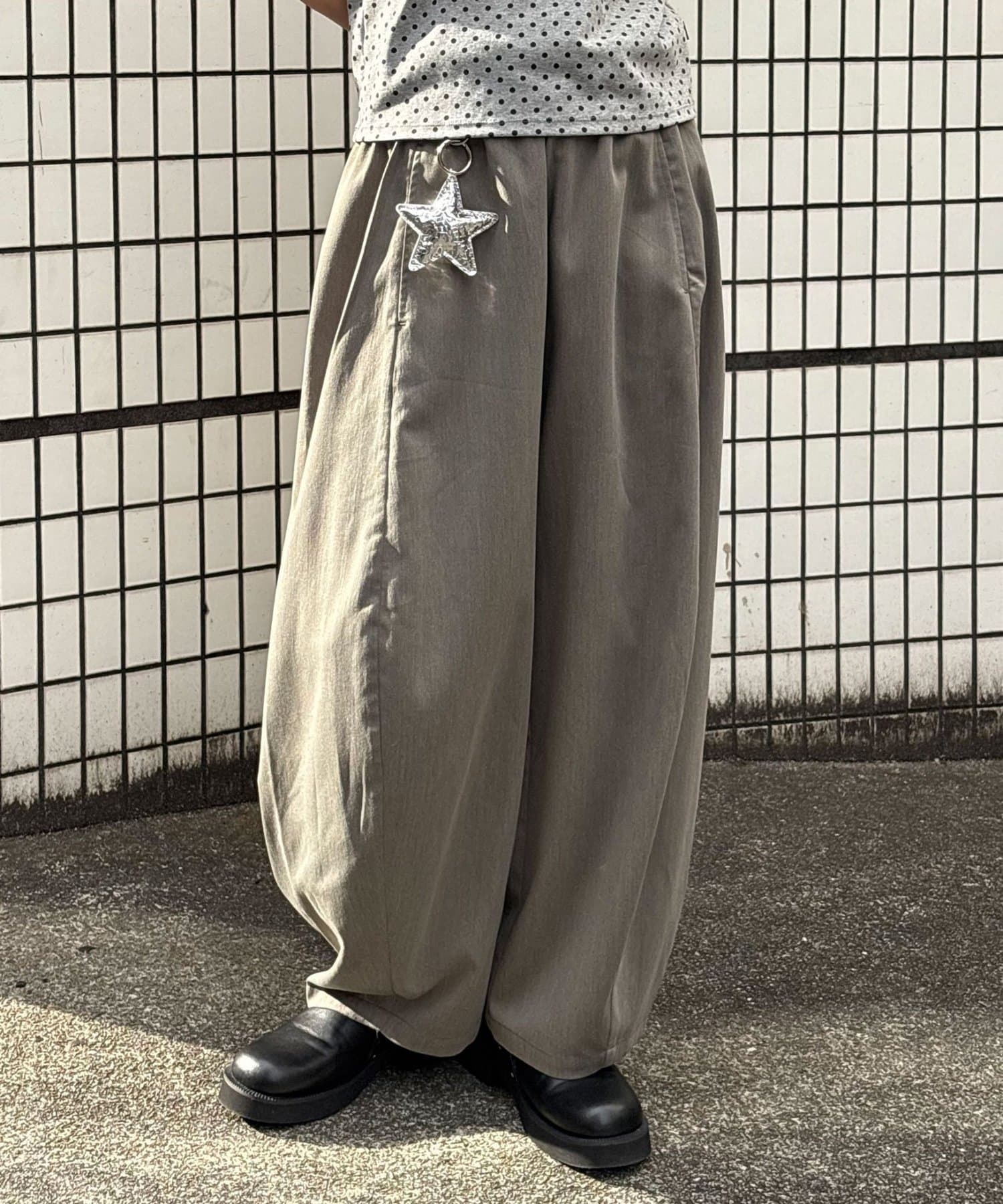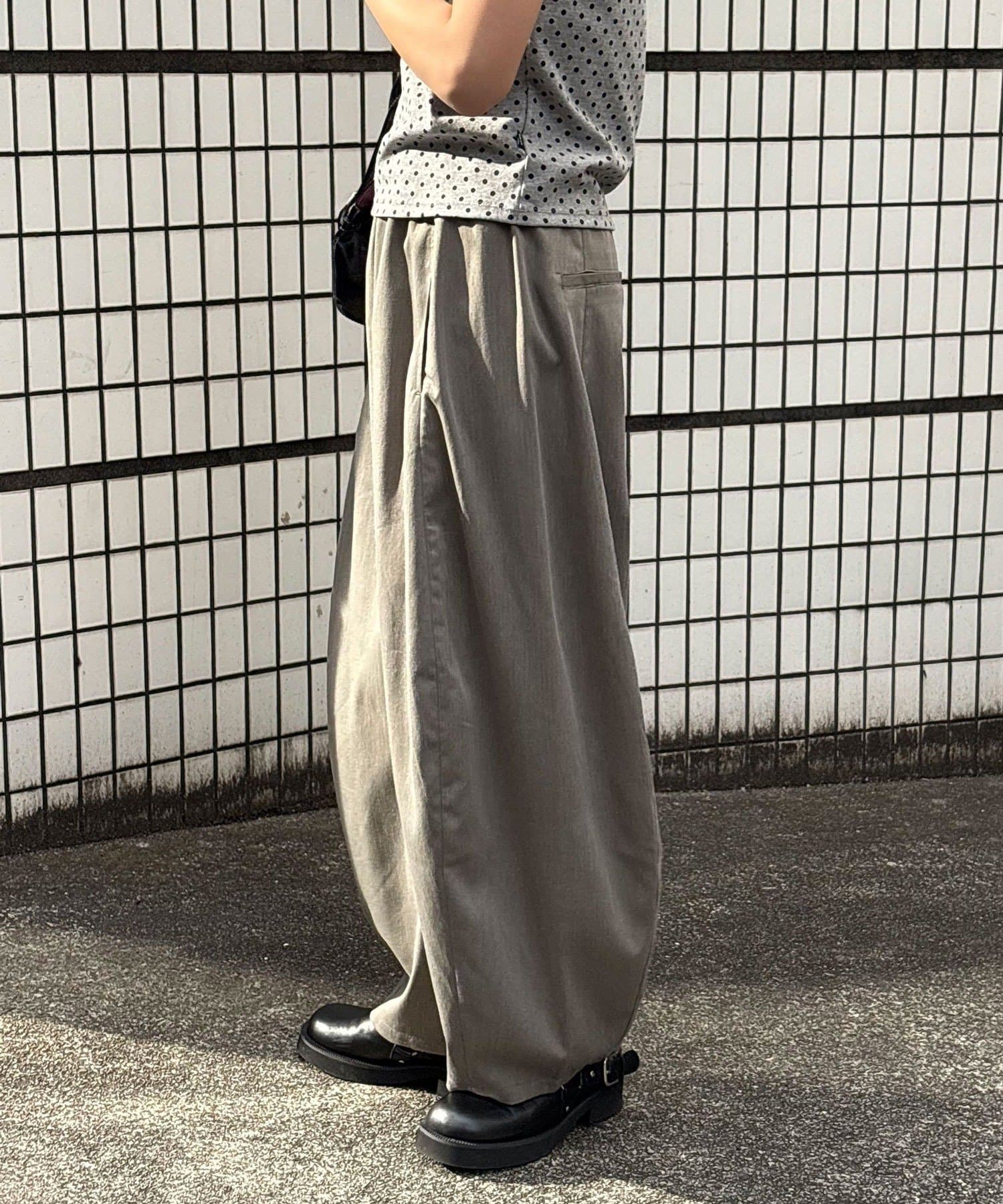 丸みのあるリラックスしたシルエットが目を惹くバルーンスラックス。