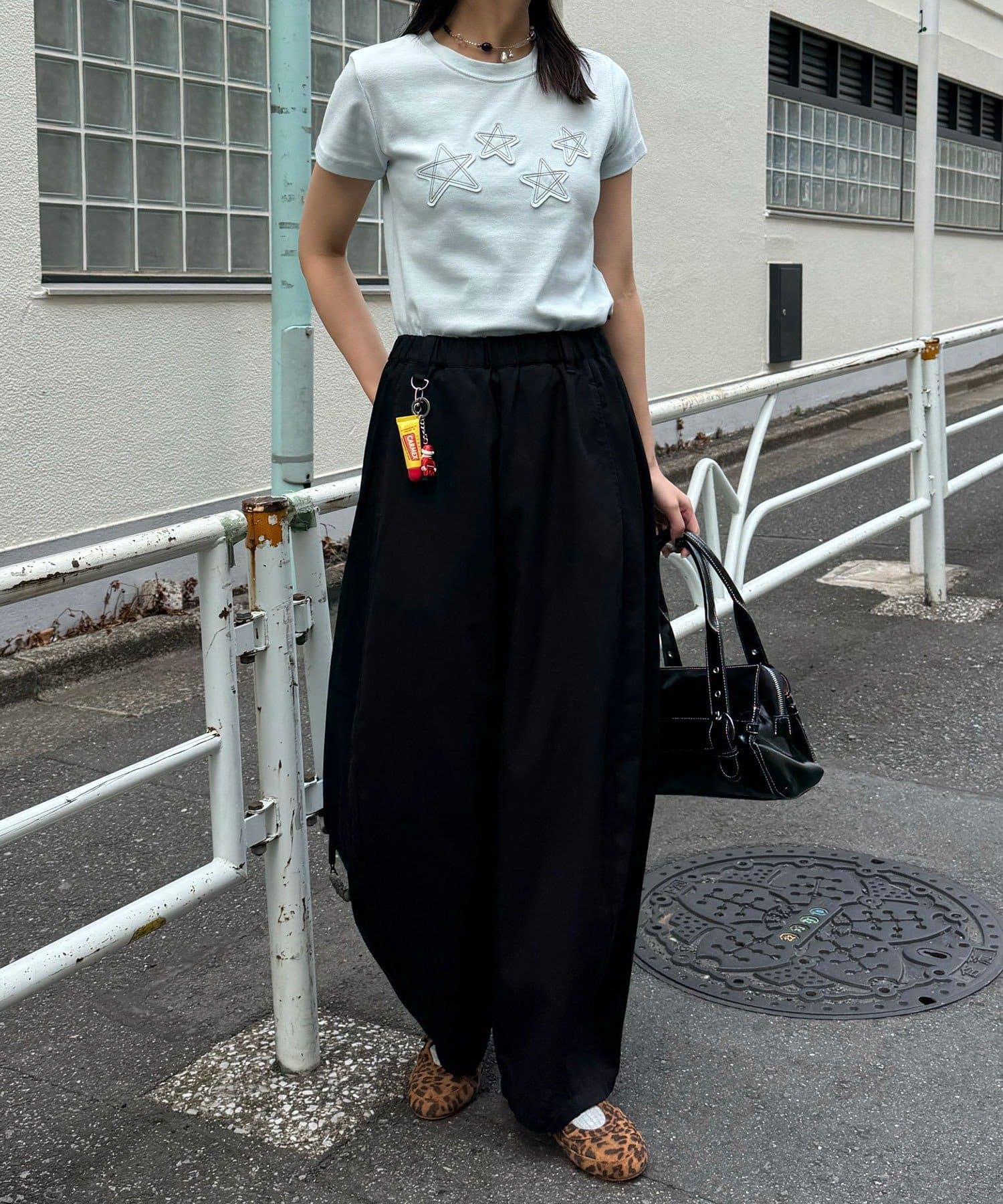 コンパクトなトップスをインして、バルーンシルエットのボリューム感を際立たせるのがおすすめ。