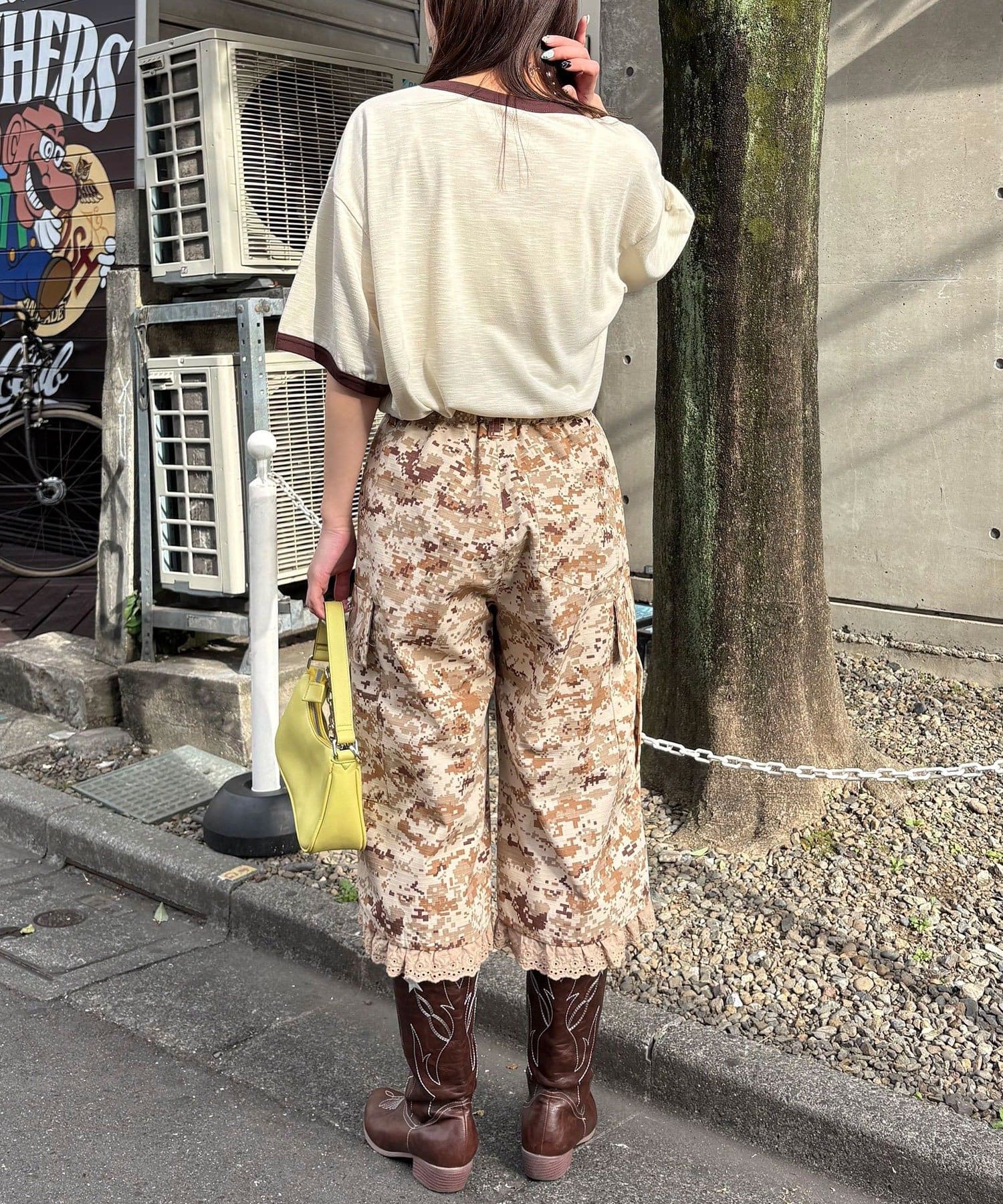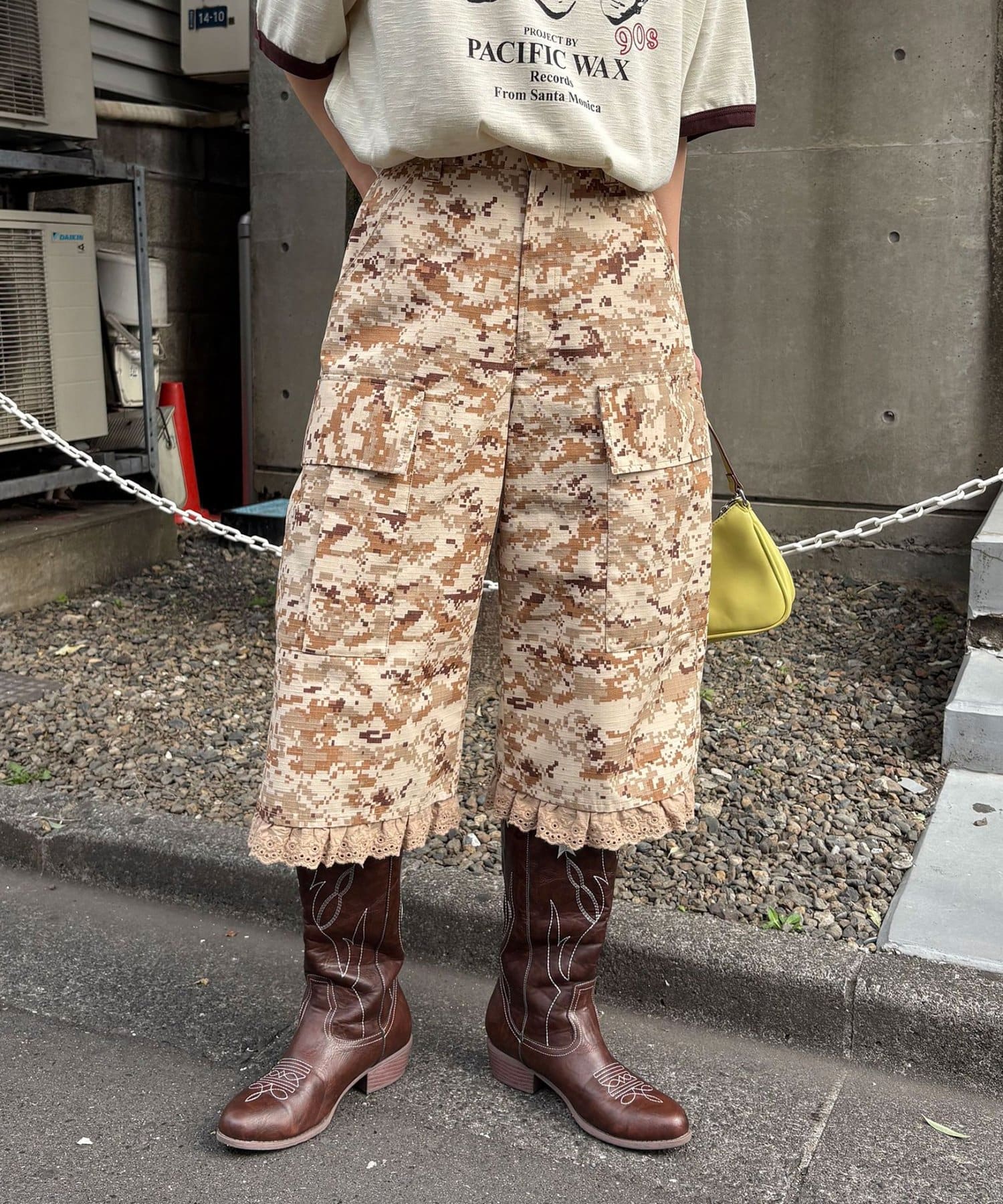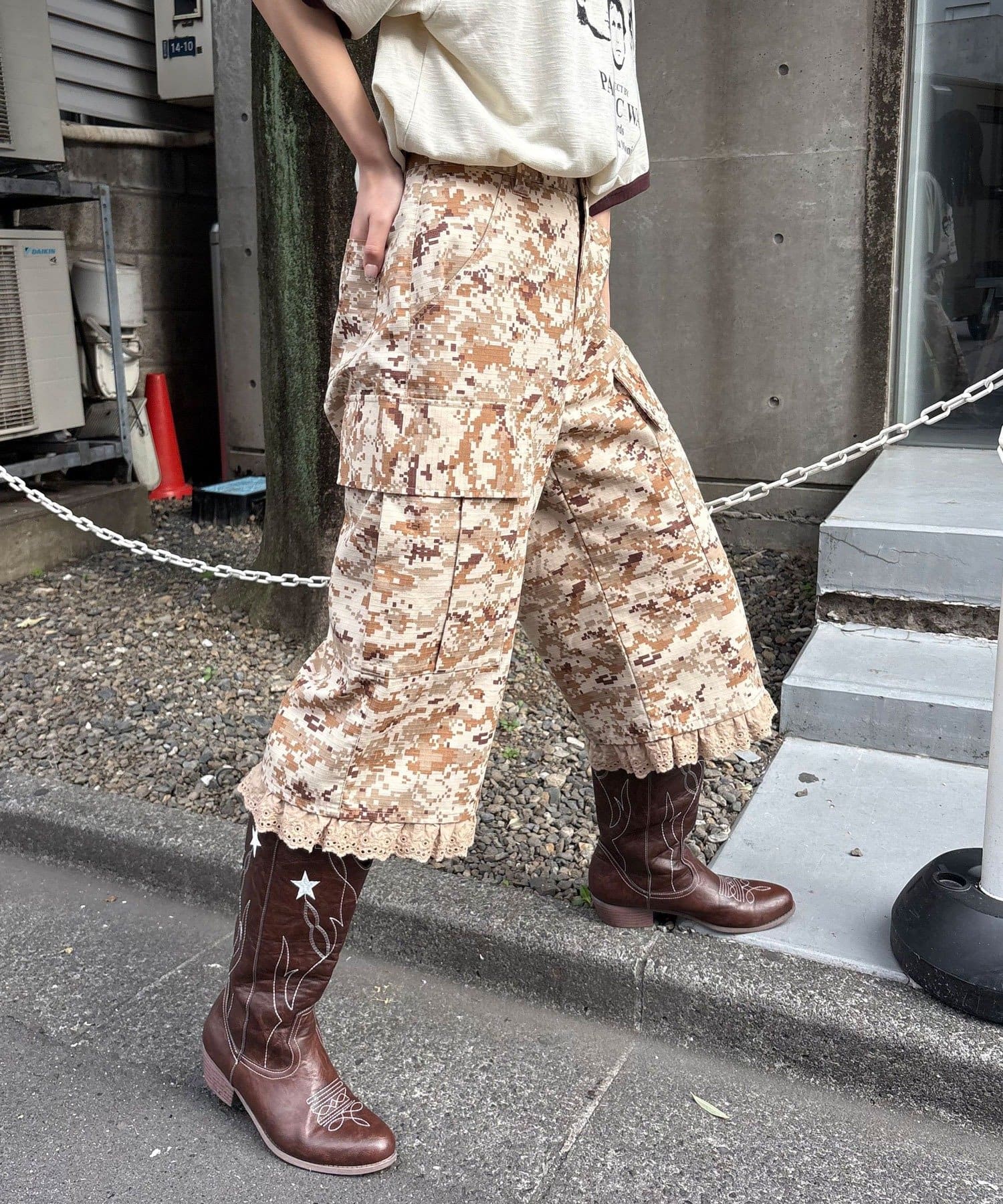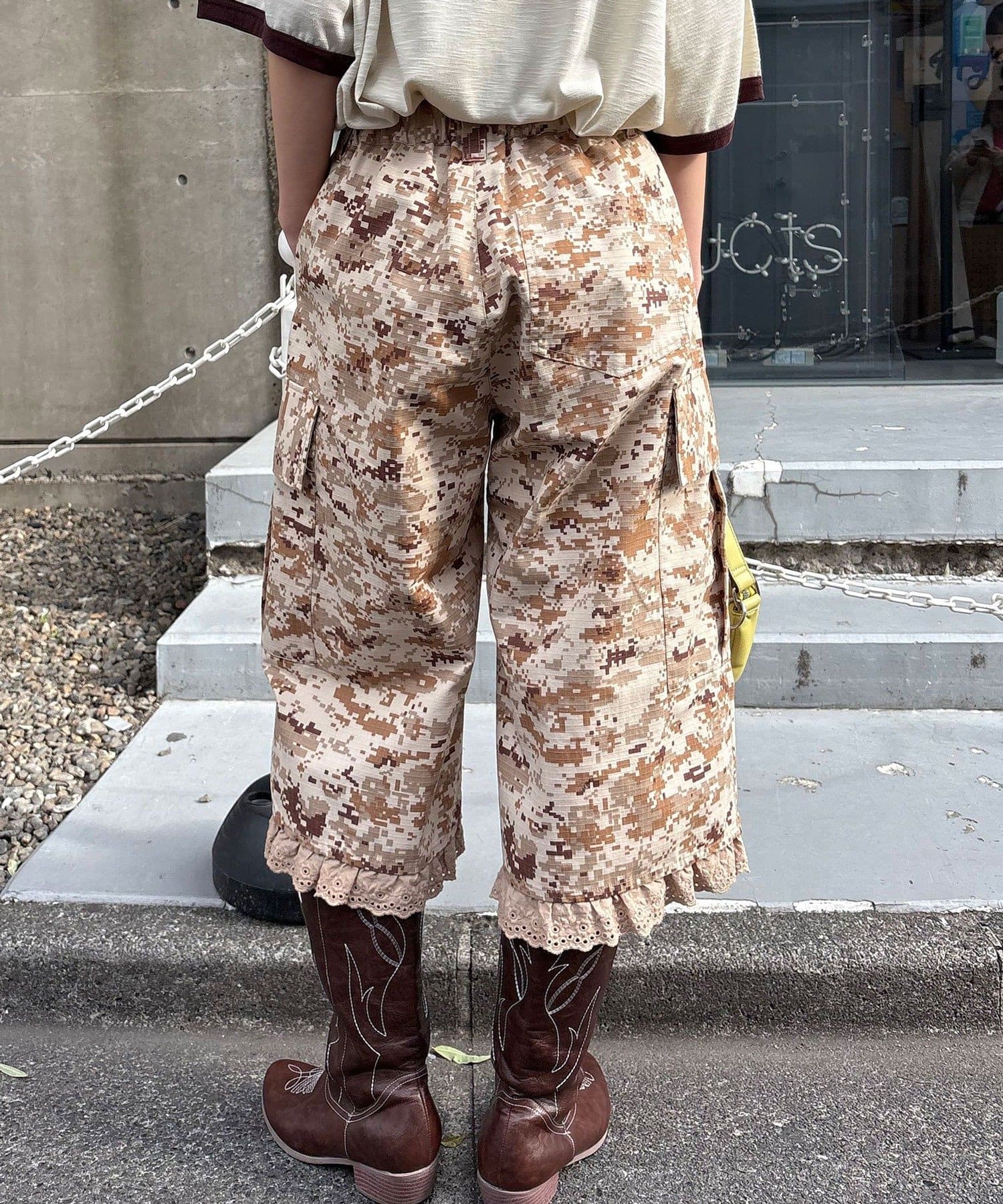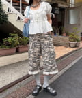 裾フリルが映えるデジカモカーゴパンツ