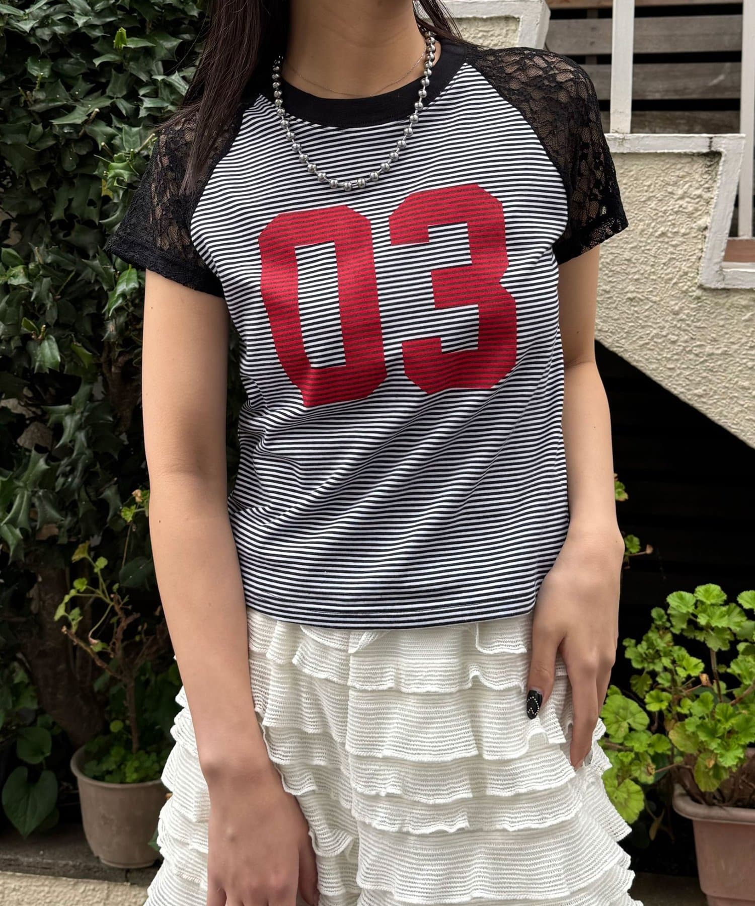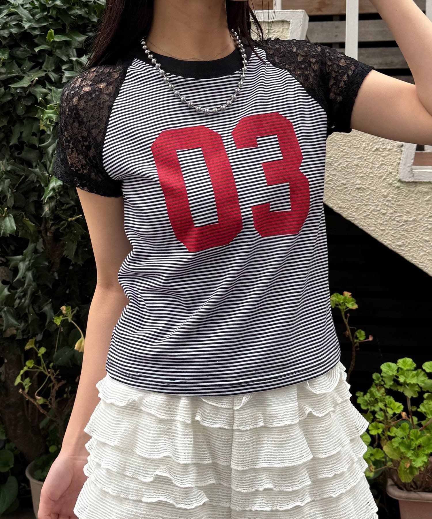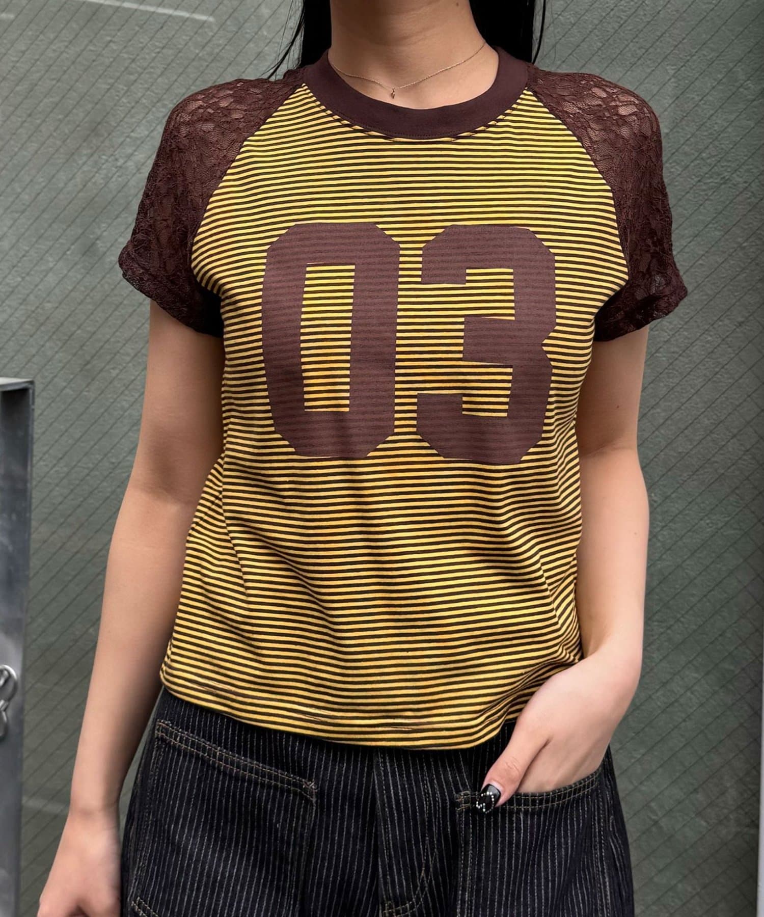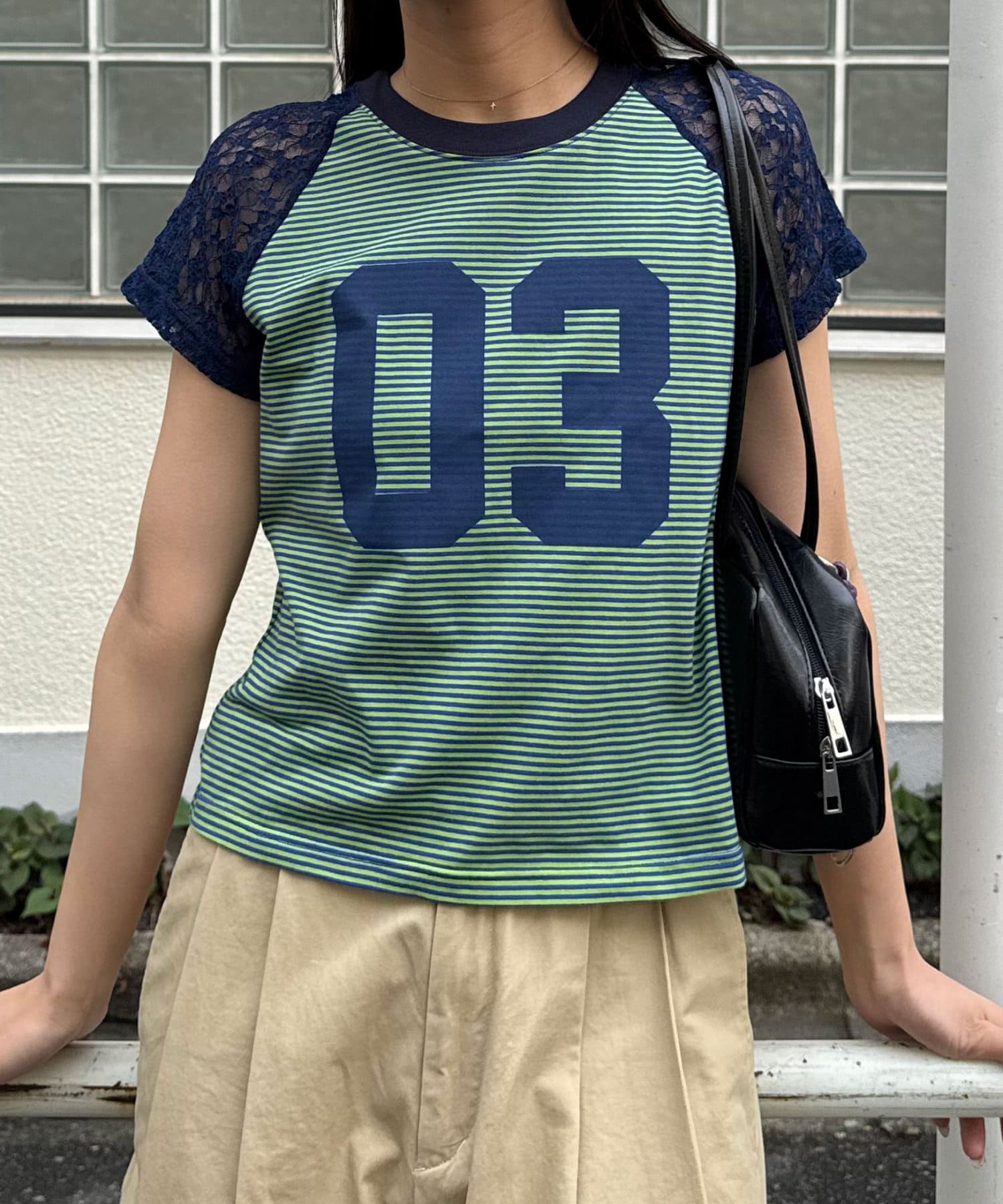 袖レースナンバリングボーダーラグランTee