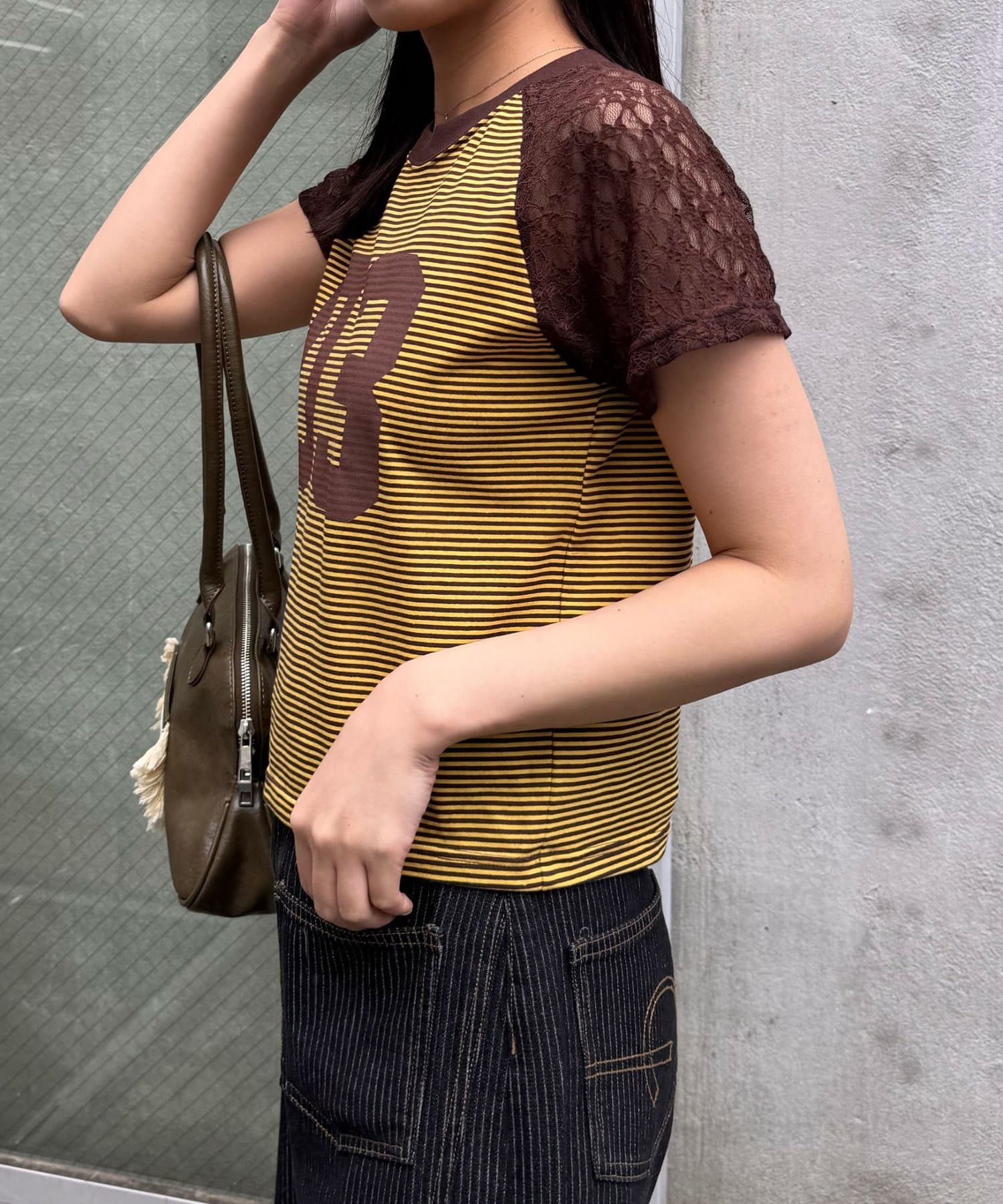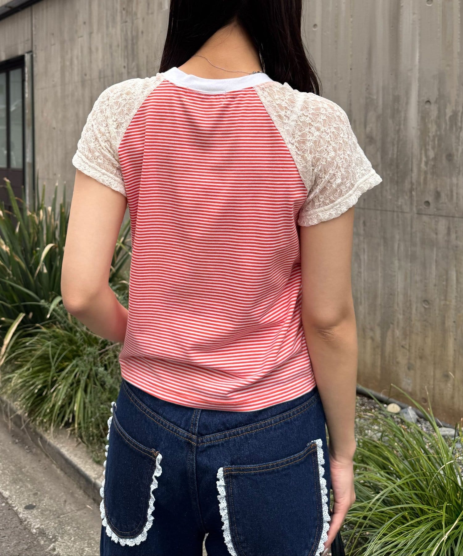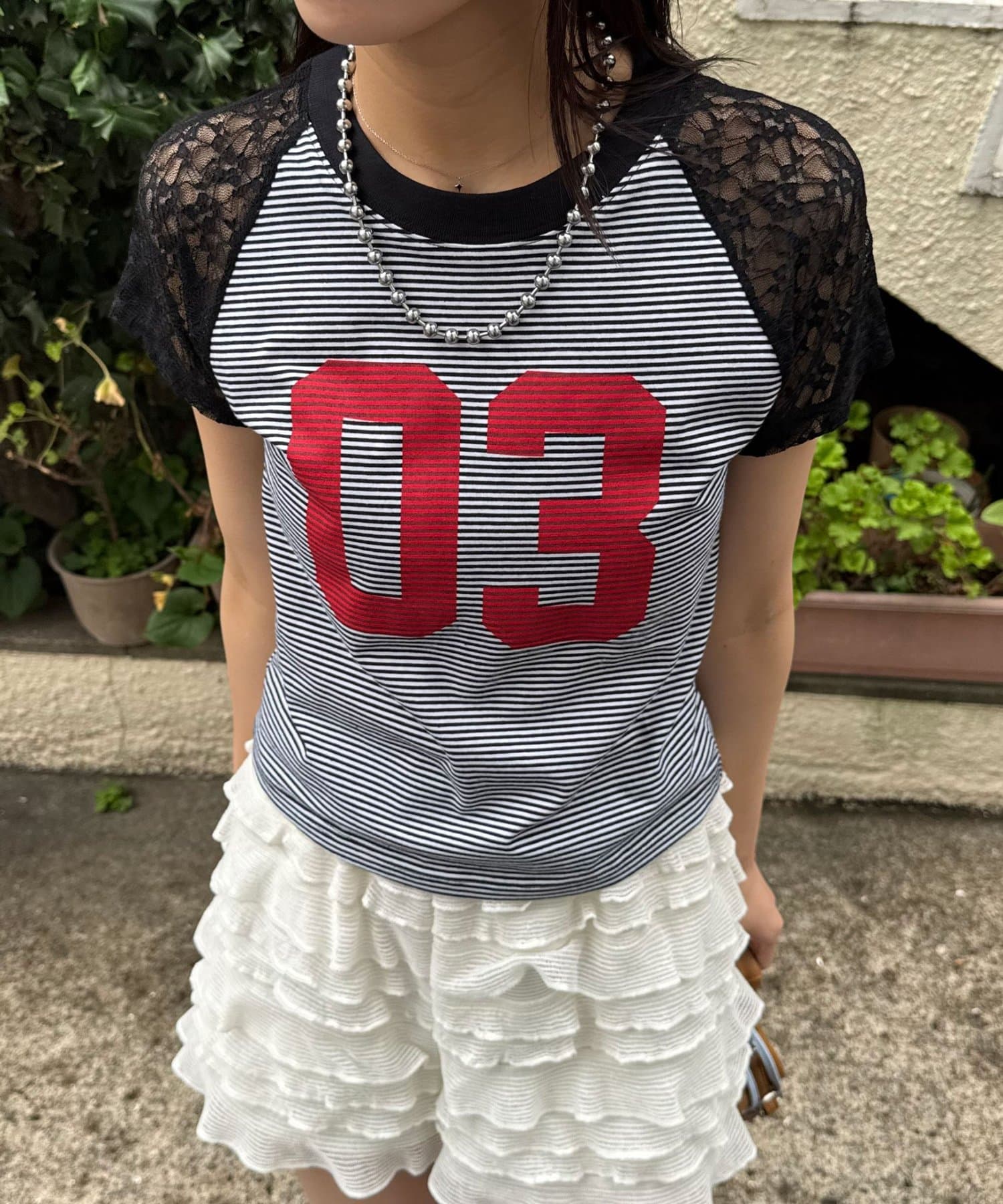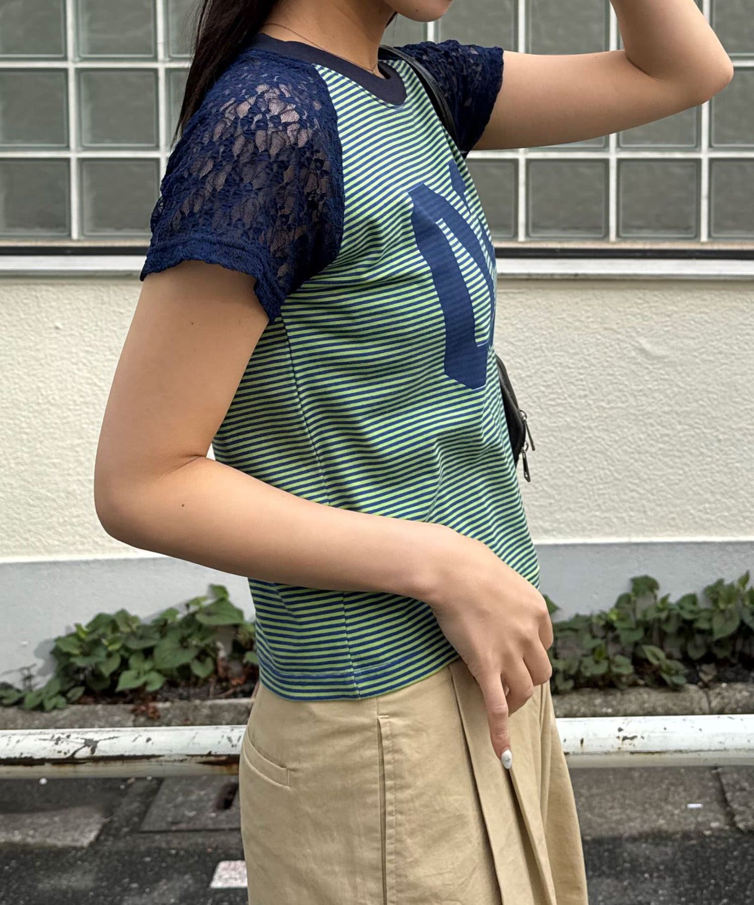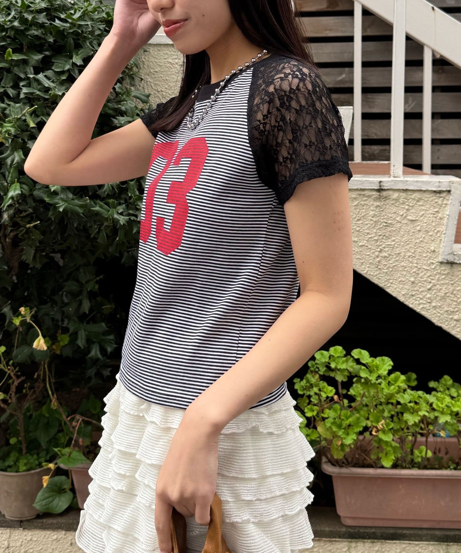 袖レースナンバリングボーダーラグランTee
