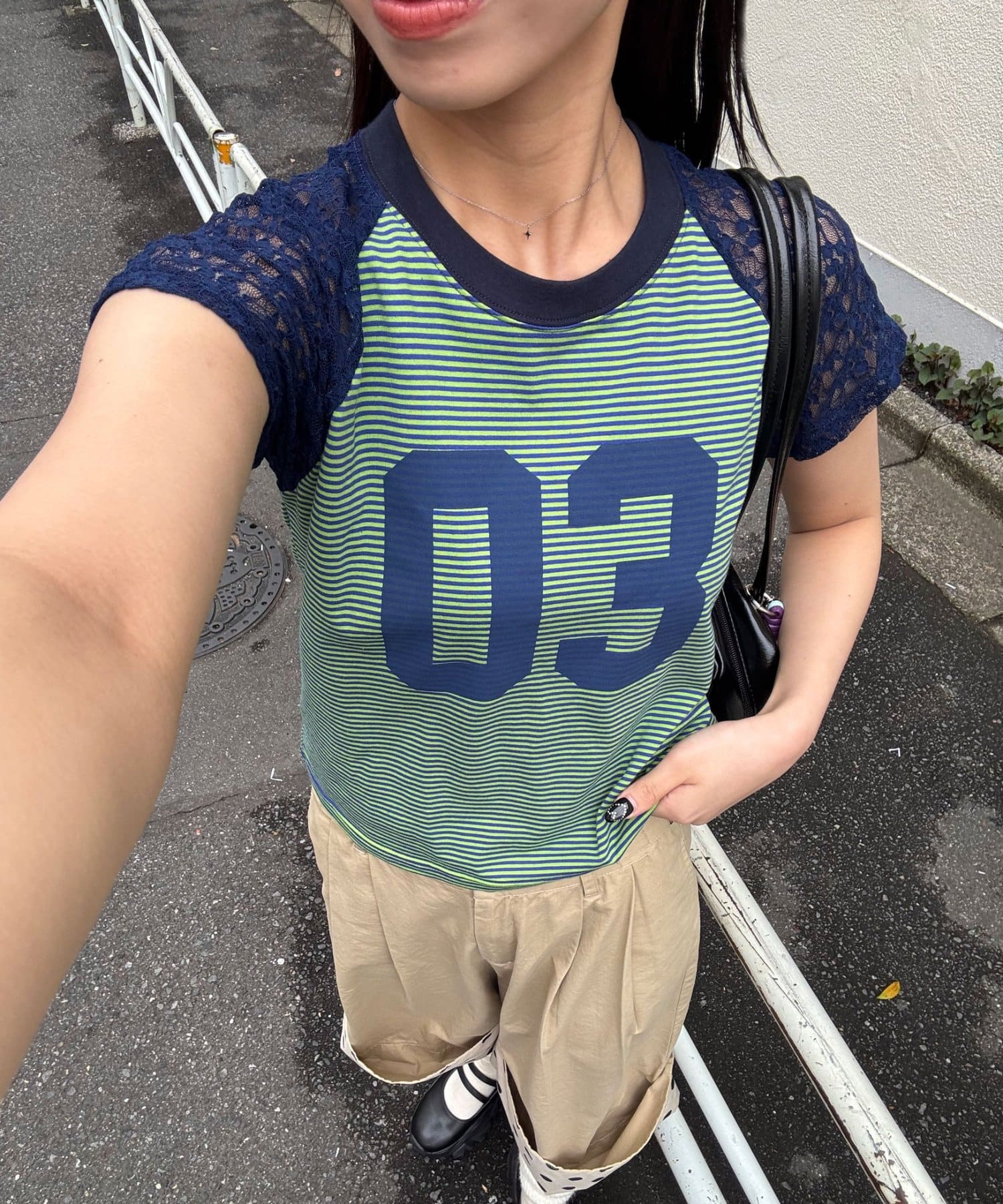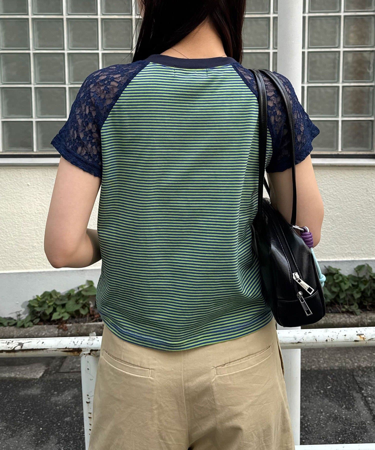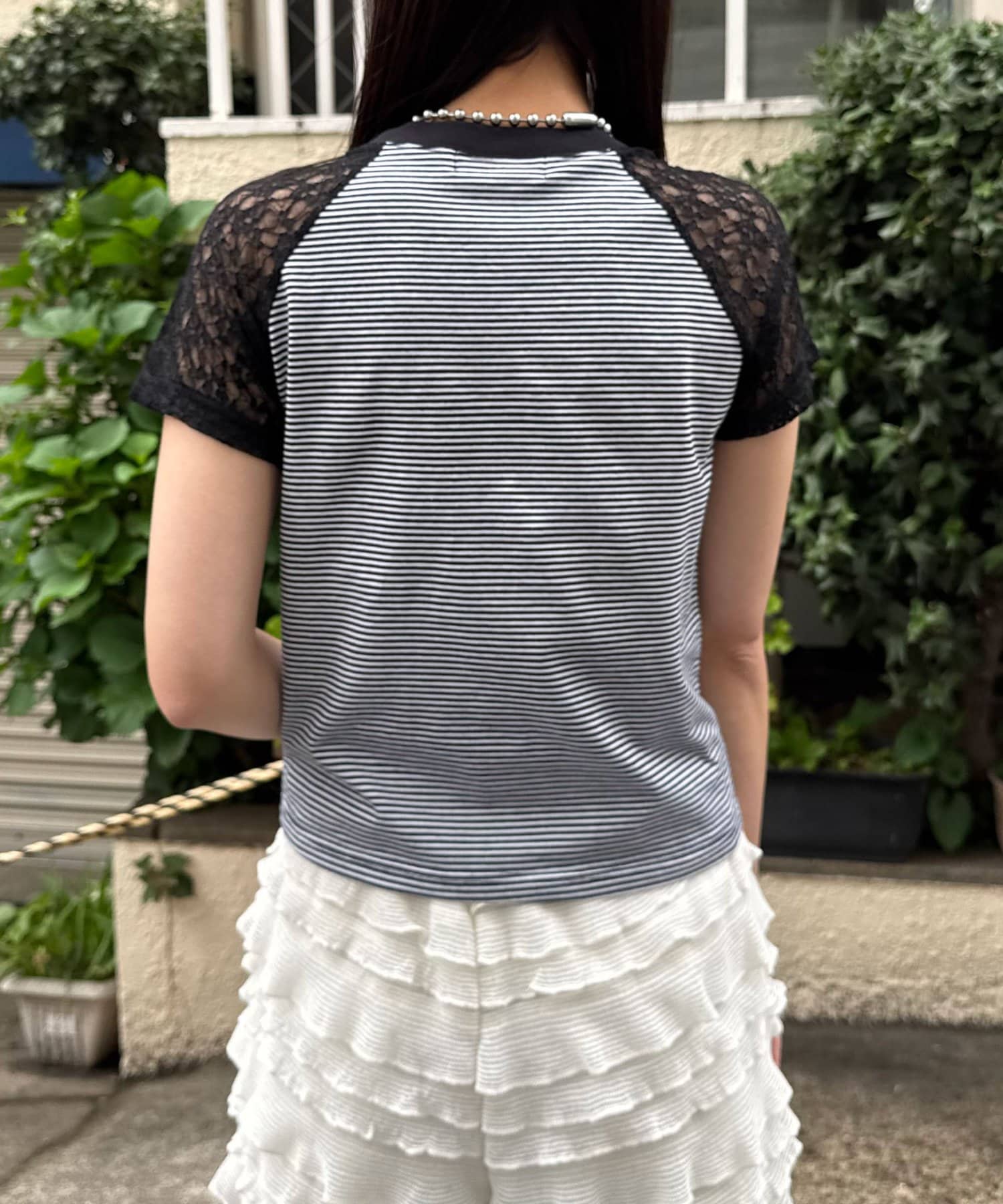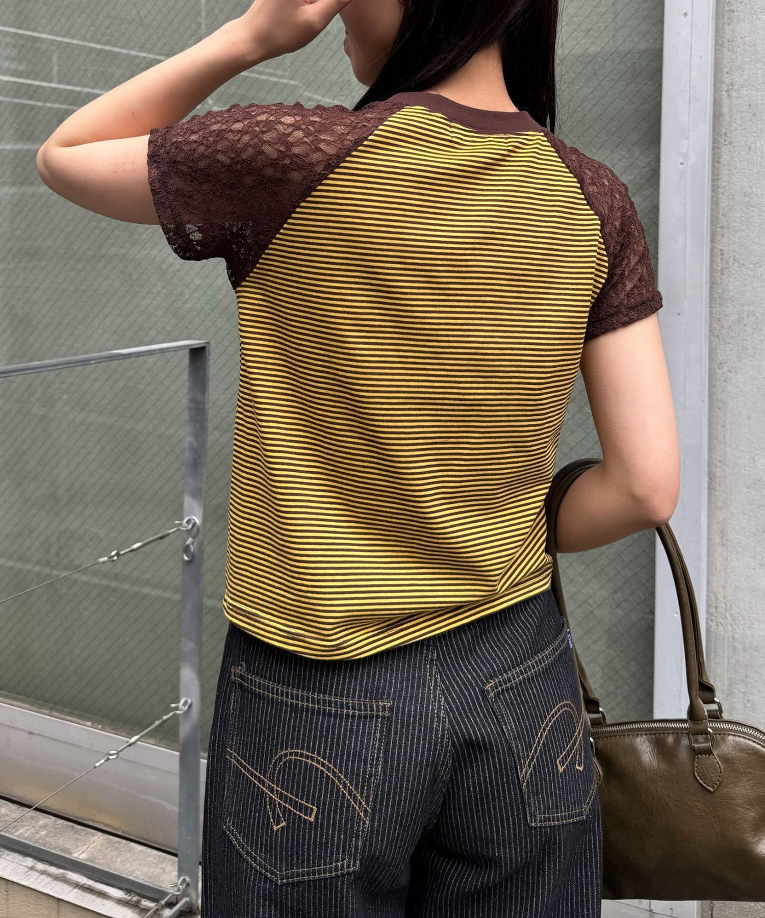 袖レースナンバリングボーダーラグランTee