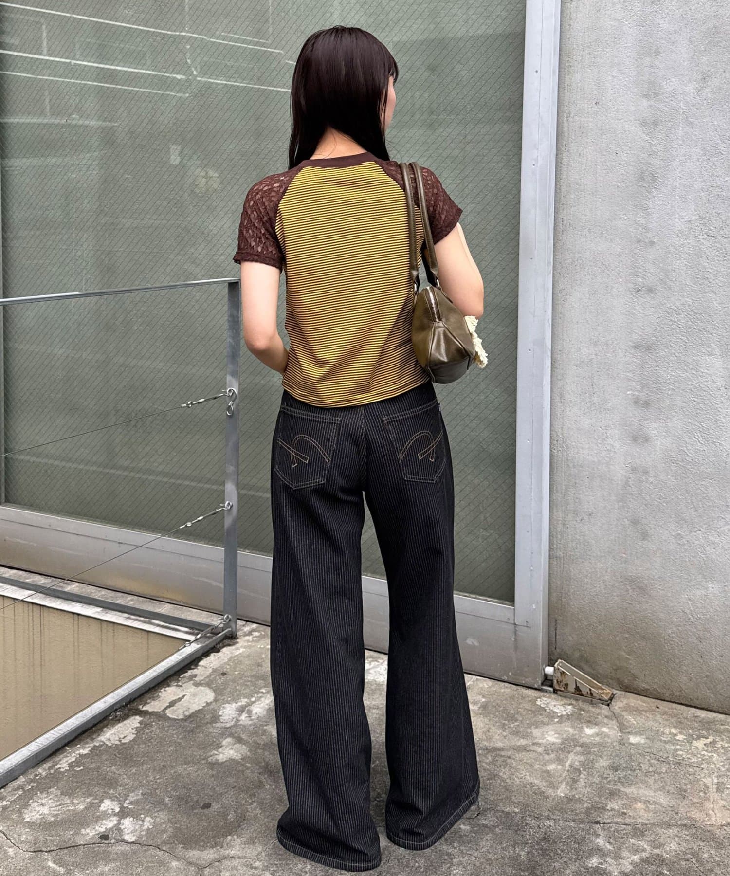 細めのボーダー柄と、程よく体にフィットするコンパクトなサイズ感が、ヘルシーで今っぽいシルエットを作ってくれます。