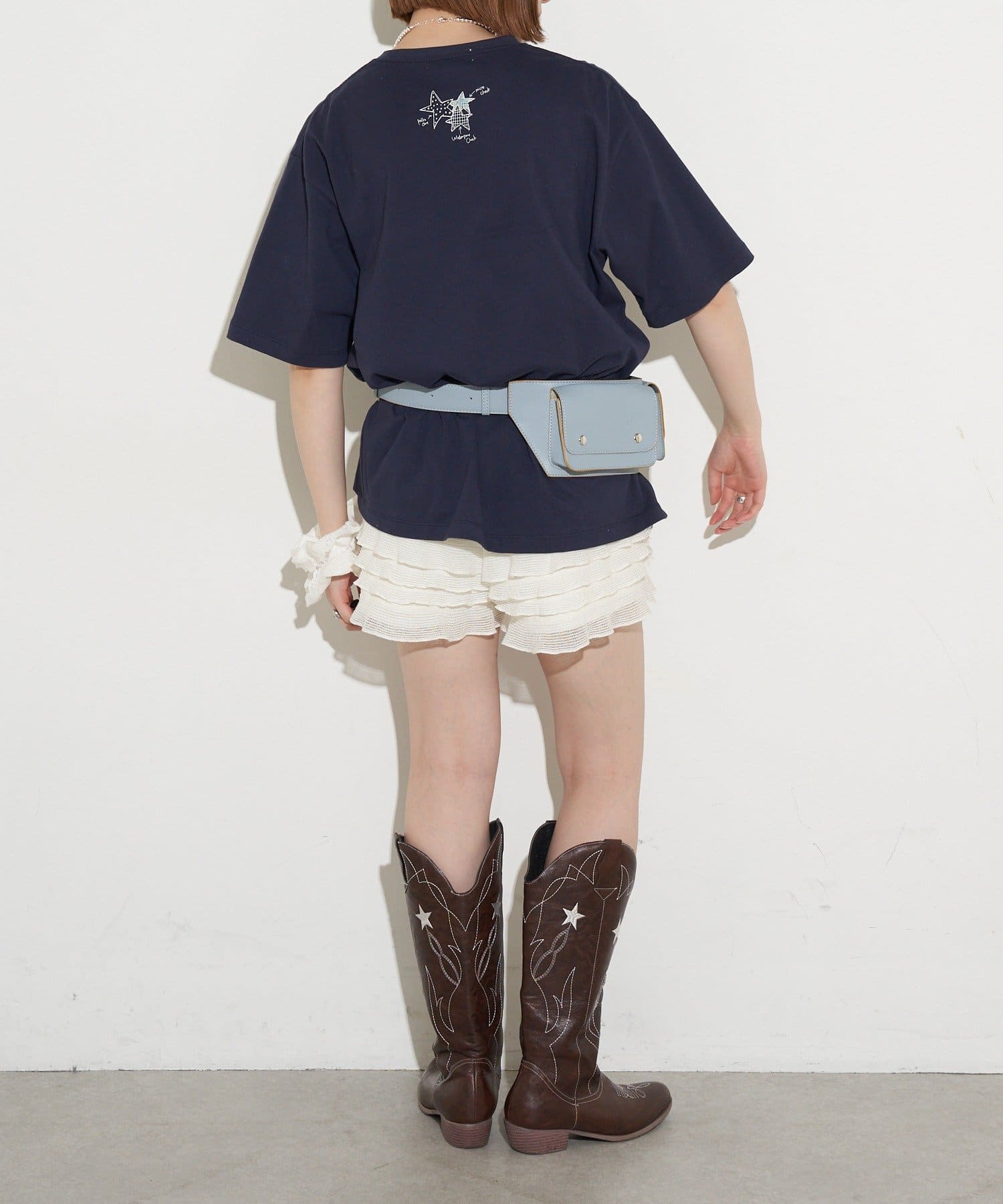 シンプルなTシャツやワンピースのウエストマークに使えば、メリハリが出て一気に旬なレイヤードスタイルに。