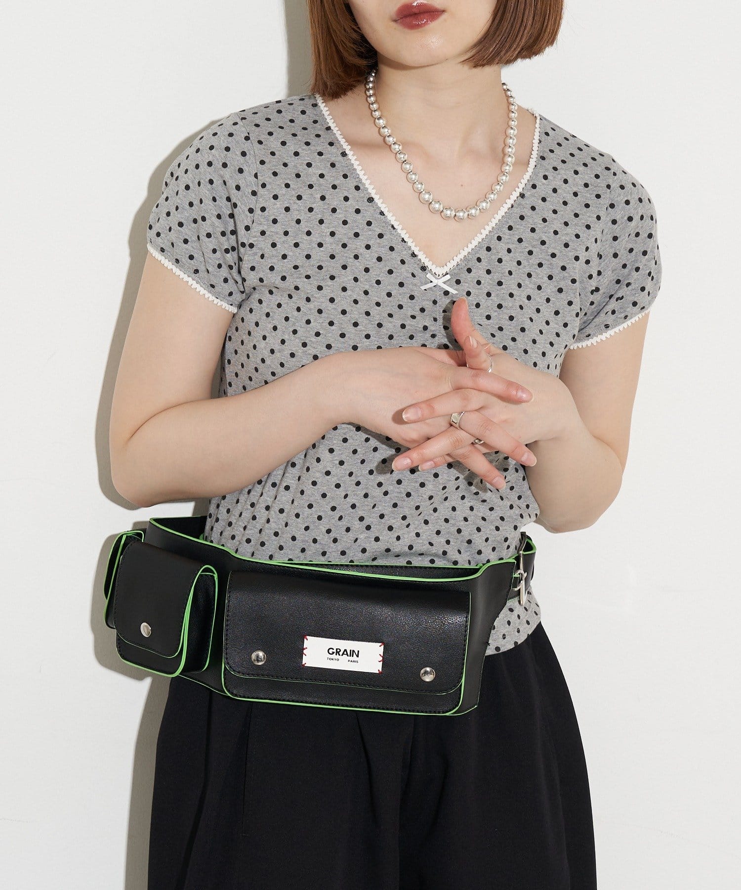 真ん中のポーチは取り外しができ、ベルトは単体でも使えるため、その日の服に合わせて自在にアレンジが可能。