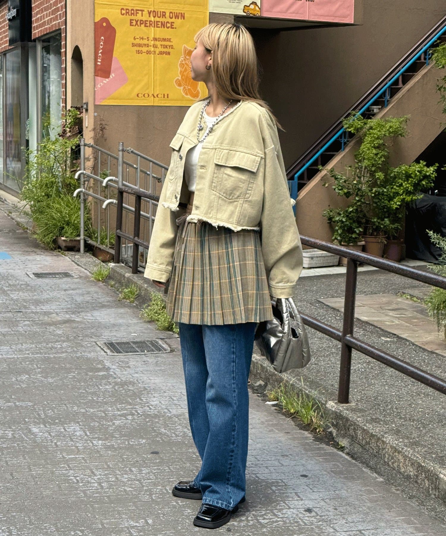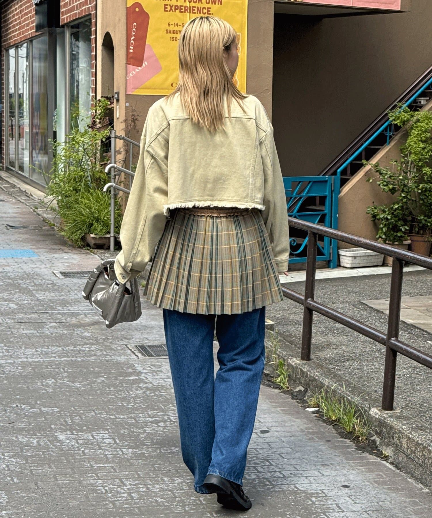 ウエスト部分の切りっぱなしデザインが、古着のようなこなれ感を演出してくれます。
