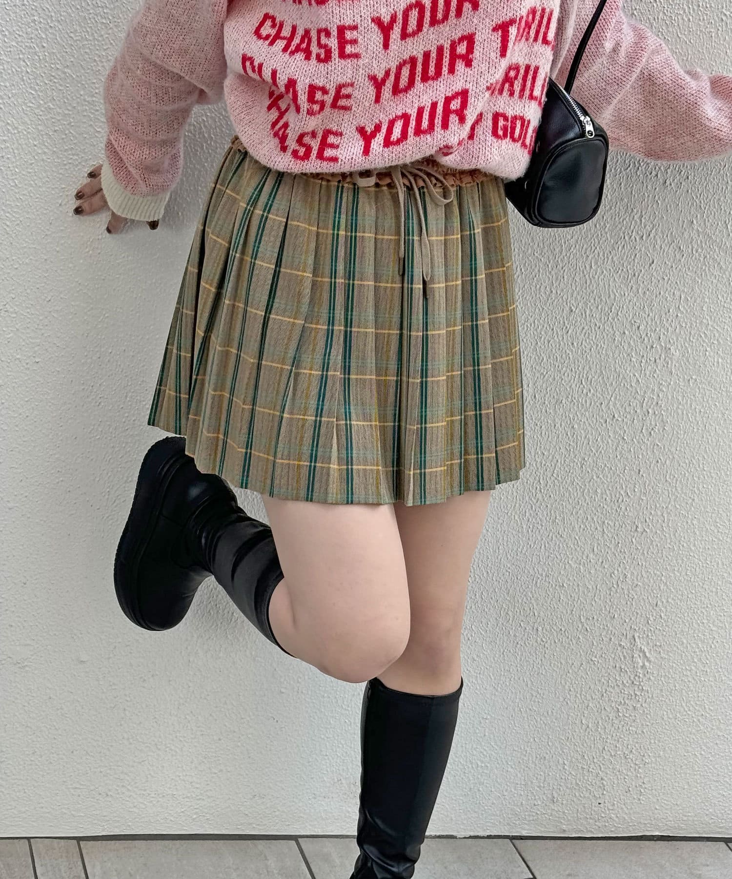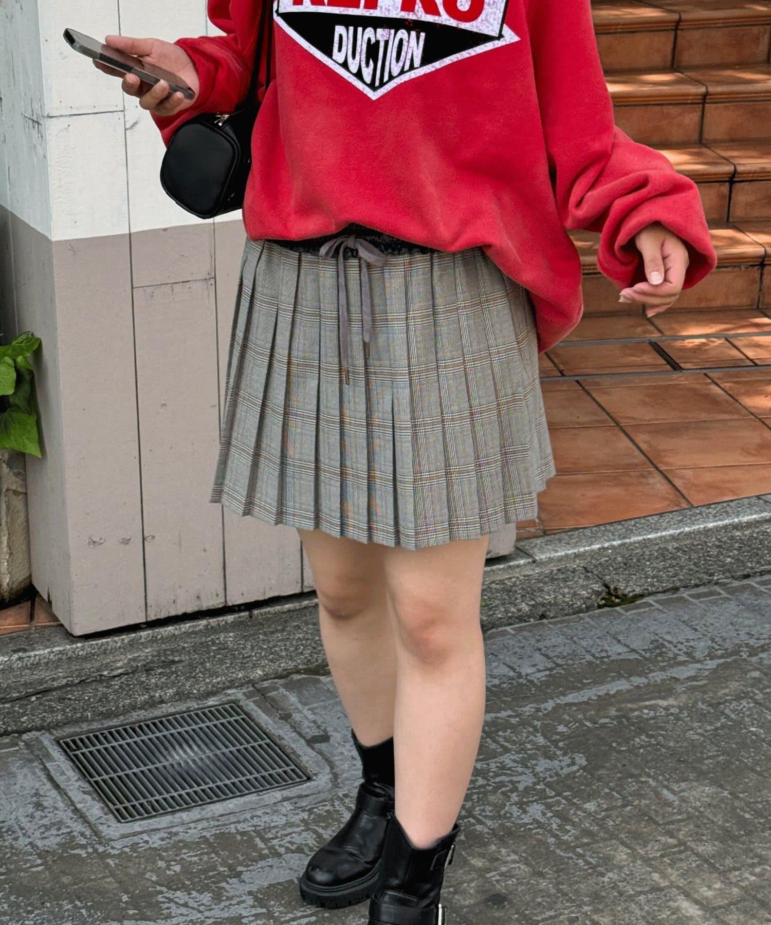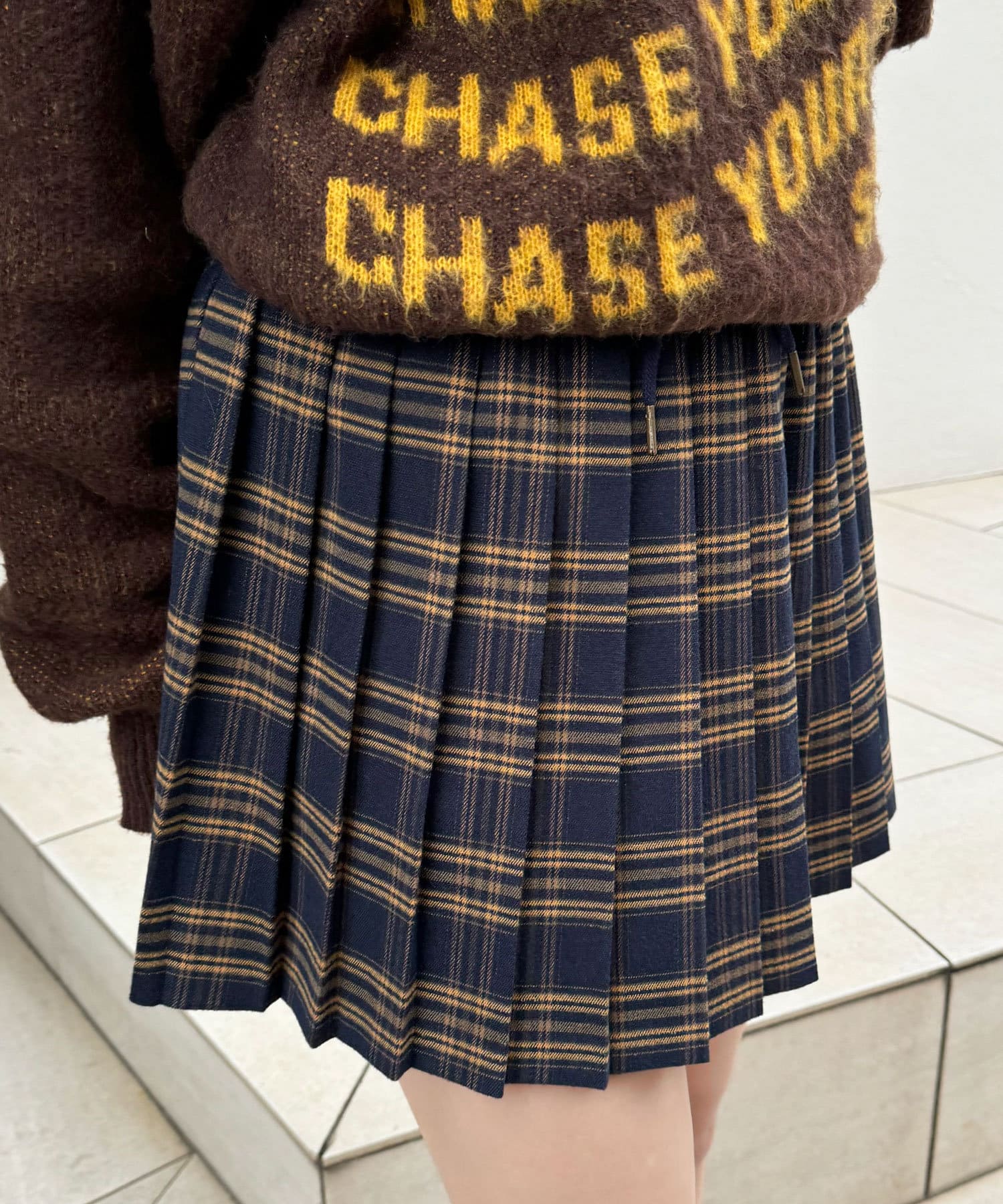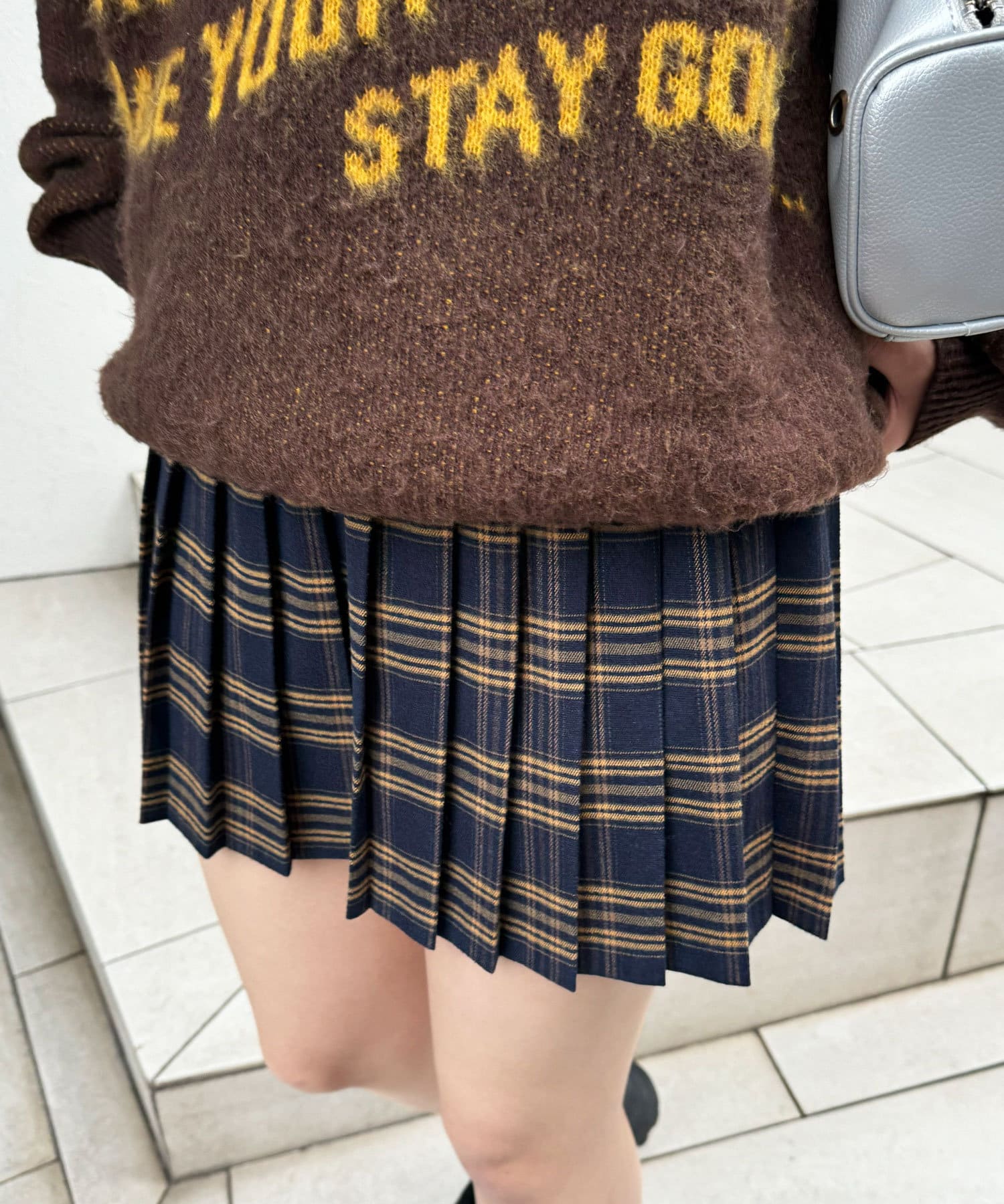 今季トレンドのプレッピー感漂うチェック柄スカートが登場。