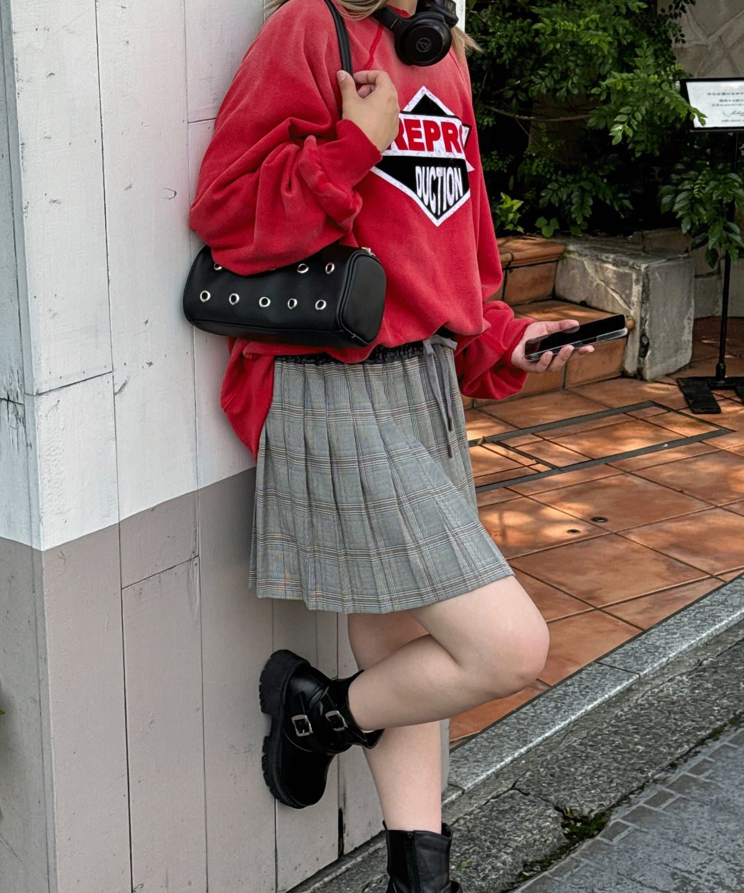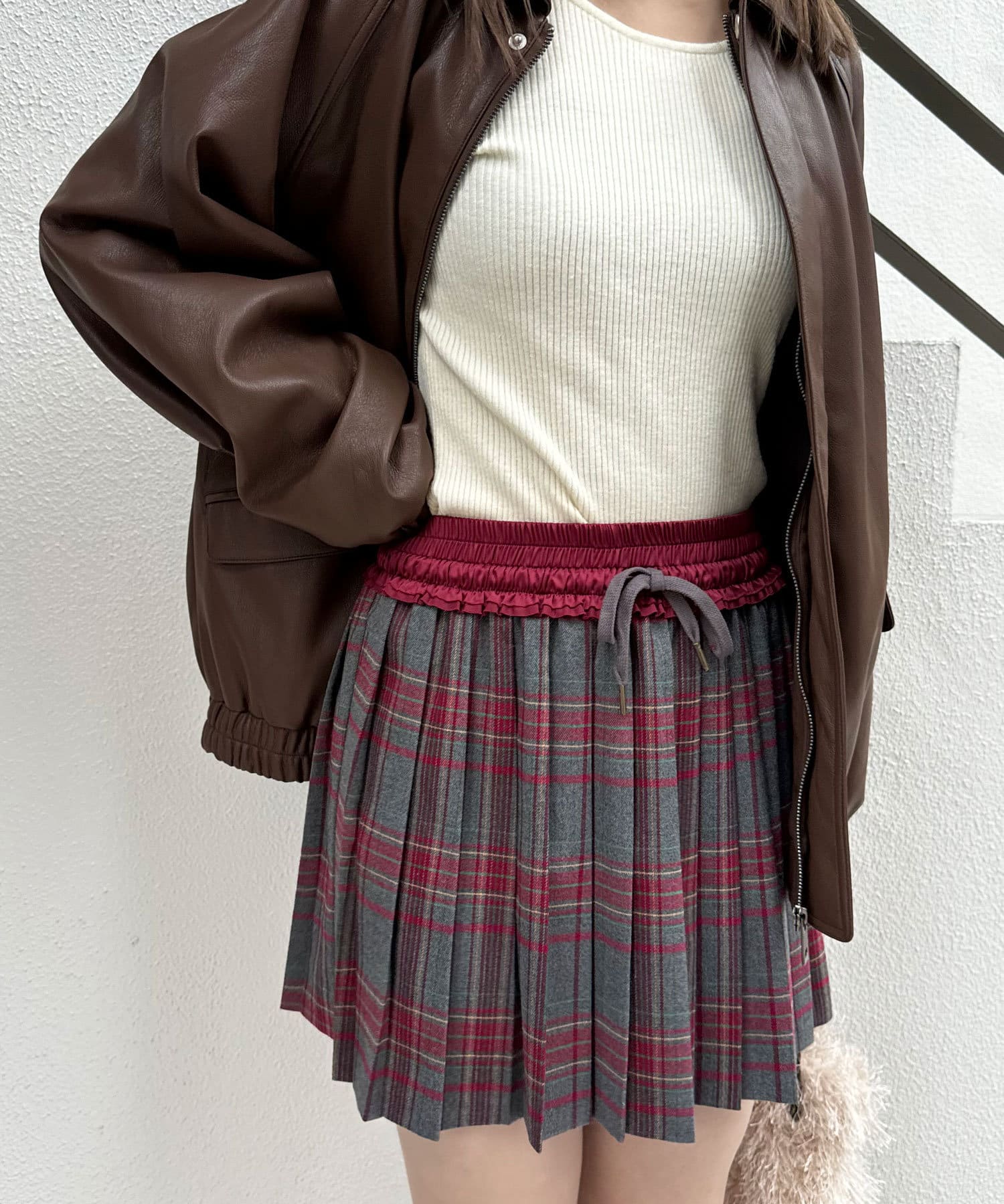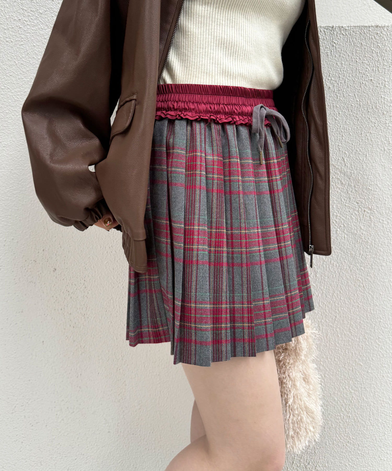 今季トレンドのプレッピー感漂うチェック柄スカートが登場。