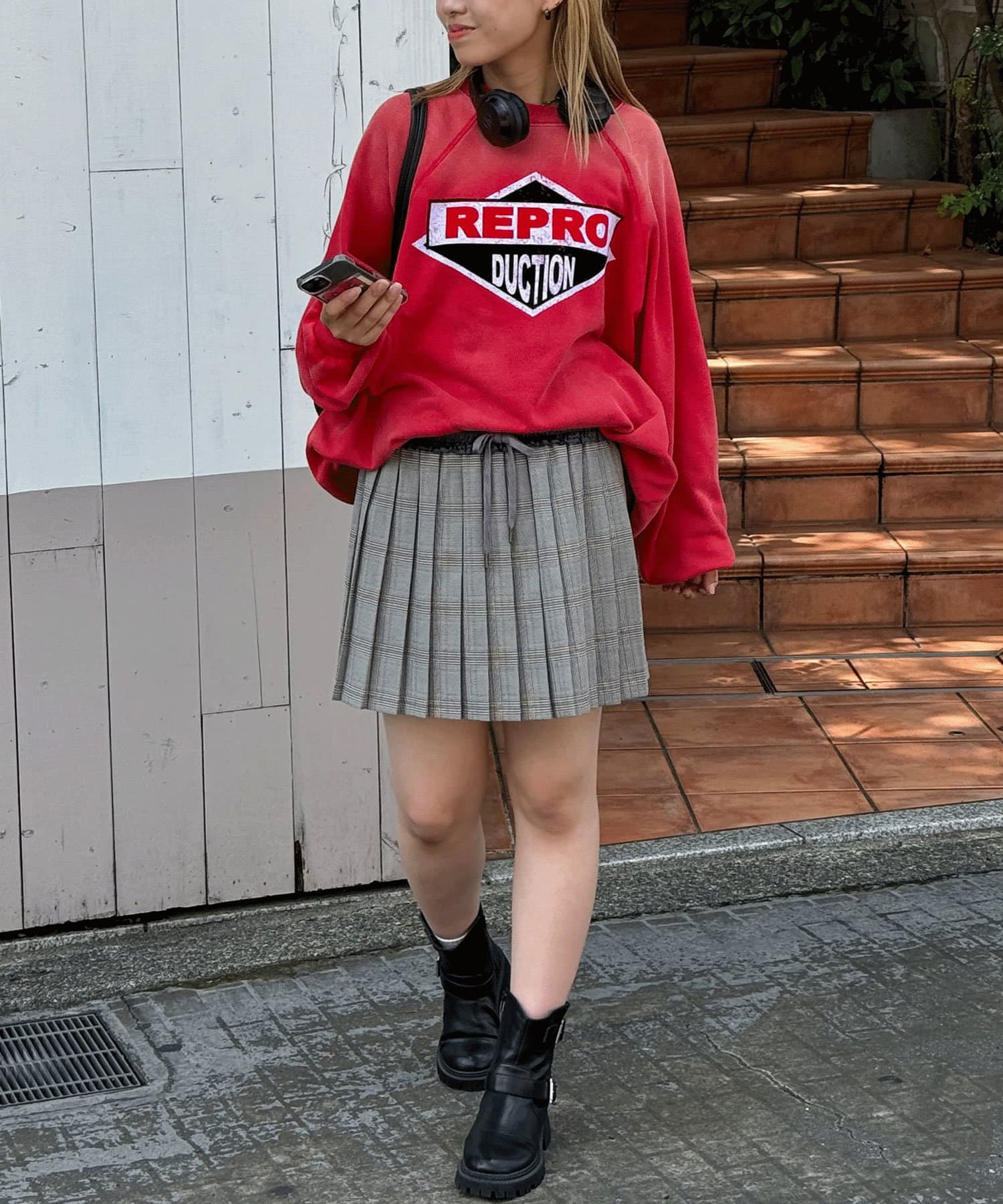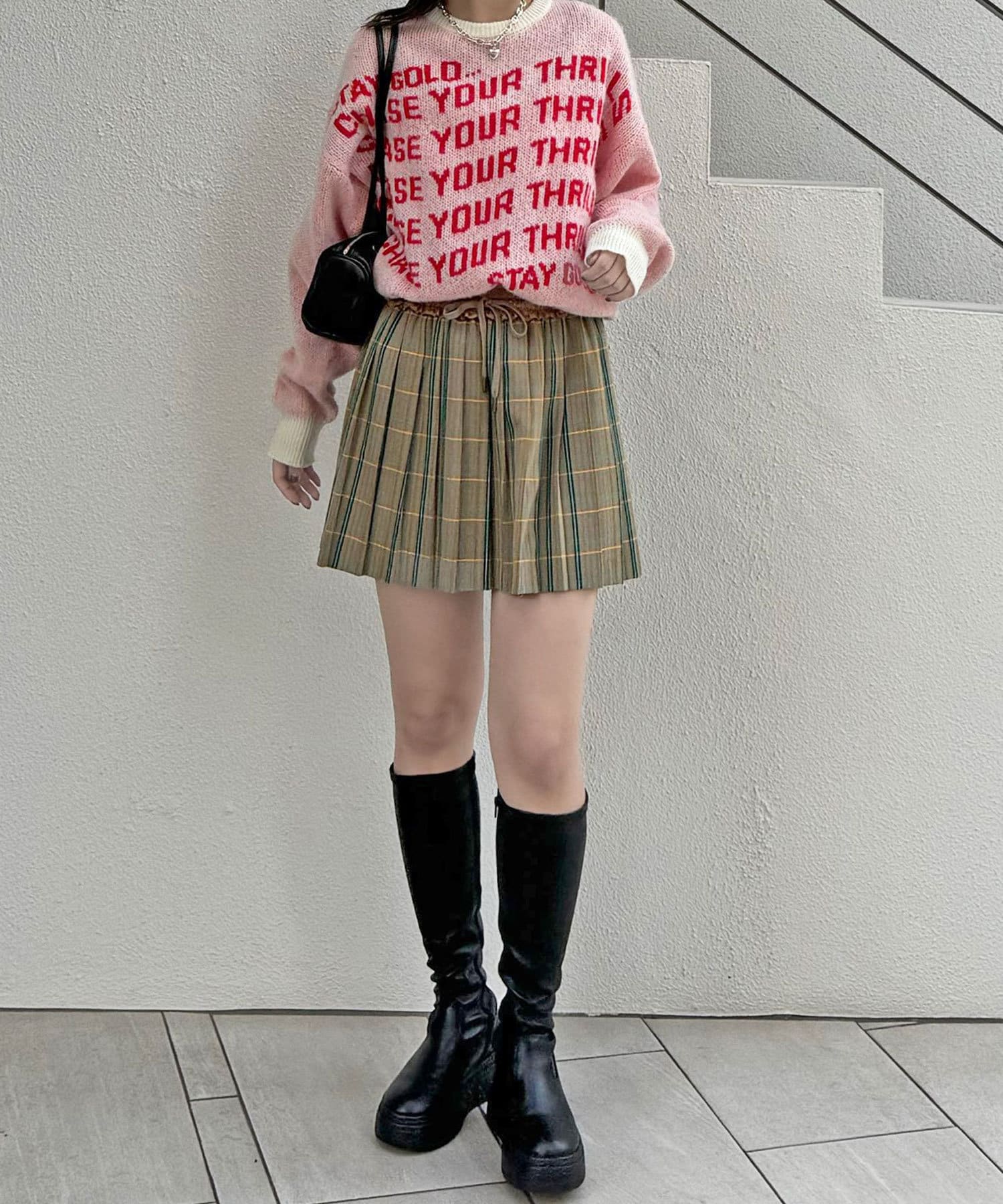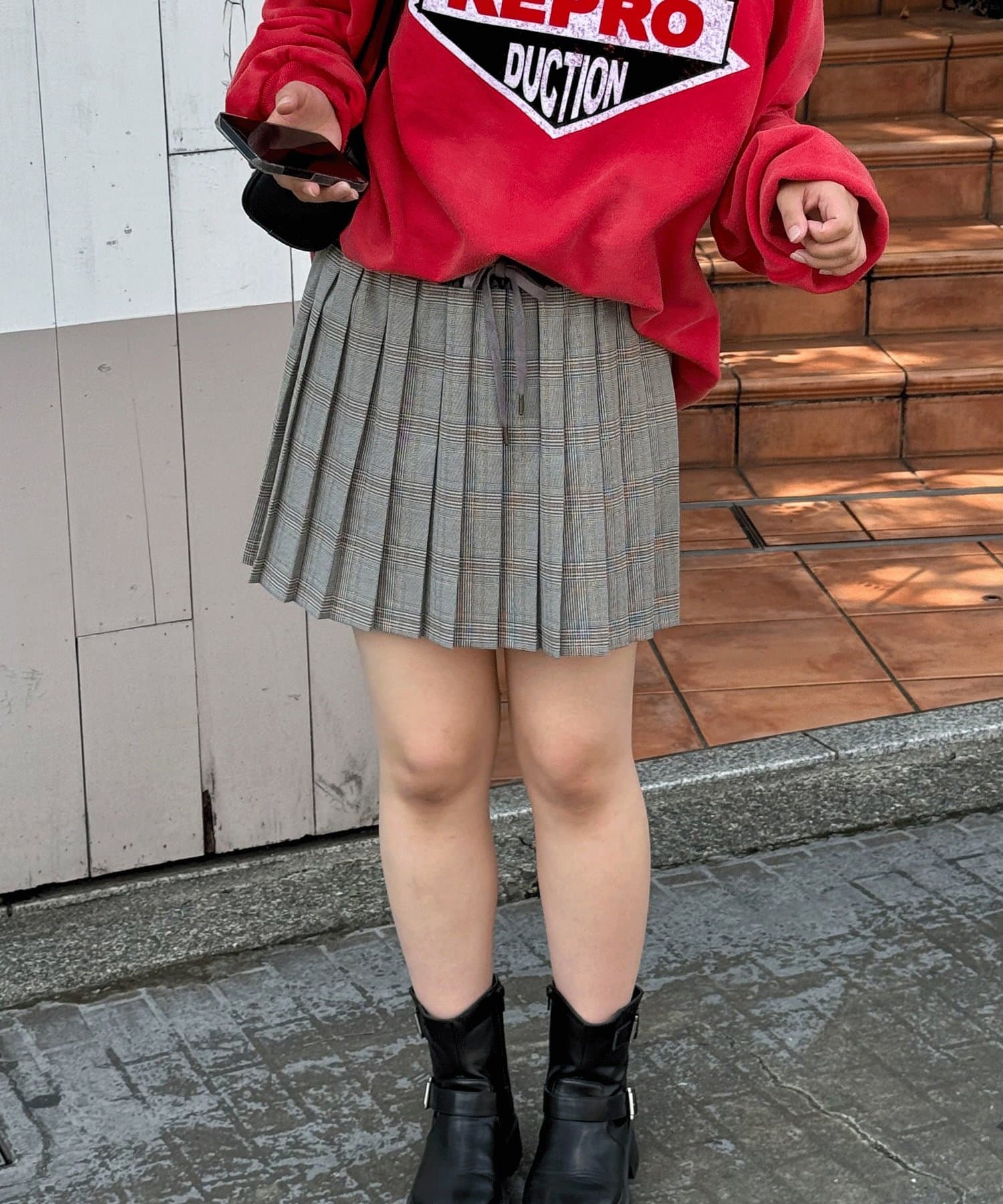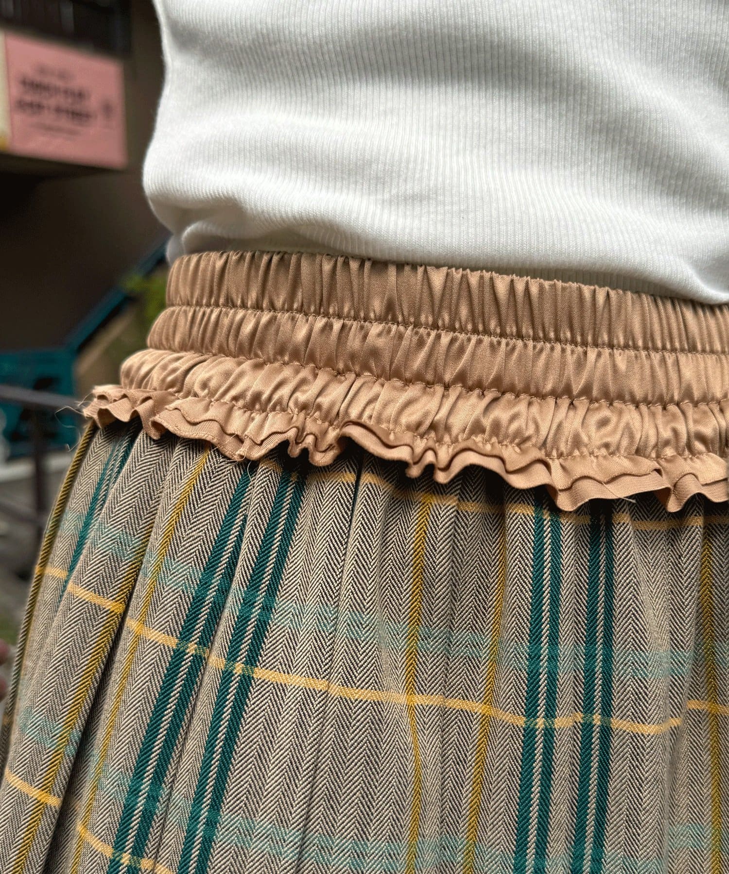 今季トレンドのプレッピー感漂うチェック柄スカートが登場。