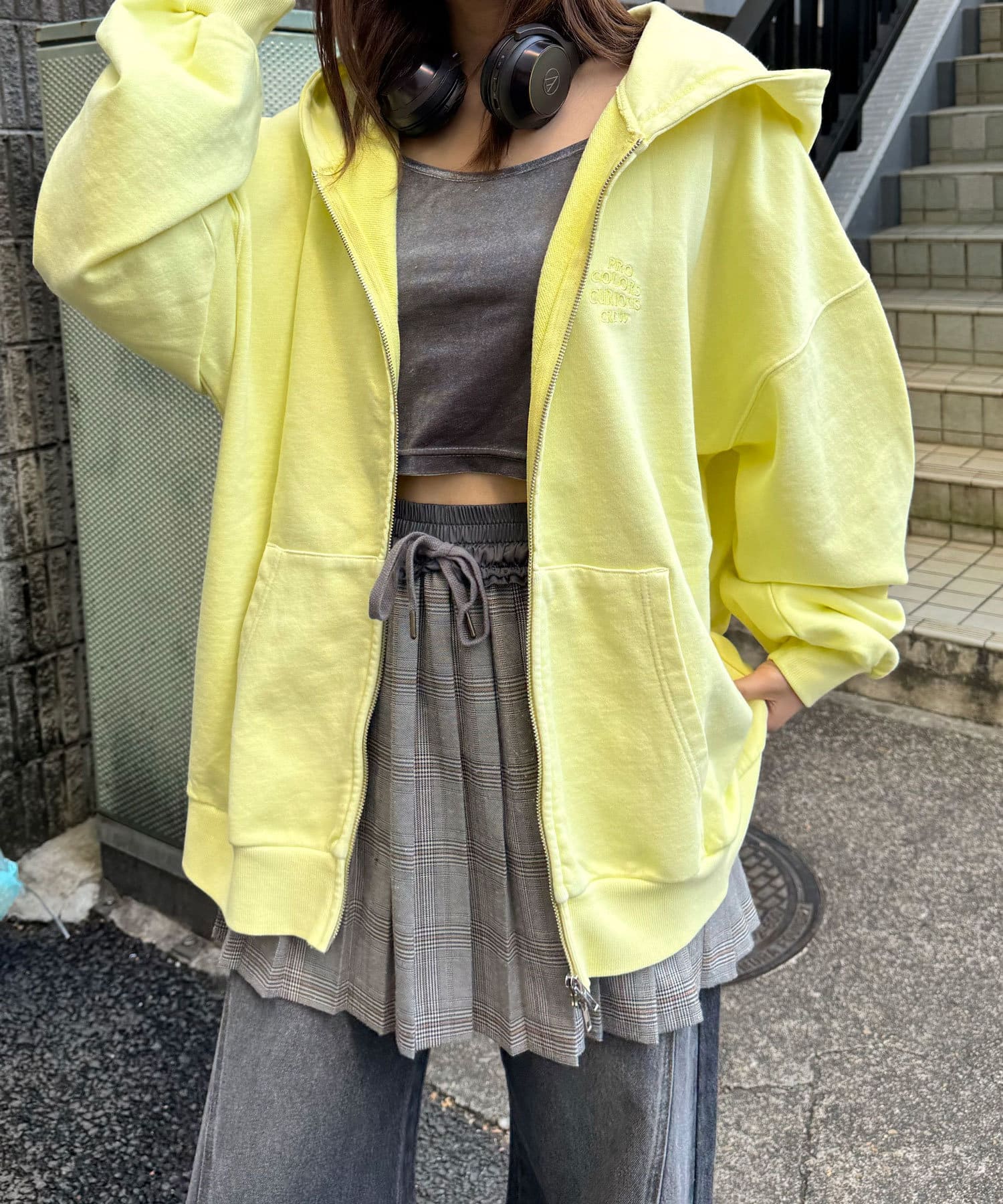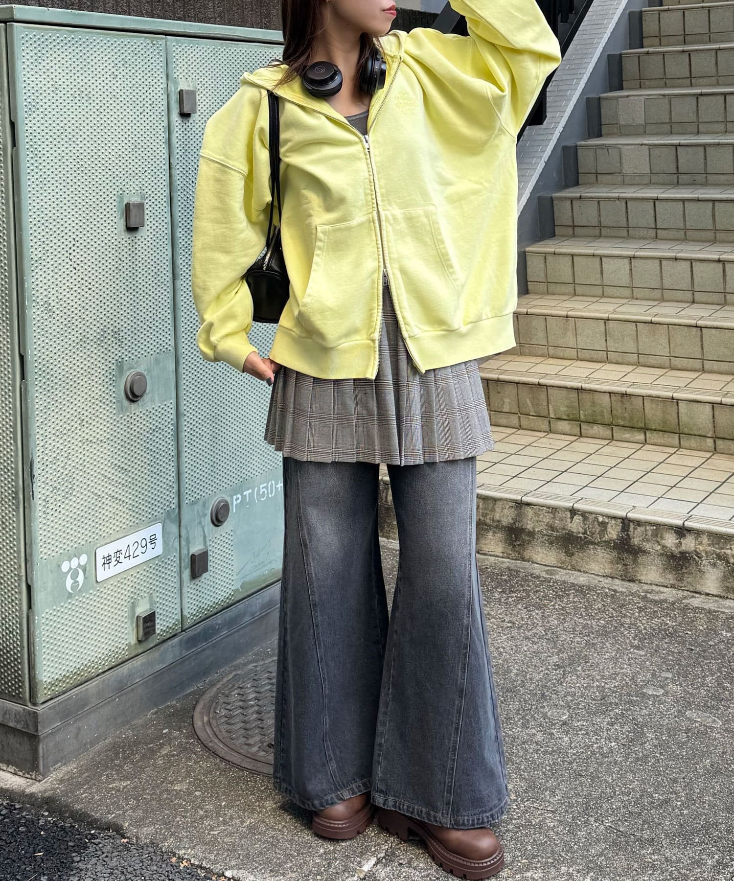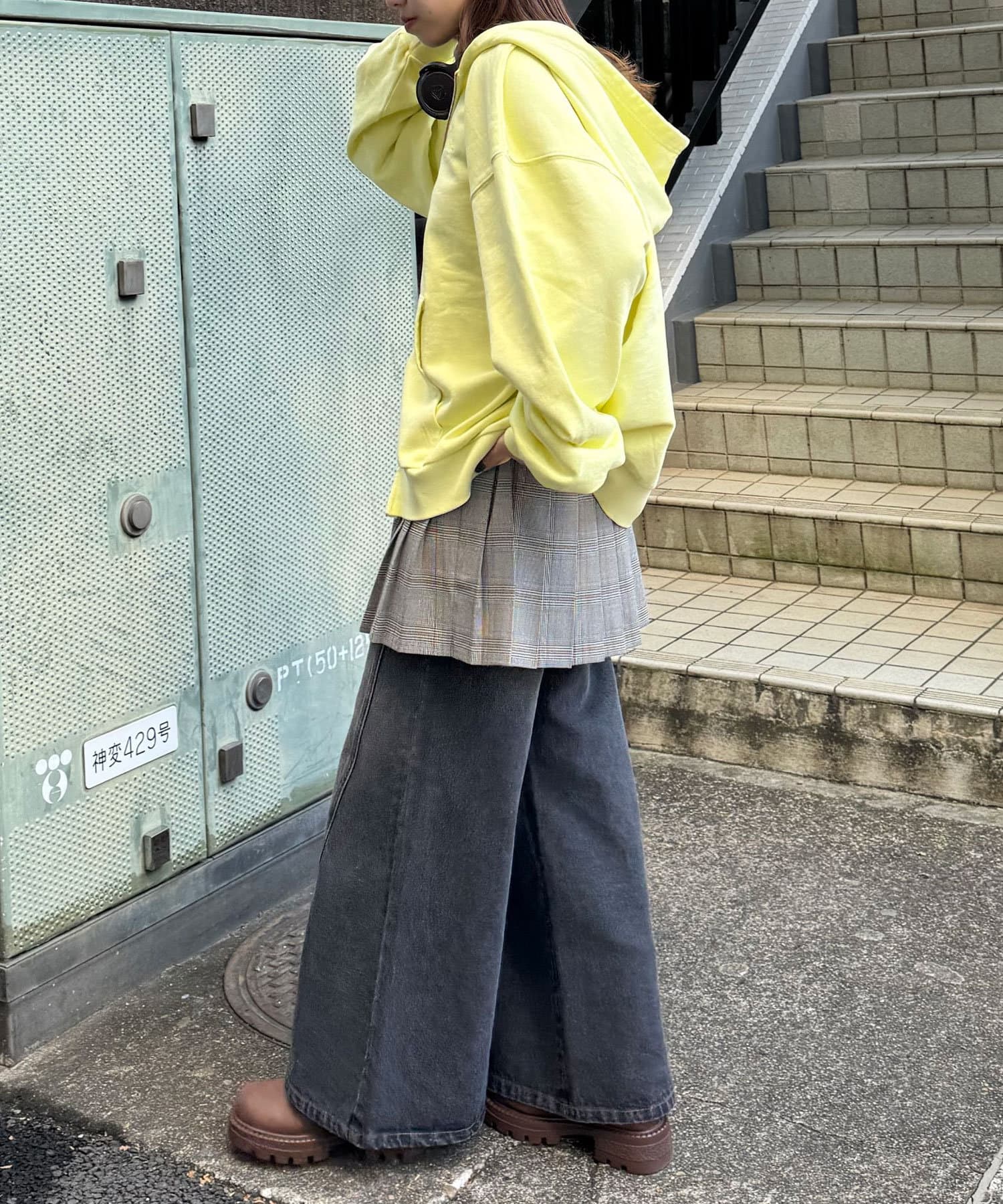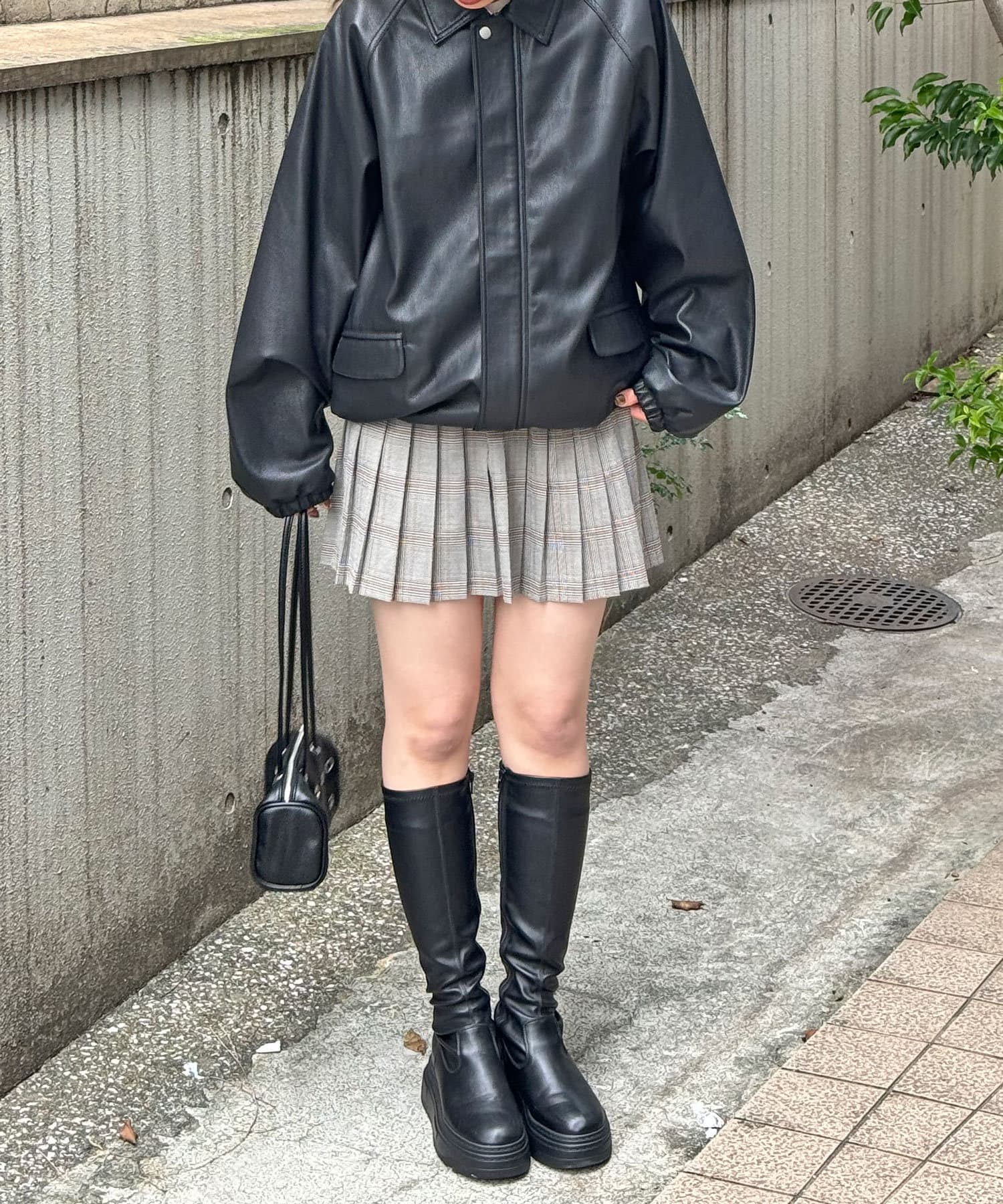 1枚で着て、オーバーサイズなトップスとロングブーツでレディースライクな合わせもおすすめです。