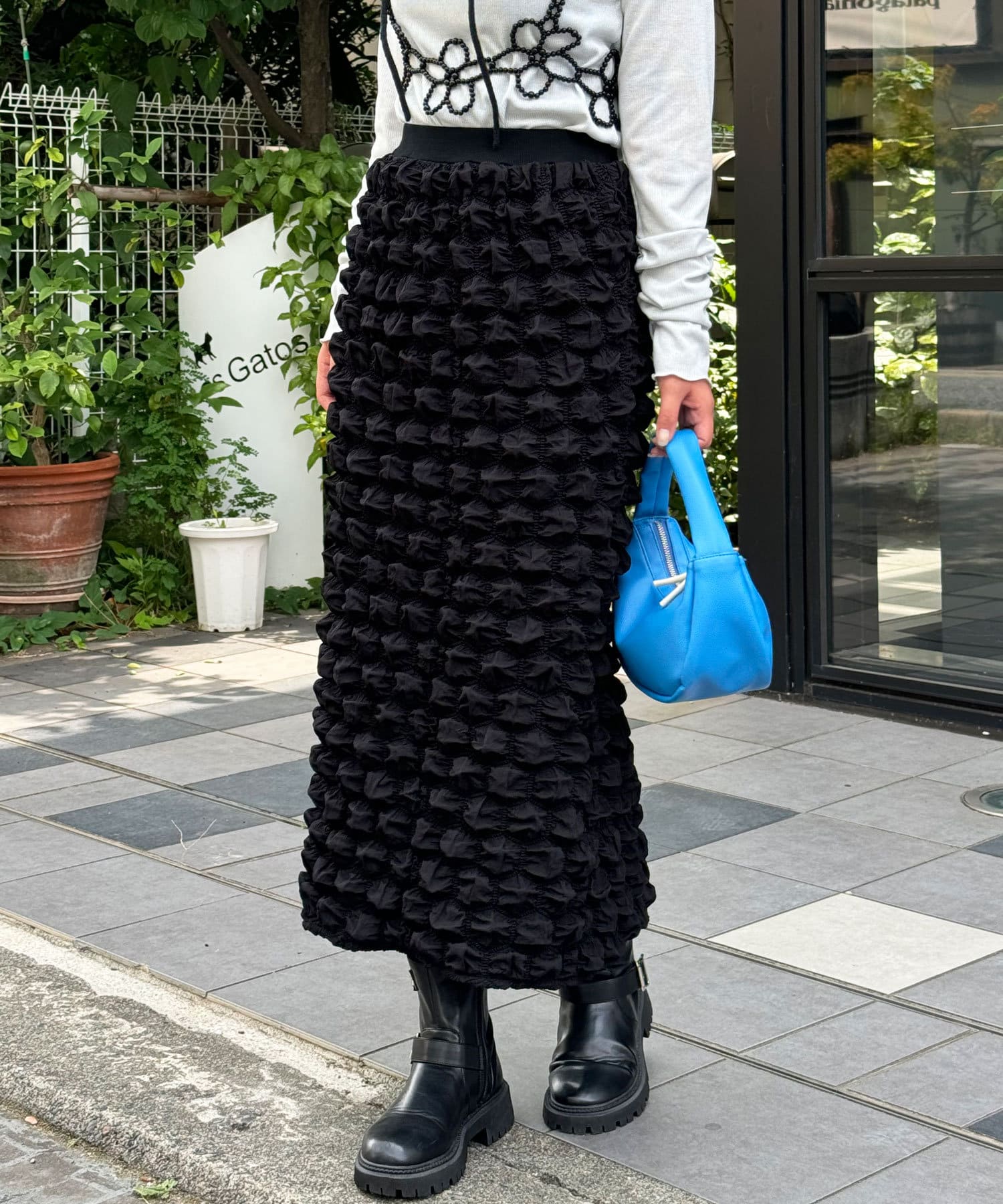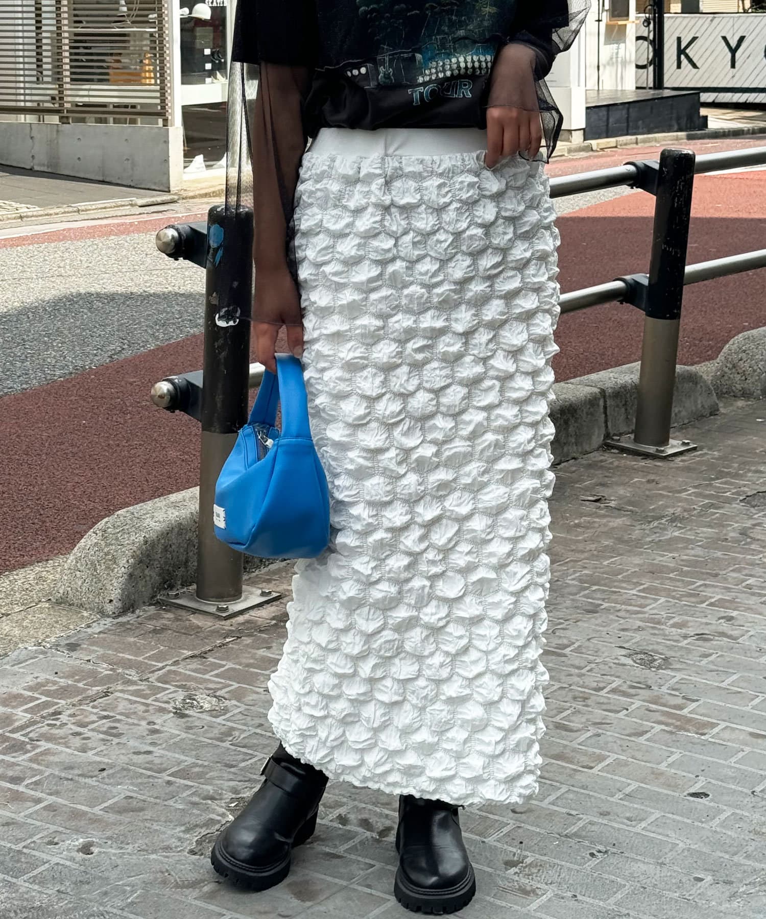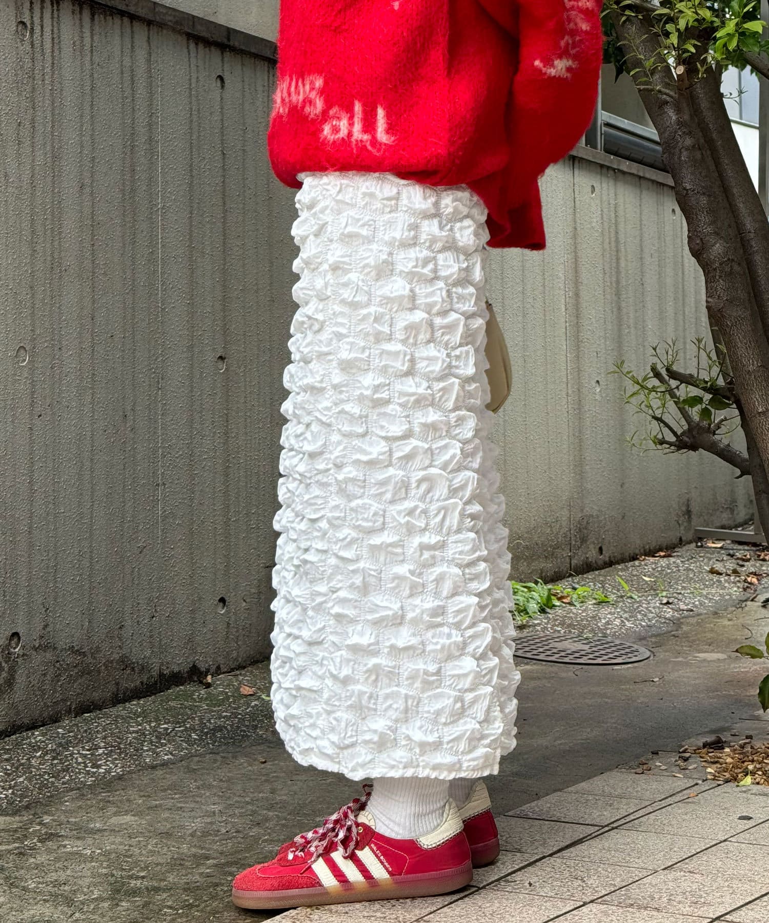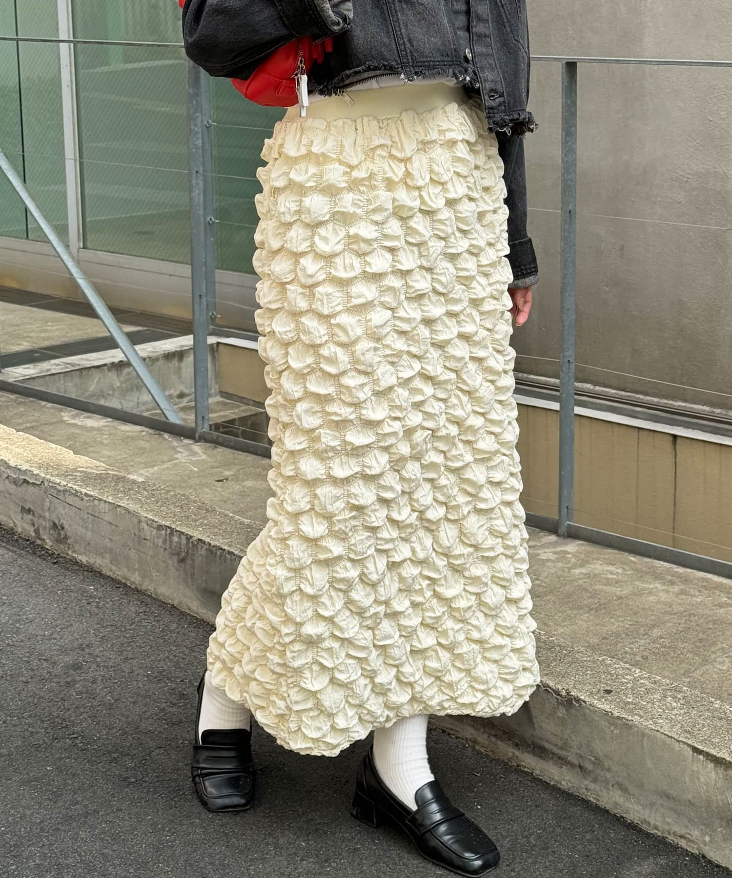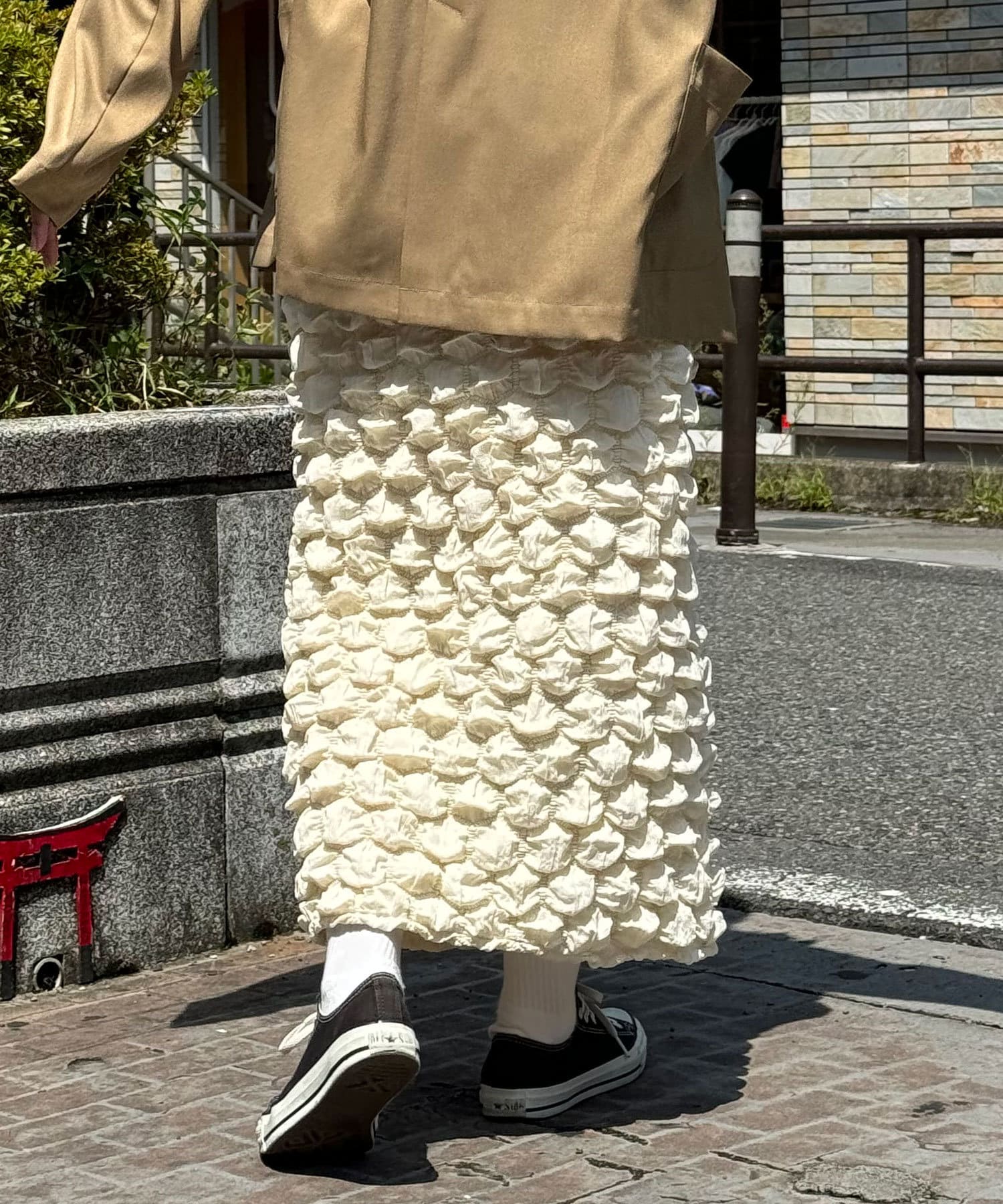 存在感のある立体的なふくれジャガード生地を使用したIラインスカート。