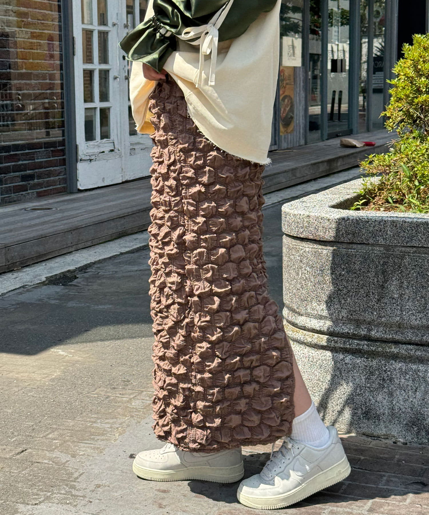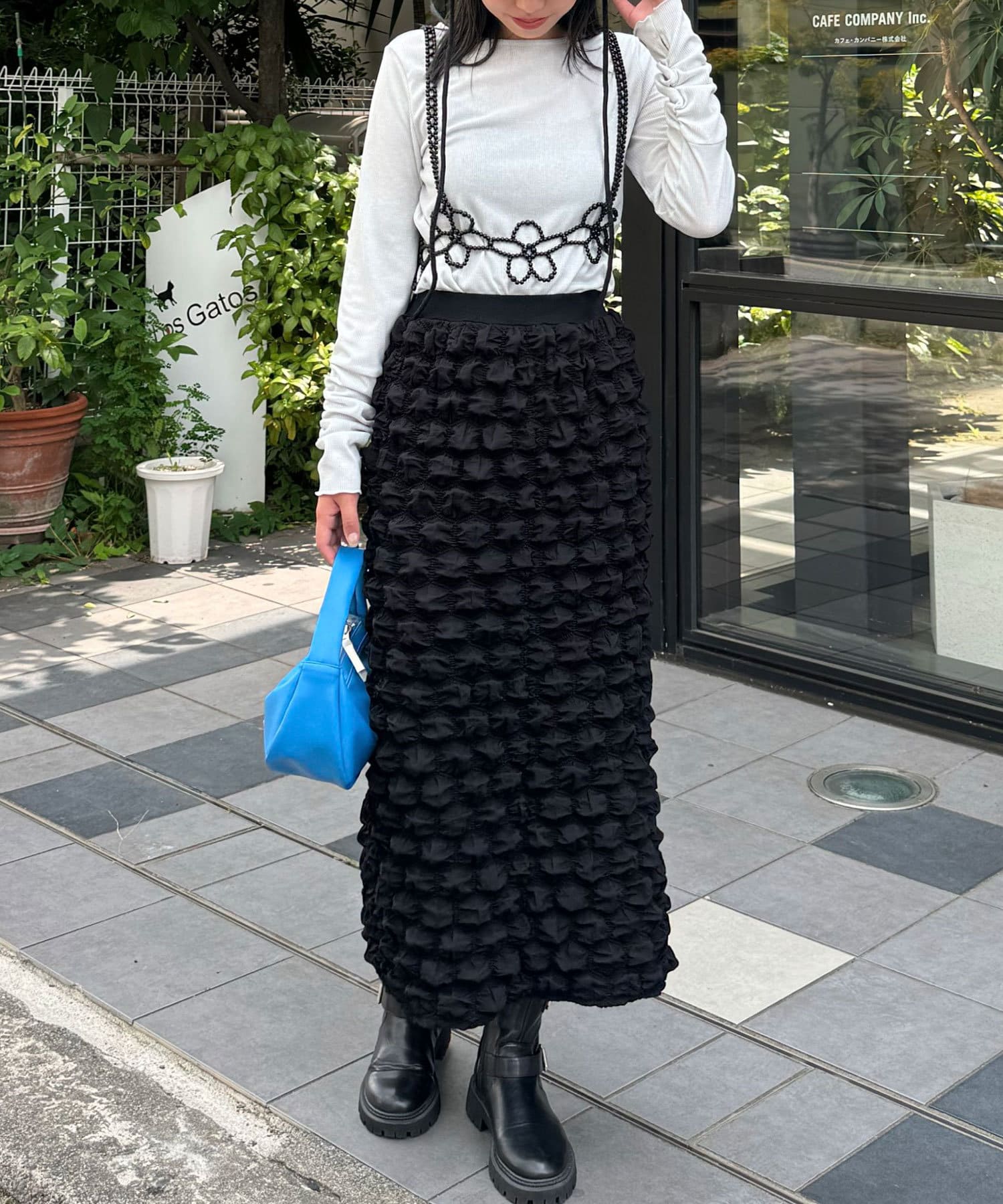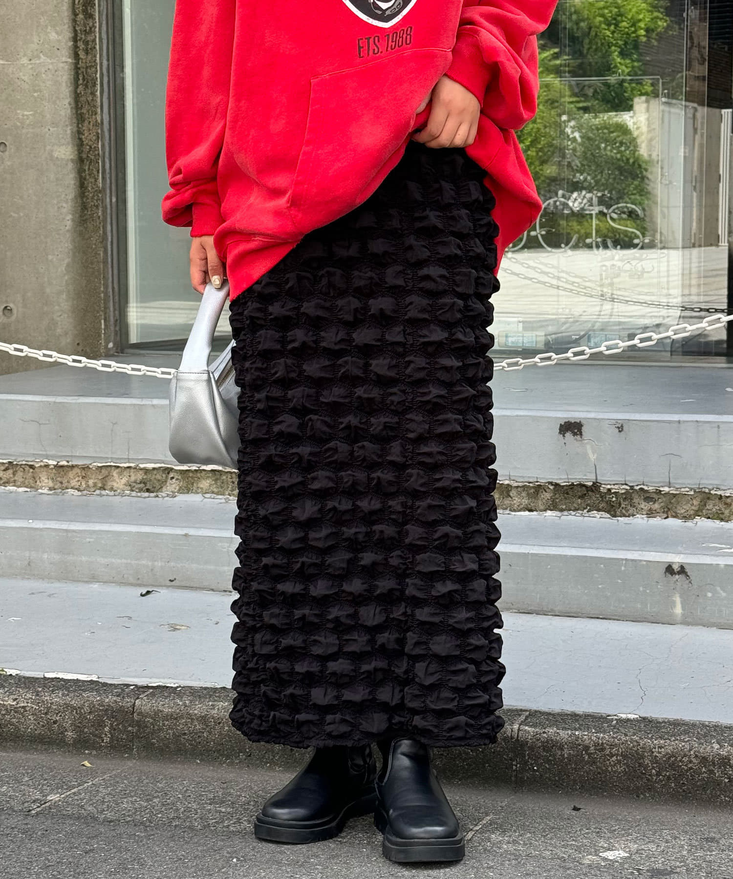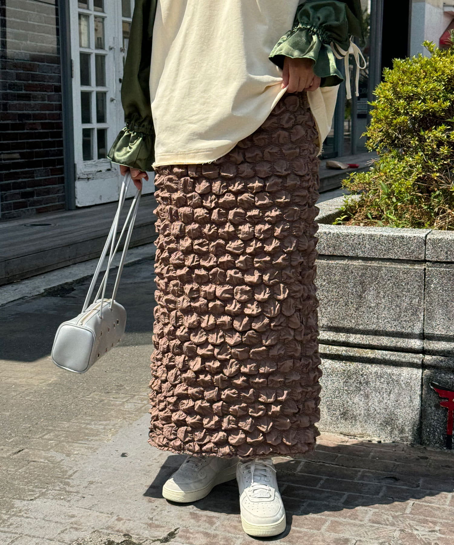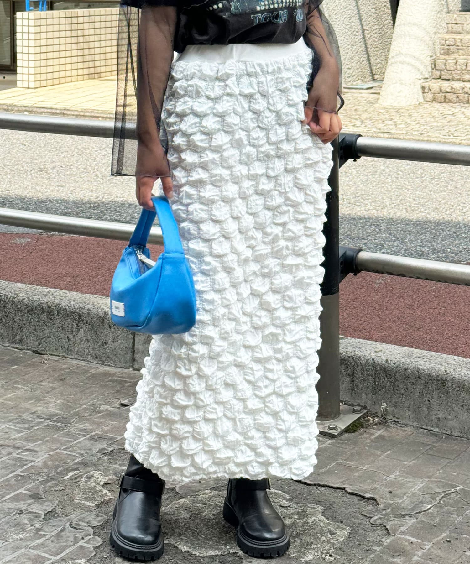 存在感のある立体的なふくれジャガード生地を使用したIラインスカート。