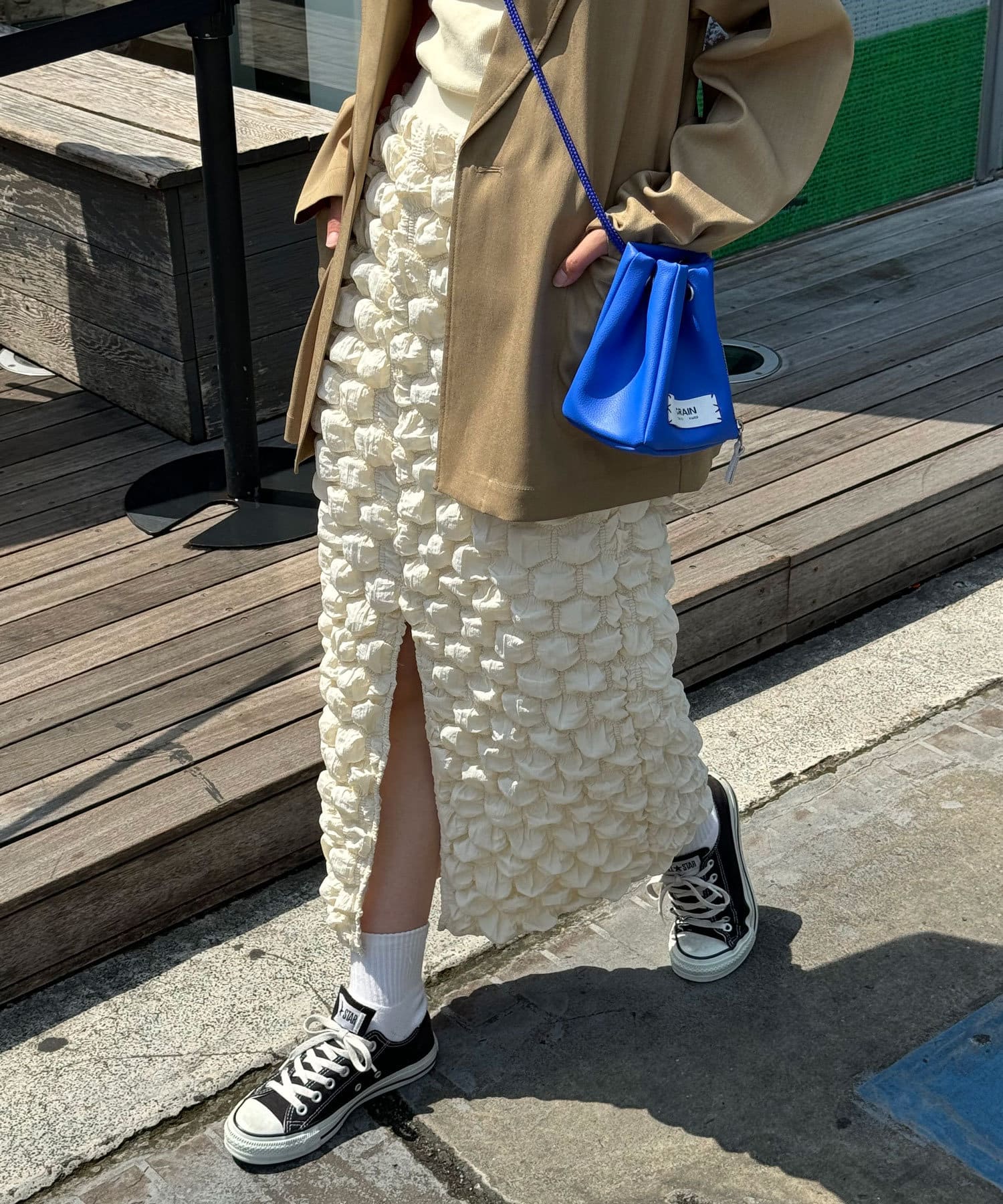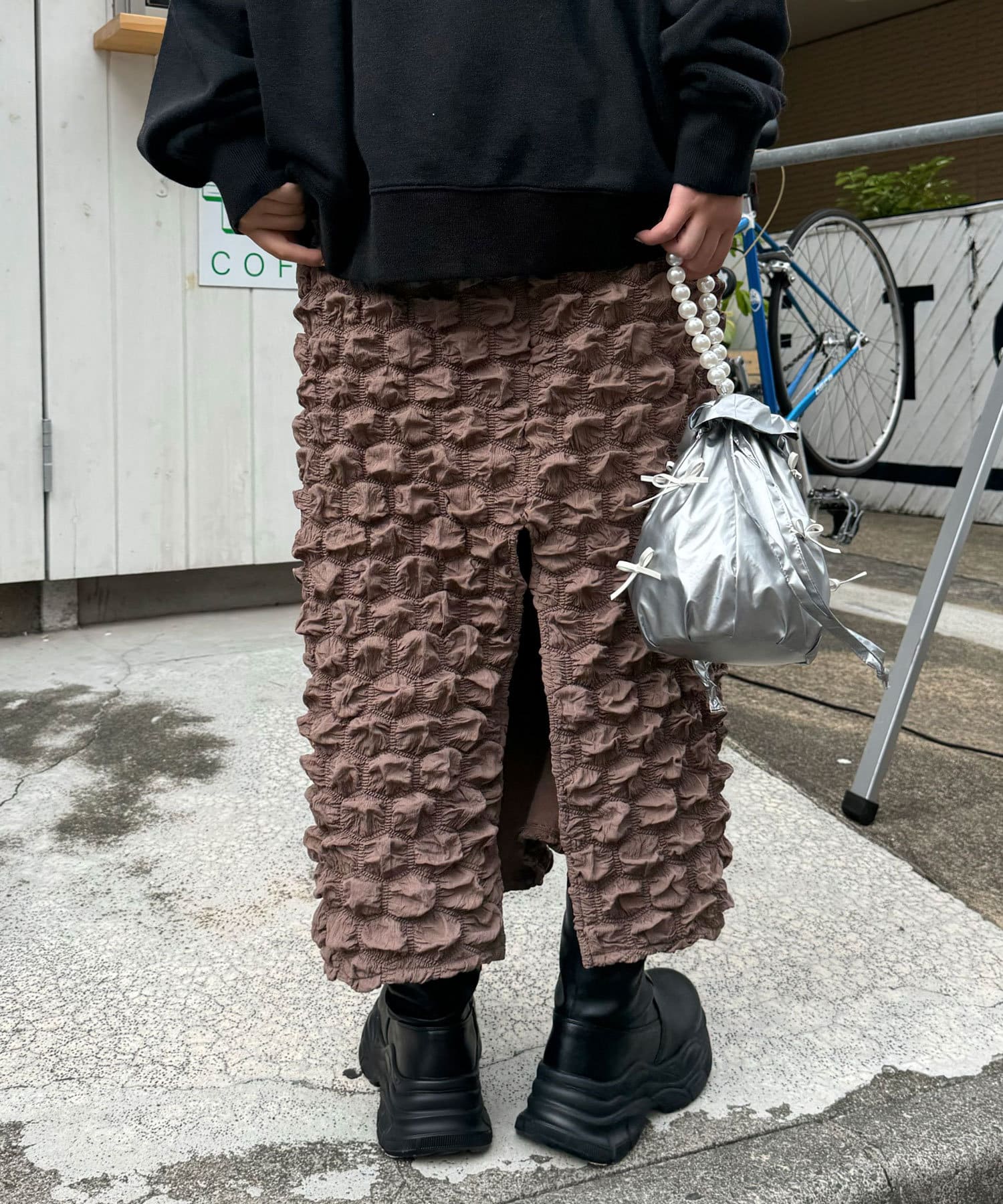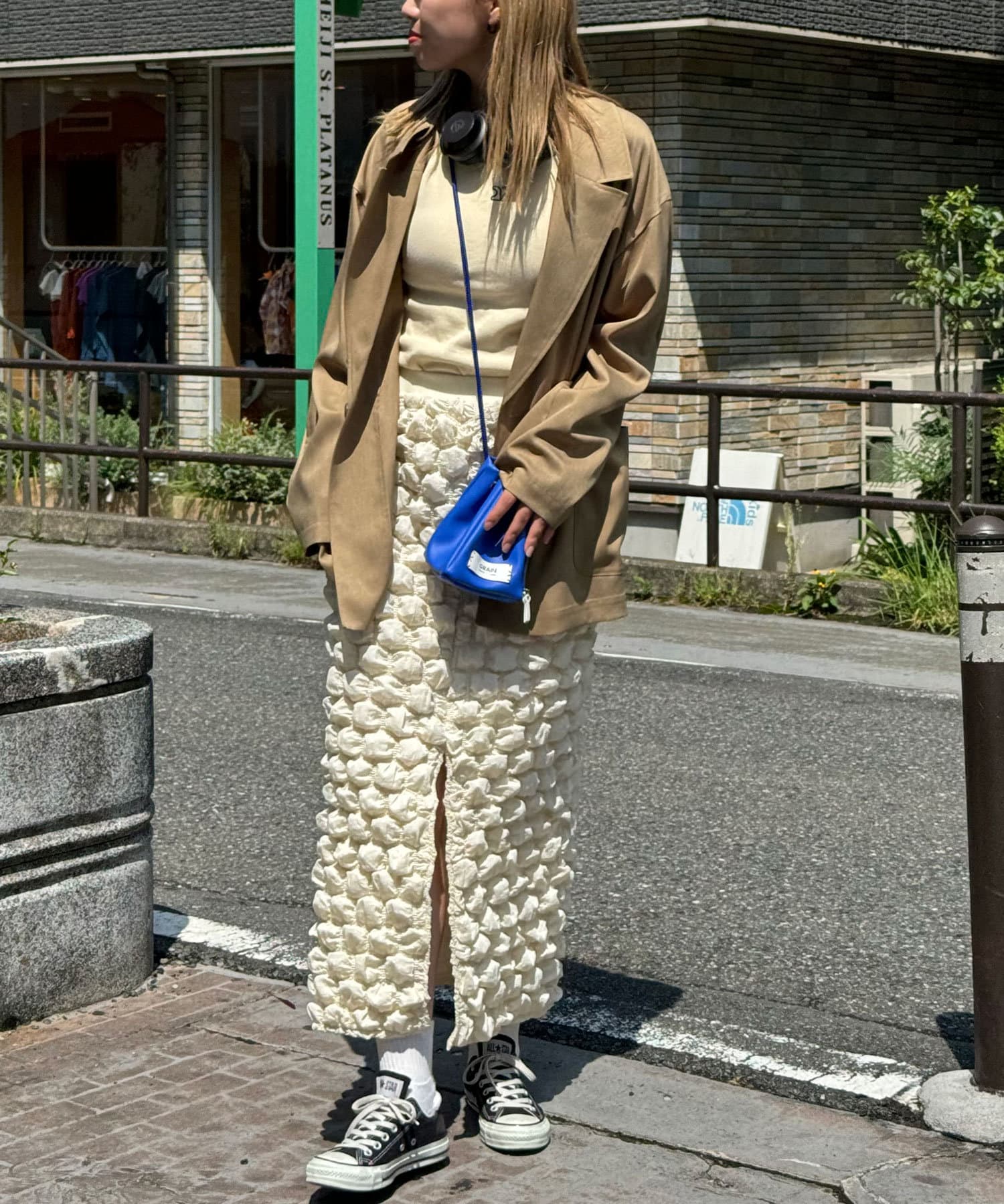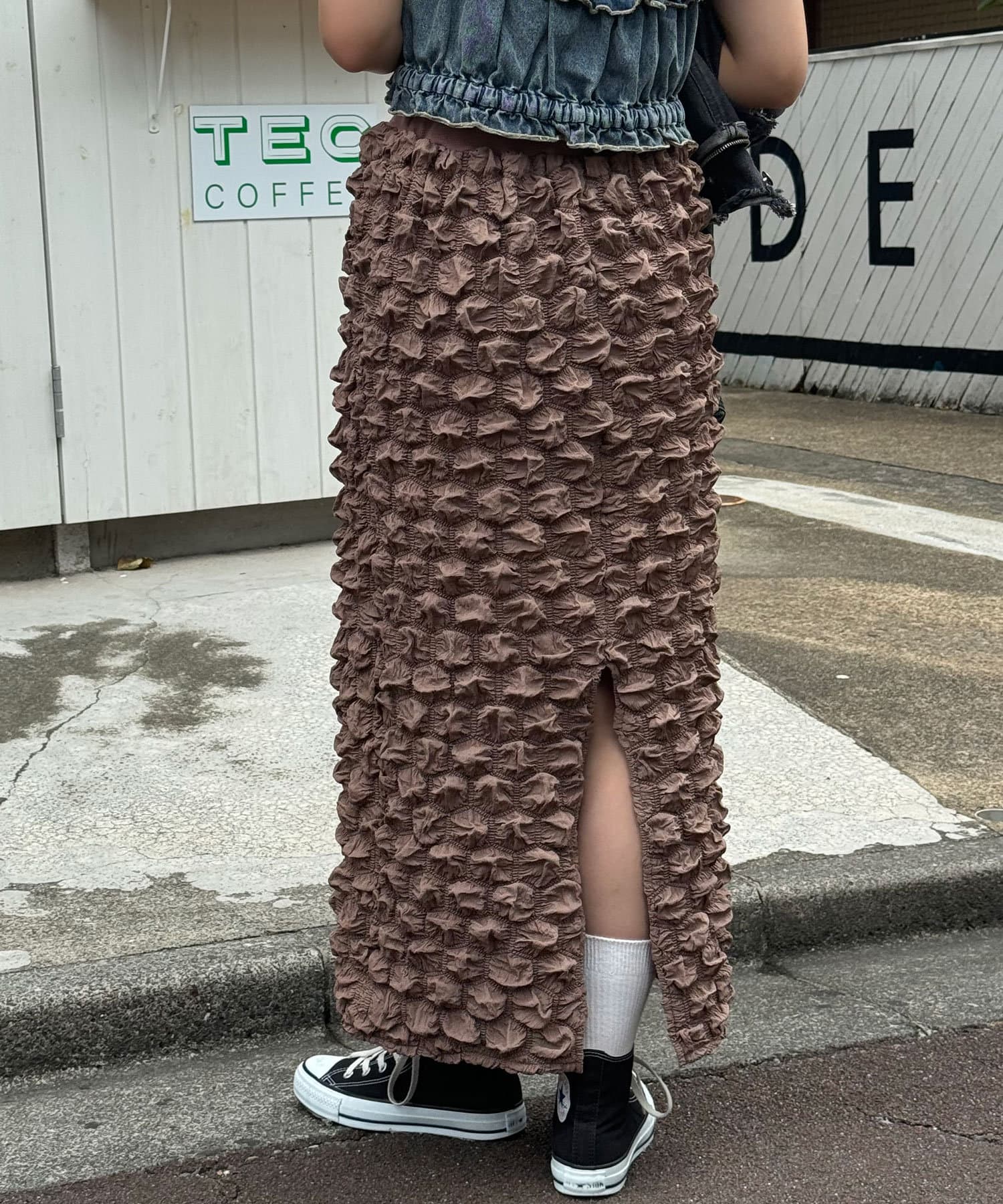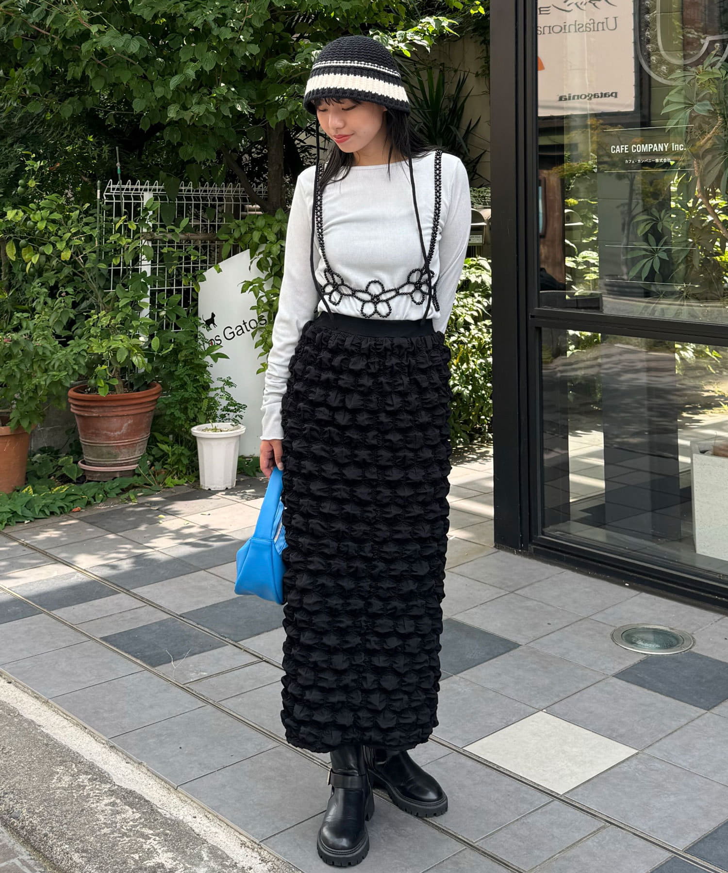 存在感のある立体的なふくれジャガード生地を使用したIラインスカート。