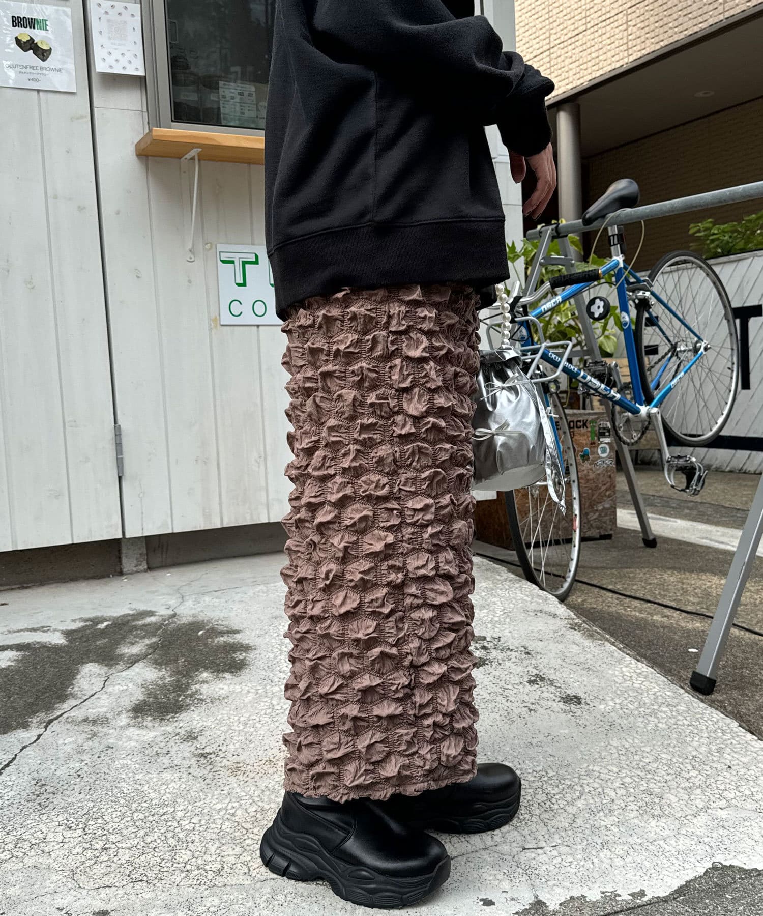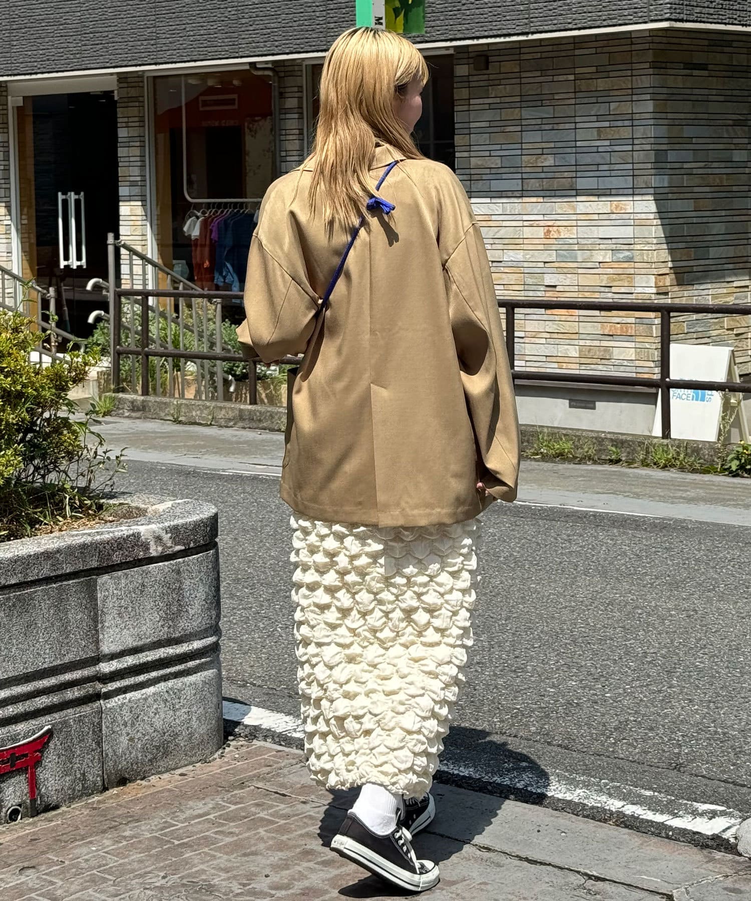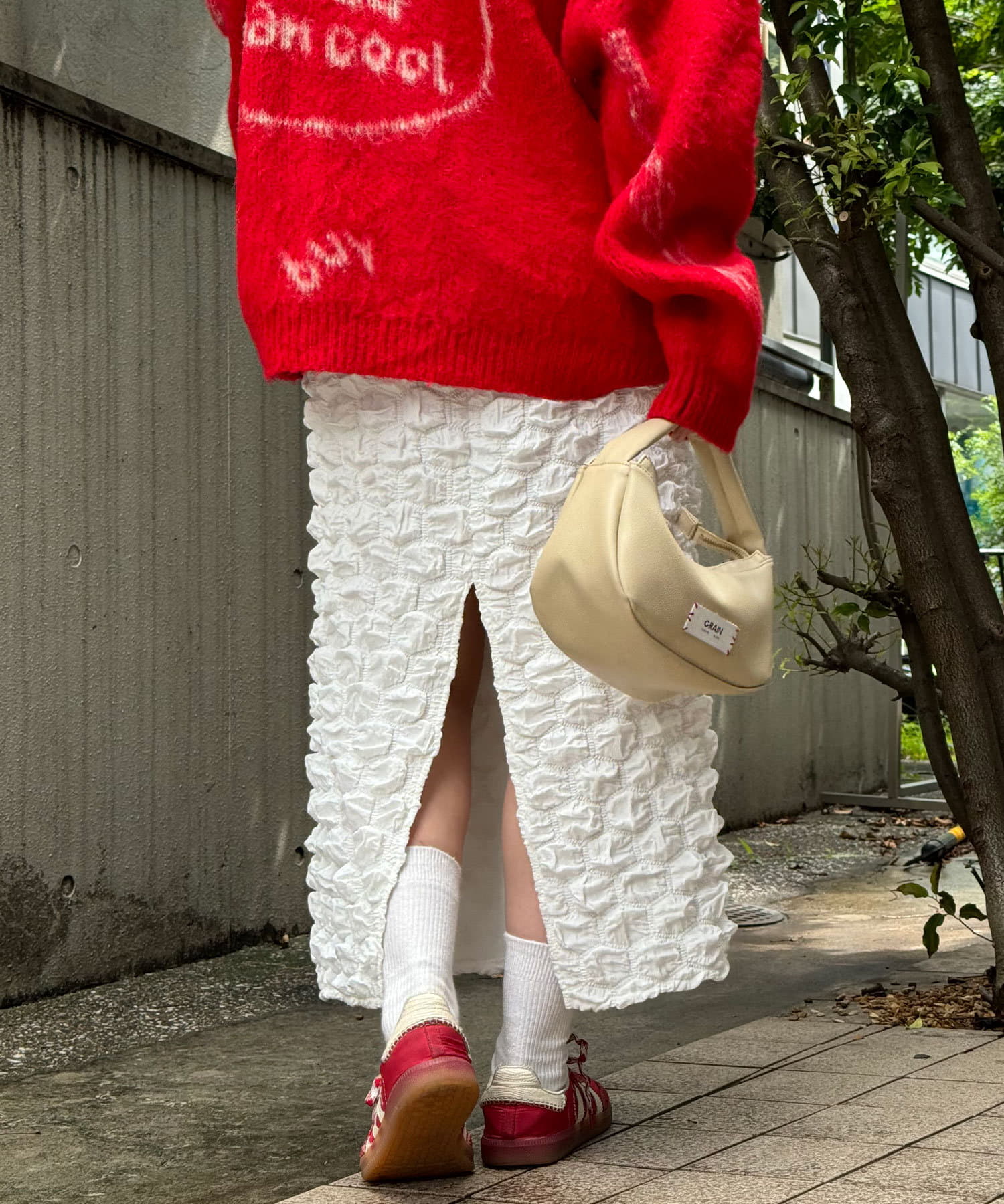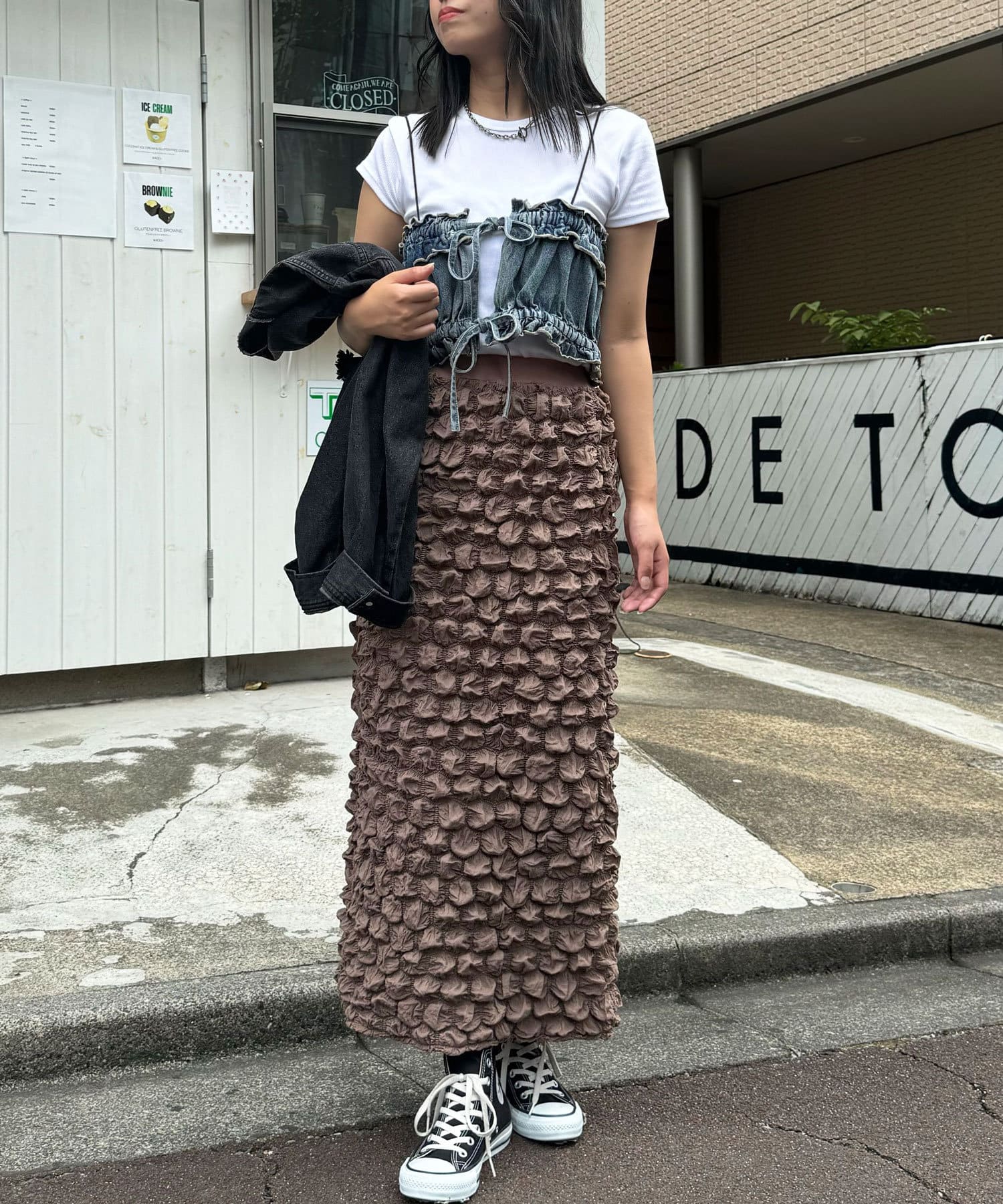 存在感のある立体的なふくれジャガード生地を使用したIラインスカート。