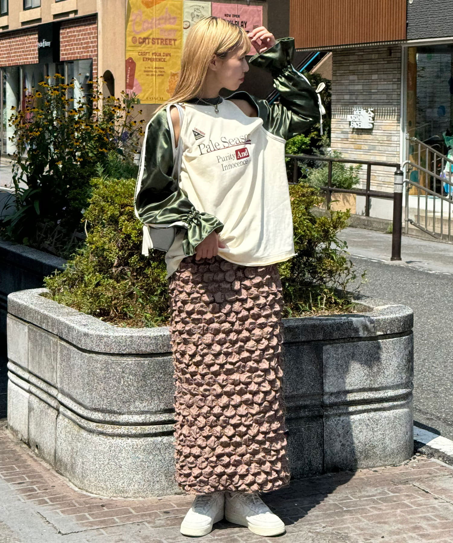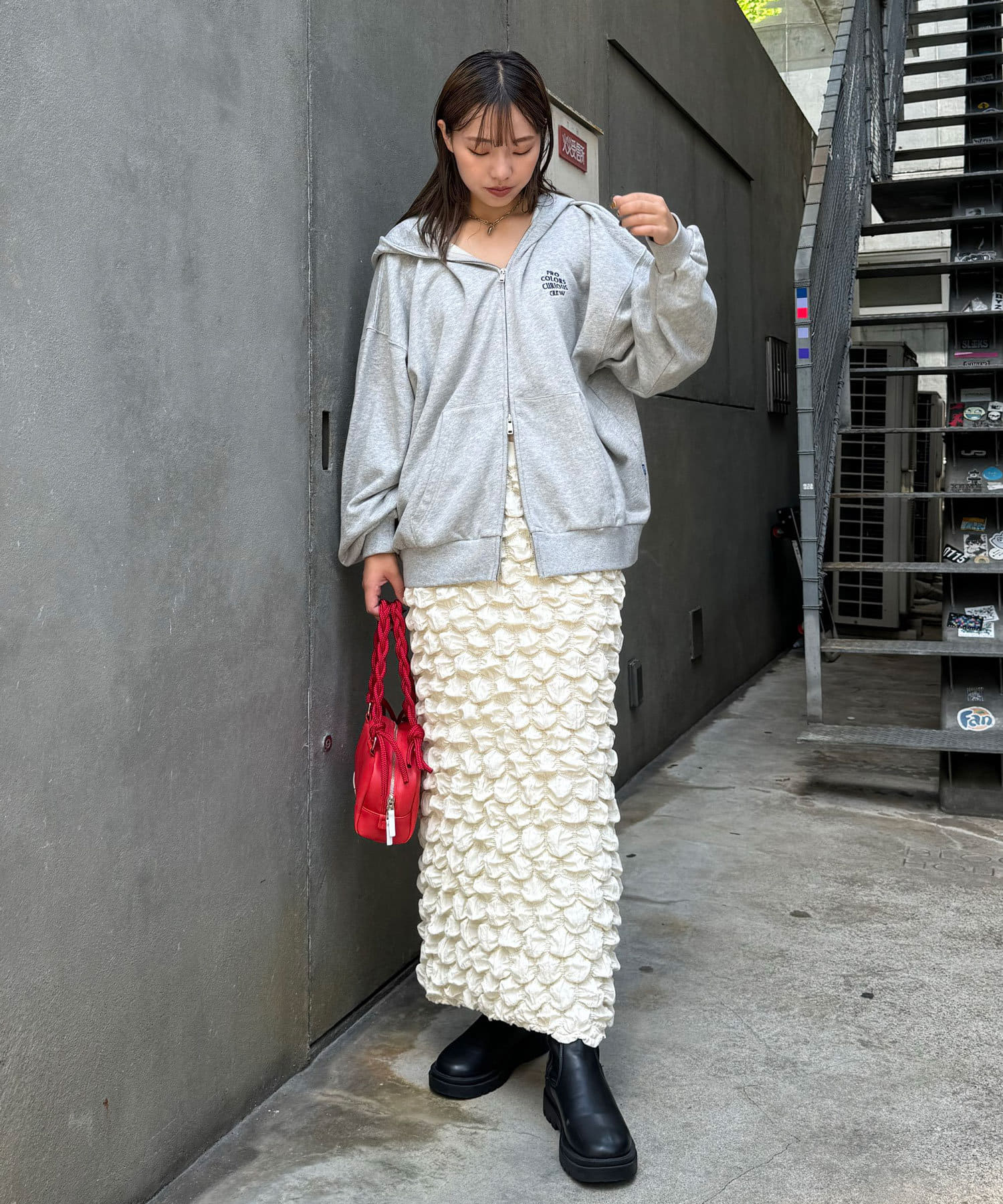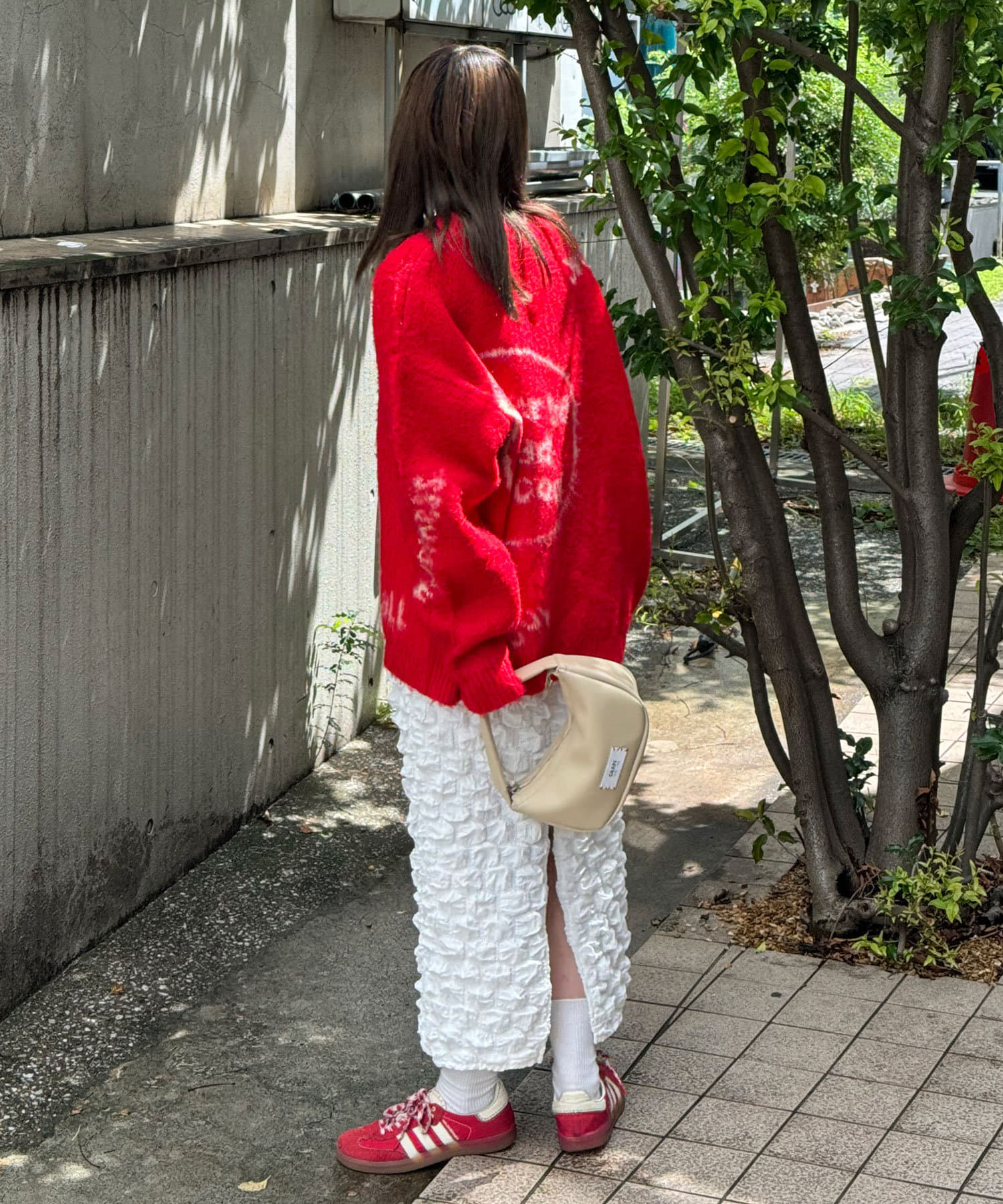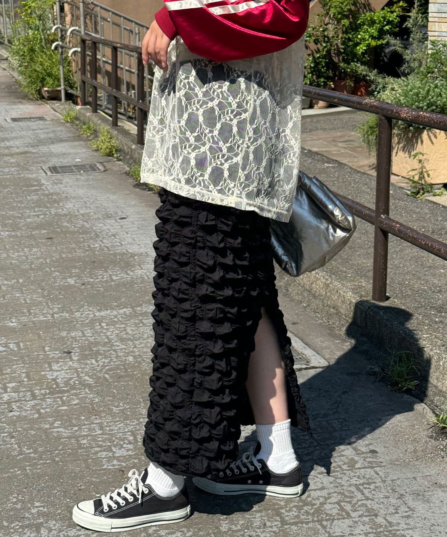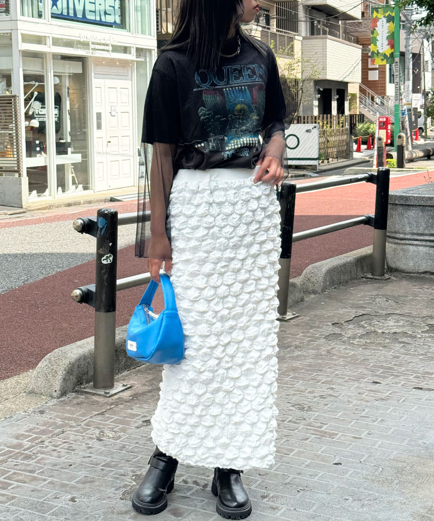 存在感のある立体的なふくれジャガード生地を使用したIラインスカート。