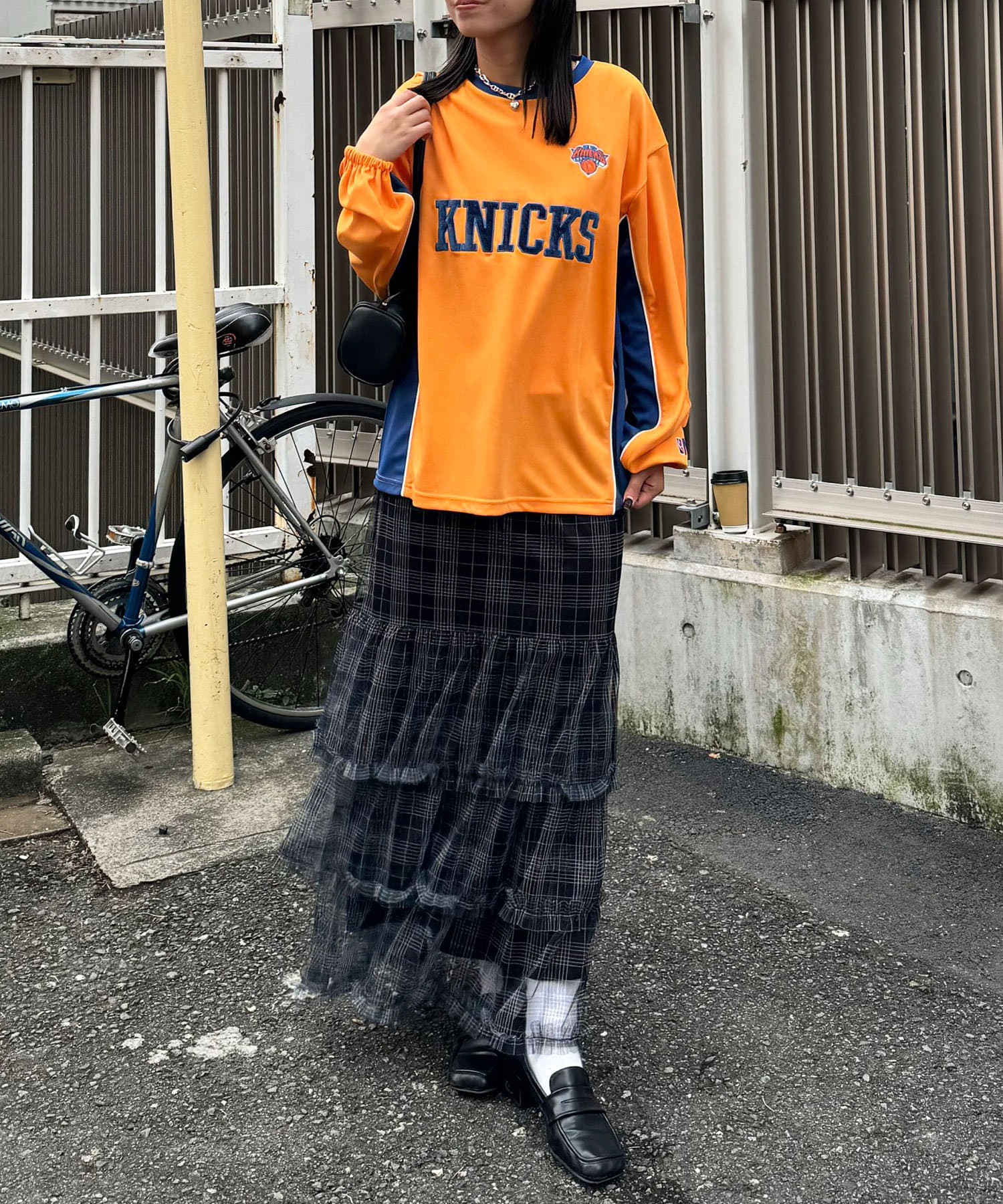 ボトムスはチュールスカートと合わせてスポ甘MIXなスタイリングが一押しです。