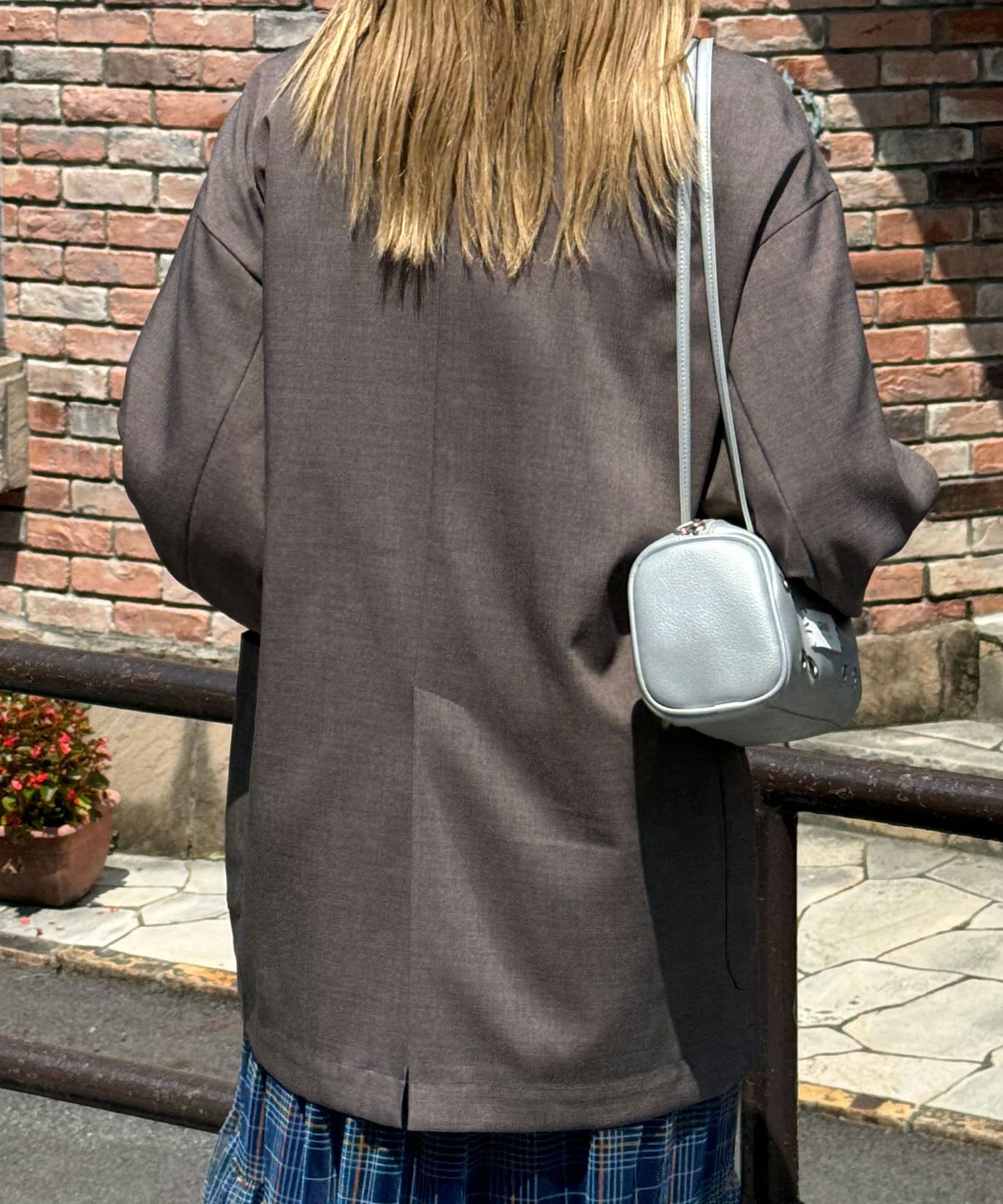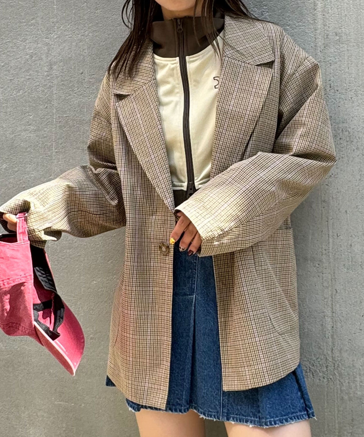 秋にピッタリのジャケットでとても気に入って着ています!紫のラインがチェックジャケットとしては珍しく、良いアクセントになって可愛いです!