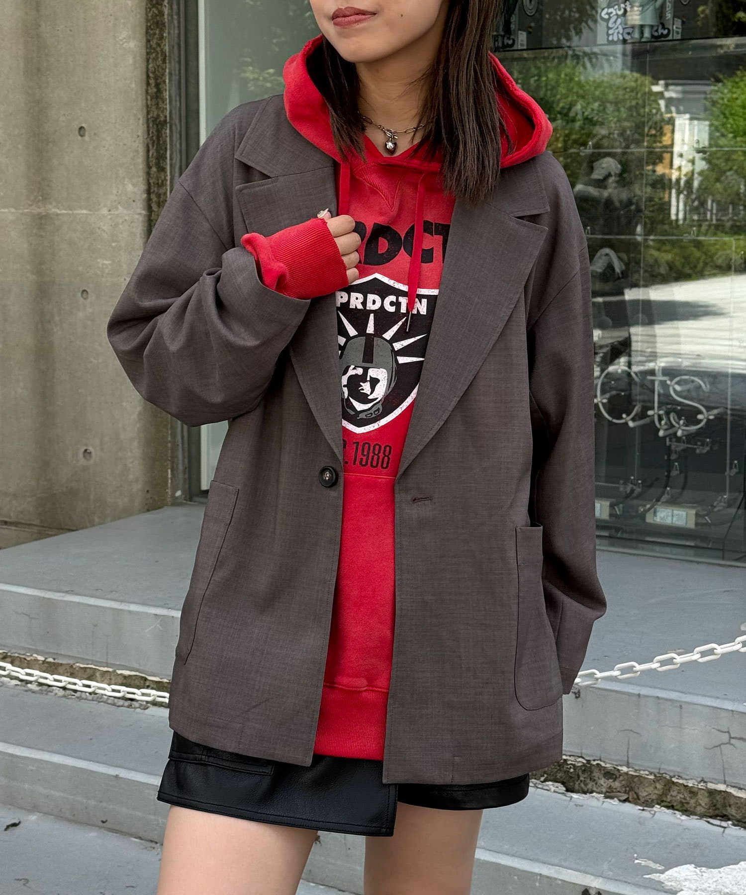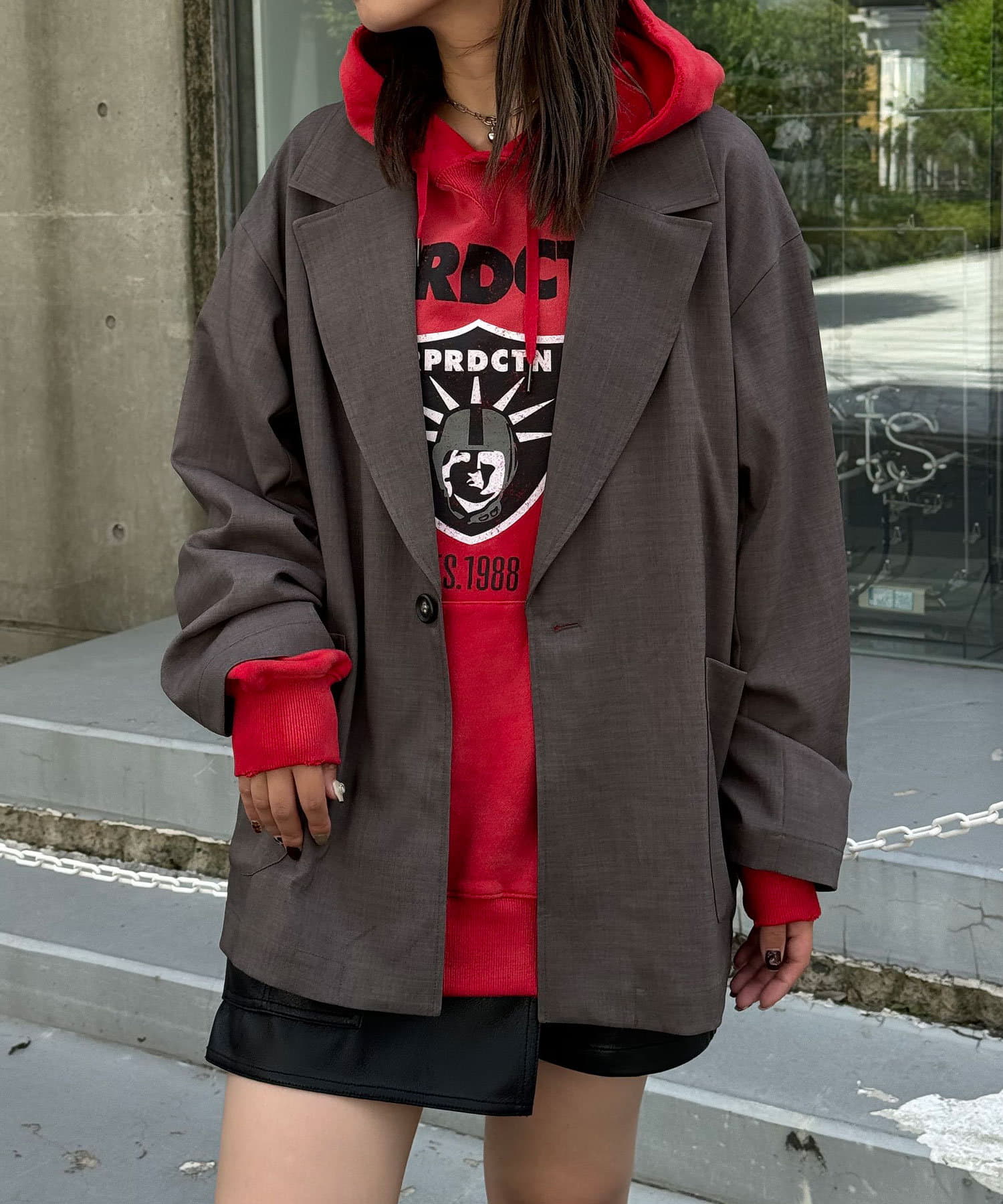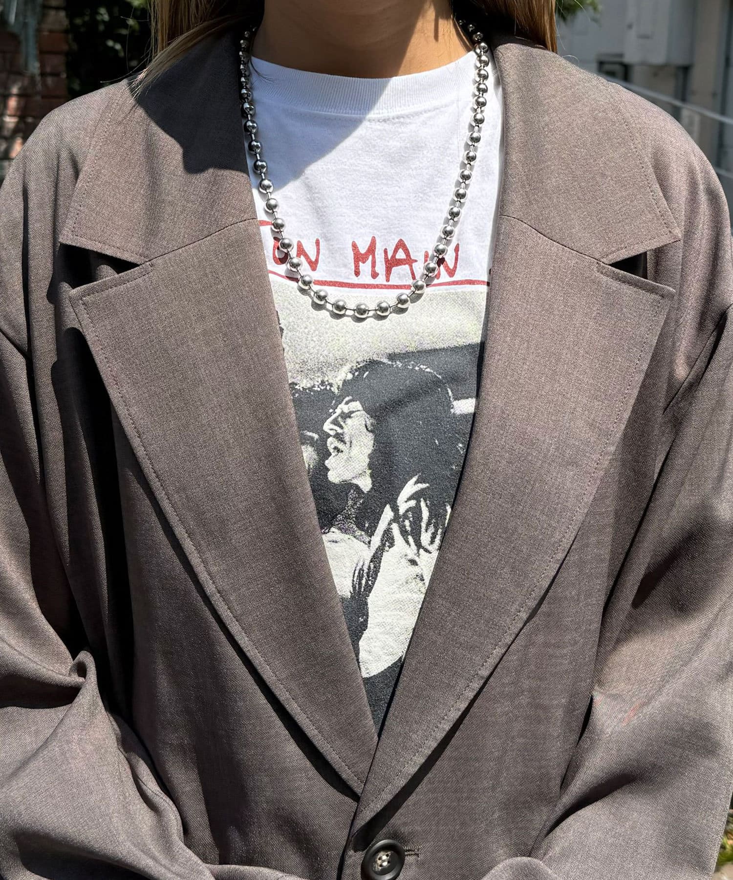 ゆったりとしたオーバーサイズでレイヤードしやすいのがポイント◎