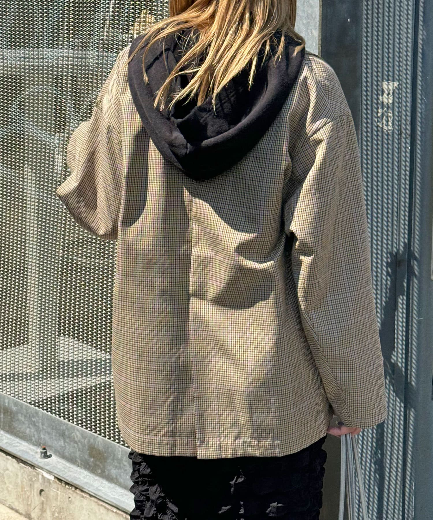 チェックに紫色のラインが入っていておしゃれです。生地は薄めなので、中に着込むかもう少し暖かくなってから着ようと思います。丈は長めでした。