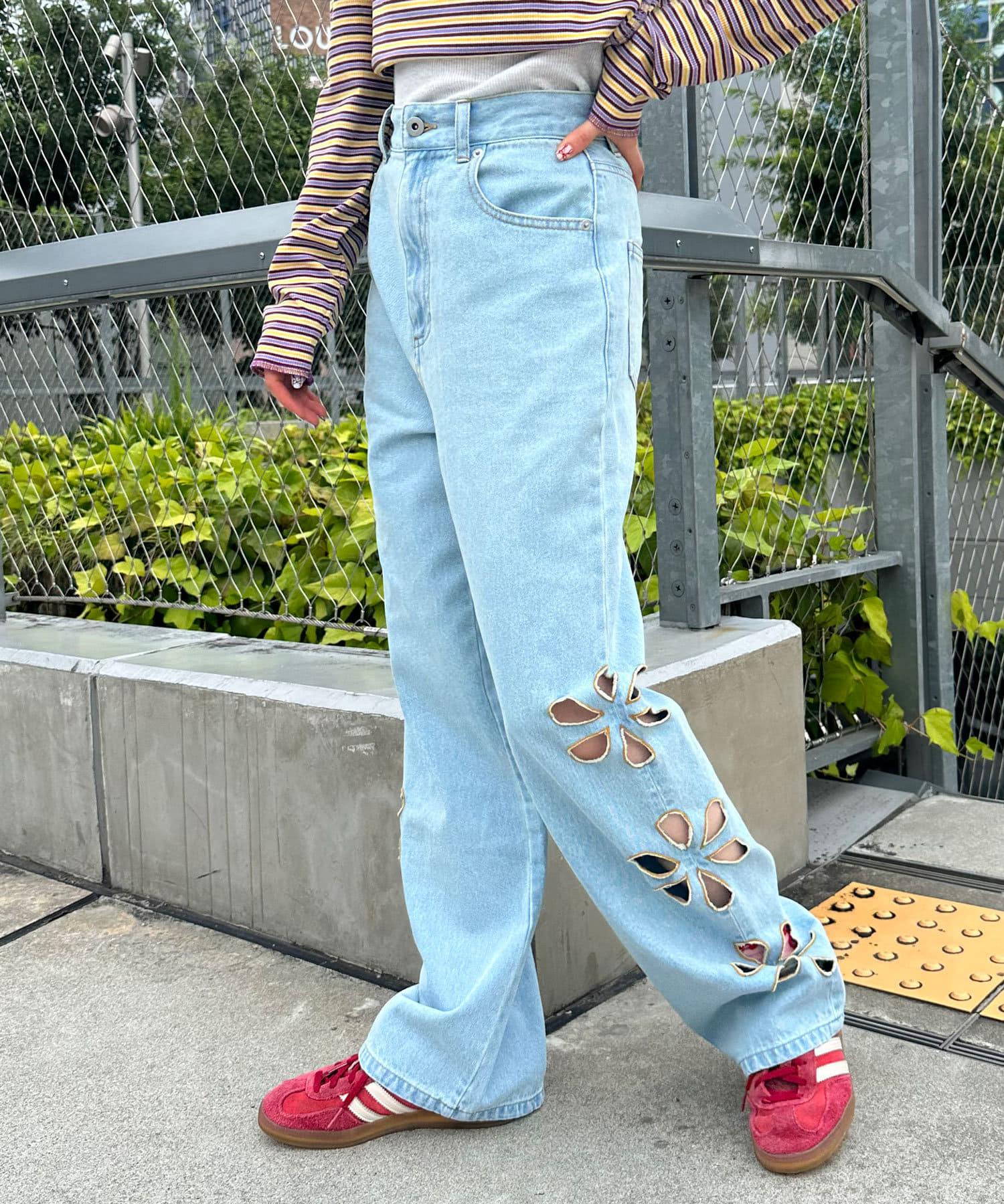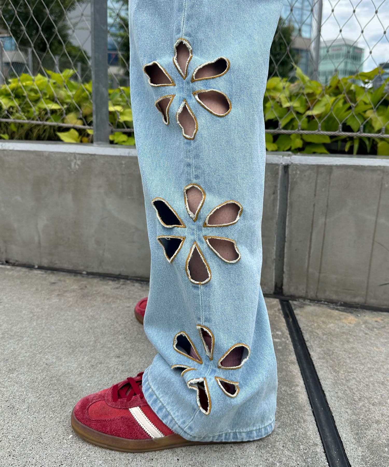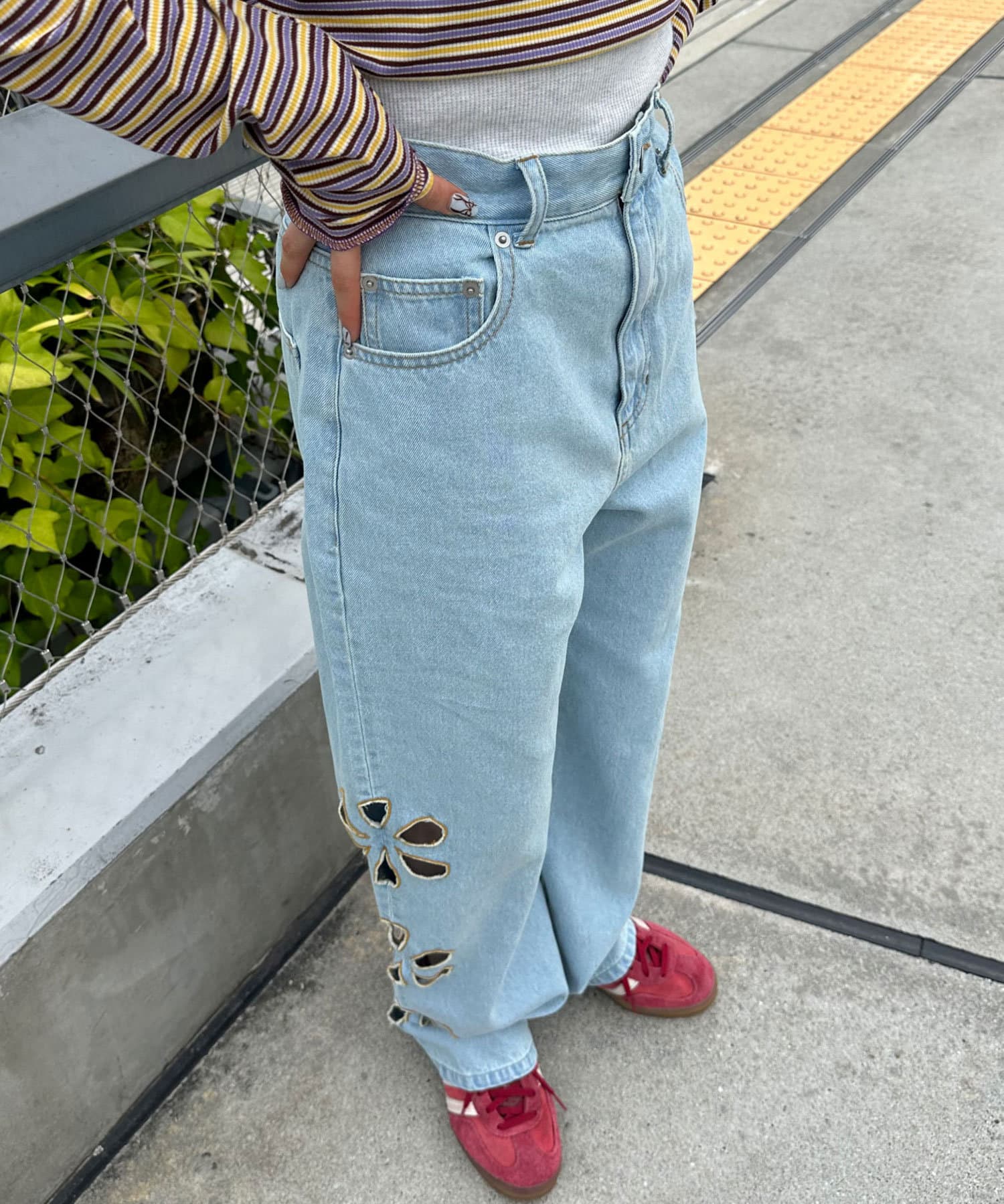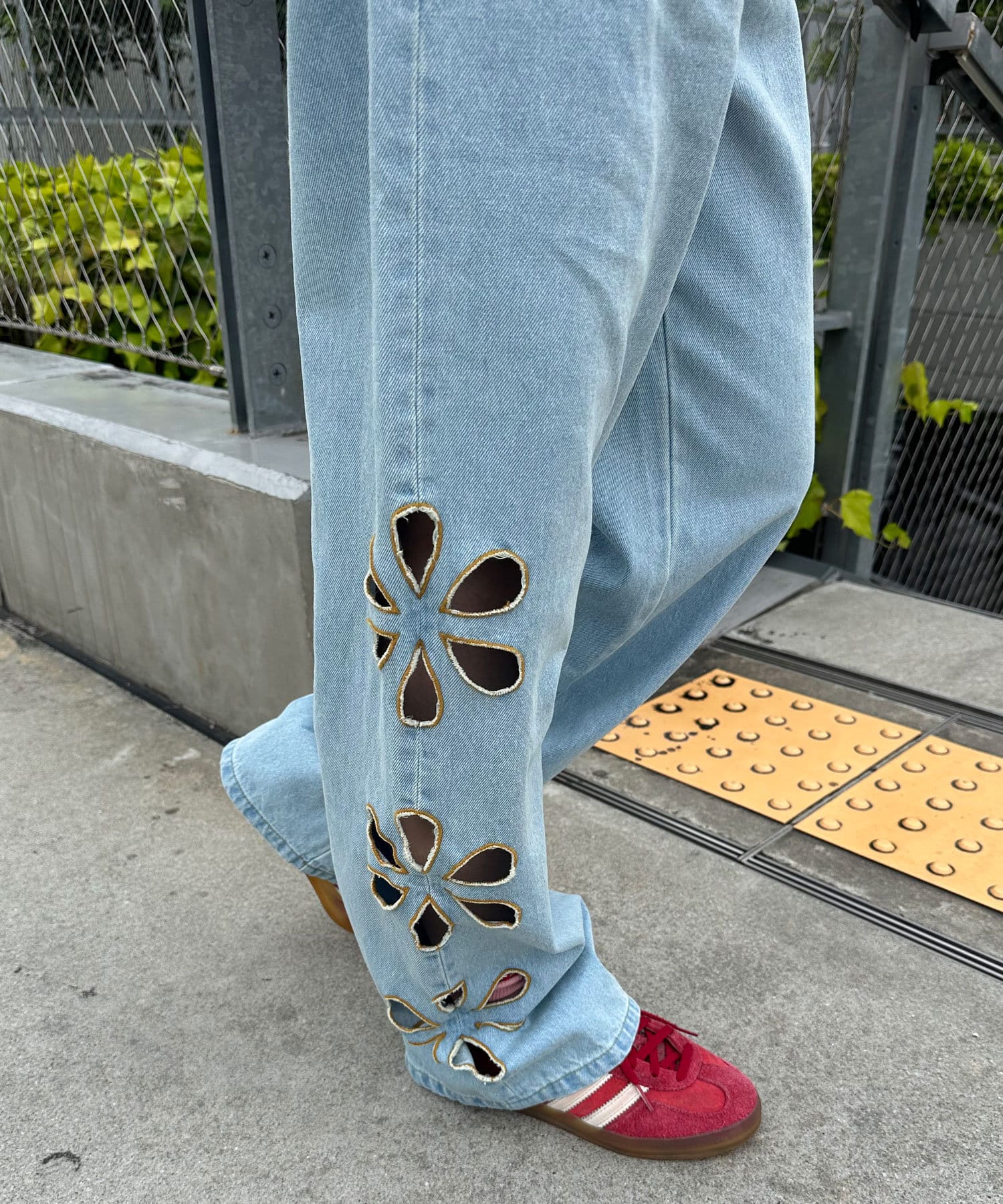 大胆にあしらわれたフラワーカットアウトが存在感抜群のデニム。