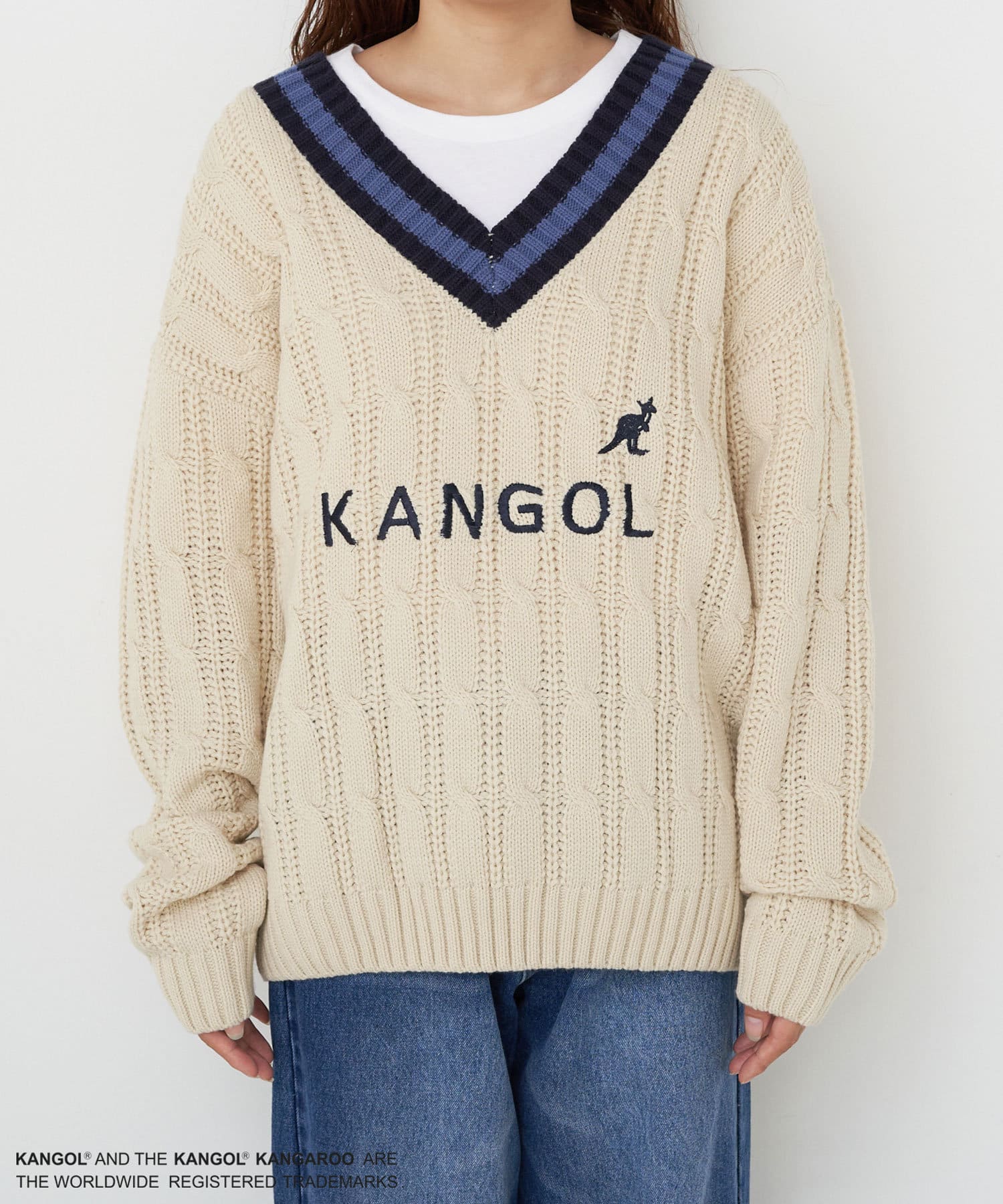 【Ciaopanic】【KANGOL/カンゴール】Vネックケーブル編みニット